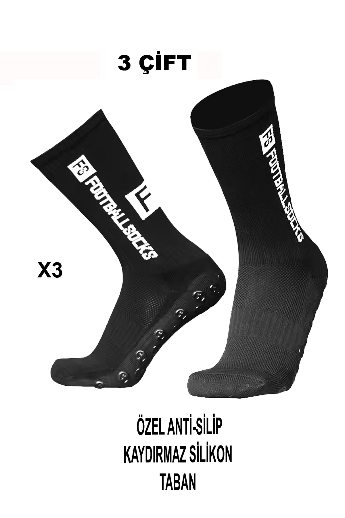 ✔ PRODUCT FEATURES 3 Pairs (Total 6 Socks) Size Range: 39 – 45 (Full fit thanks to flexible structure) Anti-slip special silicone sole –Anti-slip technology High quality breathable sports fabric Strengthened heel and toe area Increases performance by preventing foot slippage The model preferred by professional and amateur football players Suitable for carpet pitch, grass pitch, running and all sports activities ✔ WHY this FOOTBALL SOCKS? Anti-slip silicone sole that fixes the foot Sudden posture, turn and maximum grip in sprints Breathable knit structure that does not sweat completely prevents slipping in the shoe Reduces friction and prevents standing up water retention Durable and long-lasting ✔ USES with double-layer sports knit Soccer-Carpet Basketball Running & Fitness Crossfit Training and all sports activities ✔ PACKAGE CONTENT 3 pairs (6 pcs) of non-slip soccer socks Shipped in selected colors