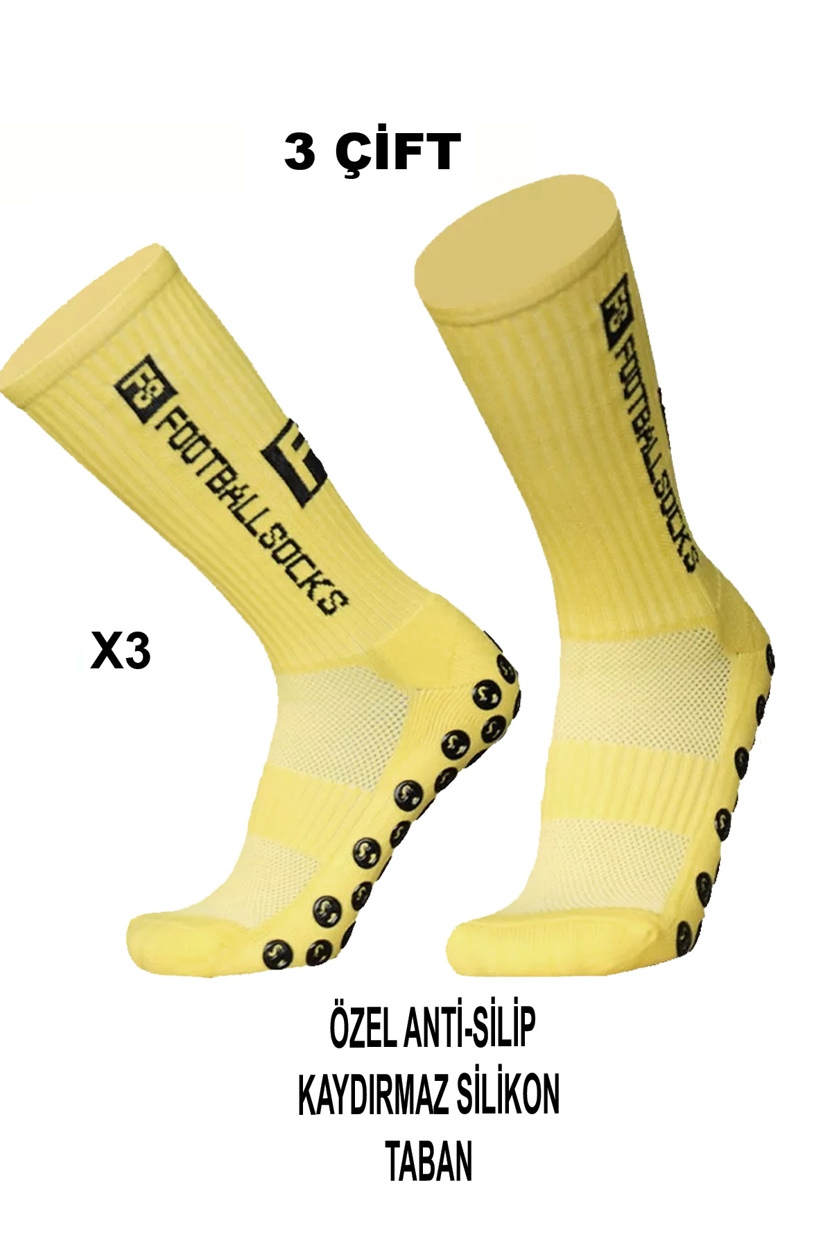 ✔ PRODUCT FEATURES 3 Pairs (Total 6 Socks) Size Range: 39 – 45 (Full fit thanks to flexible structure) Anti-slip special silicone sole –Anti-slip technology High quality breathable sports fabric Strengthened heel and toe area Increases performance by preventing foot slippage The model preferred by professional and amateur football players Suitable for carpet pitch, grass pitch, running and all sports activities ✔ WHY this FOOTBALL SOCKS? Anti-slip silicone sole that fixes the foot Sudden posture, turn and maximum grip in sprints Breathable knit structure that does not sweat completely prevents slipping in the shoe Reduces friction and prevents standing up water retention Durable and long-lasting ✔ USES with double-layer sports knit Soccer-Carpet Basketball Running & Fitness Crossfit Training and all sports activities ✔ PACKAGE CONTENT 3 pairs (6 pcs) of non-slip soccer socks Shipped in selected colors