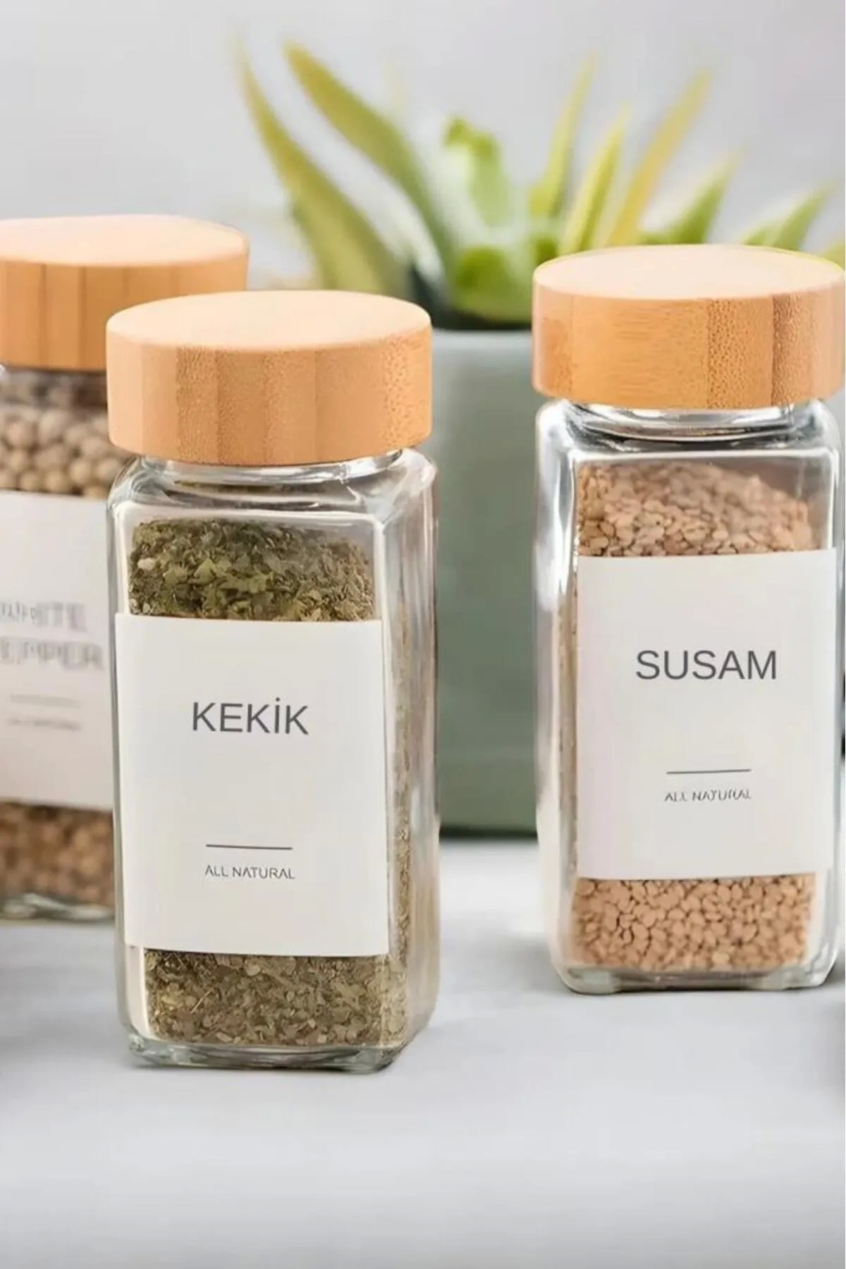 You can easily identify the names of your spices with the labels on each lid.