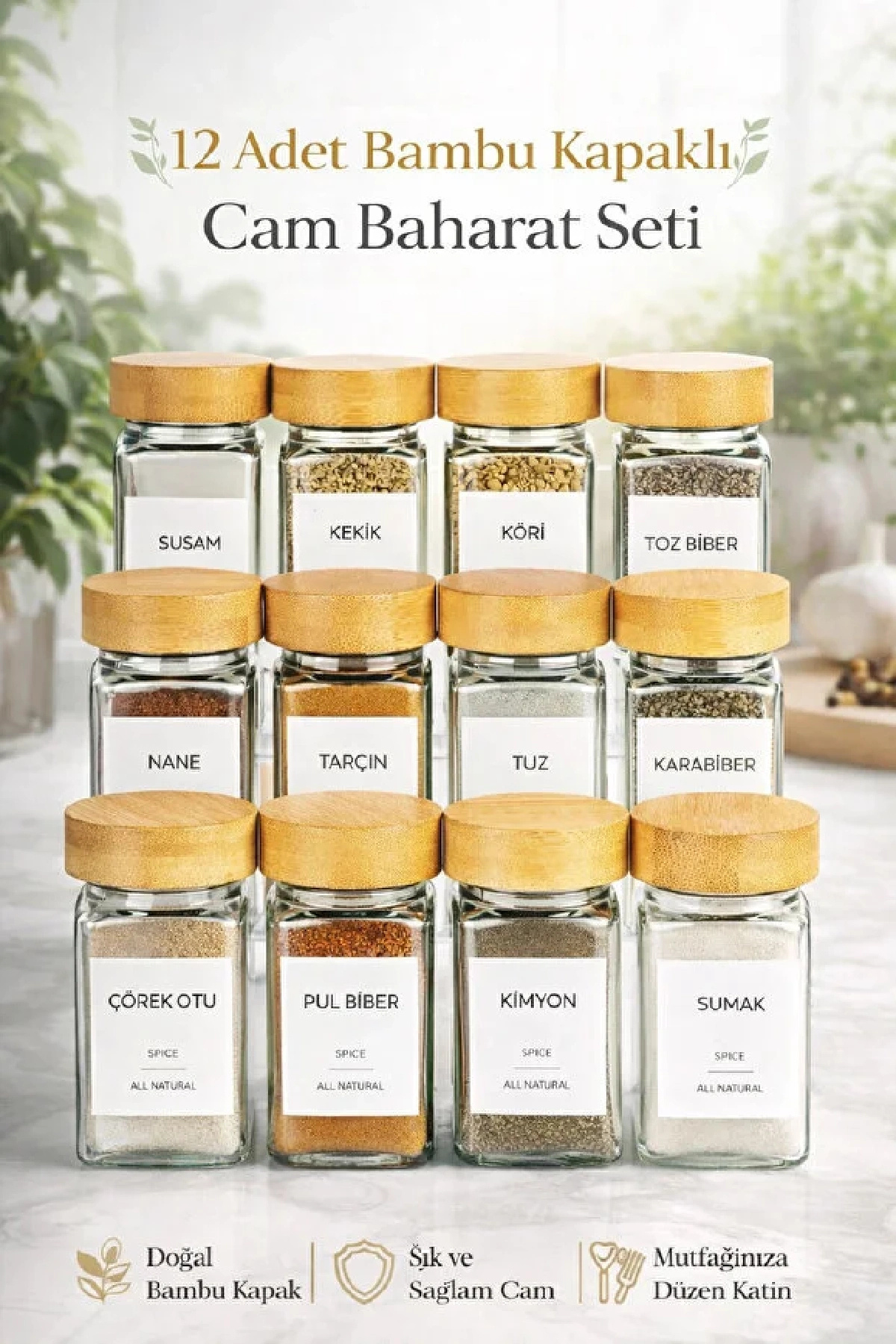 Berdina Home 12-Piece Glass Spice Rack Set with Bamboo Lid Label Gift - This 12-piece set collects everything you need in the kitchen in one place.