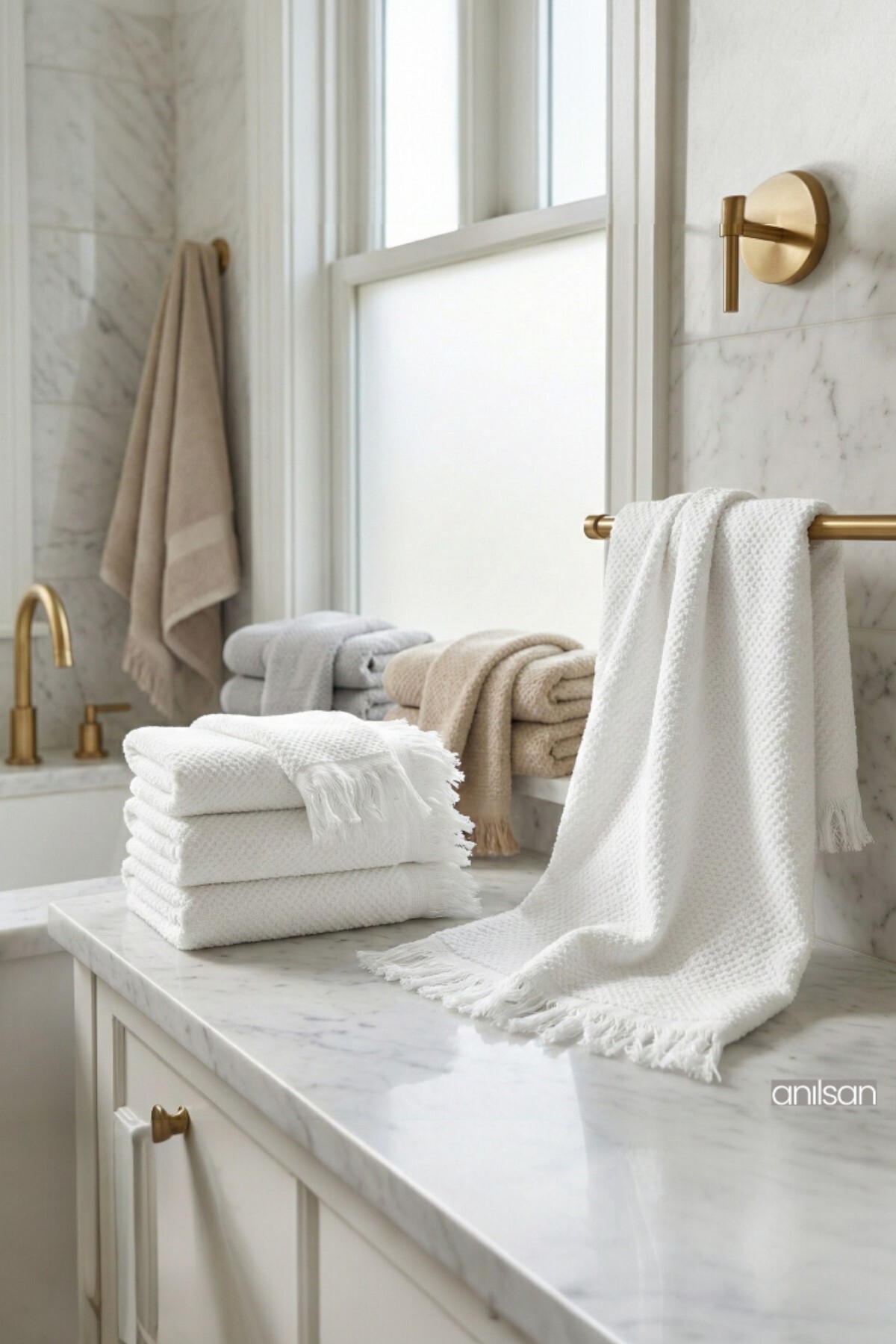 Anılsan 6-Piece White Jelena Hand Towel - 50x90 Cm, 225 Gr, 100% Cotton, Spa And Hotel Towel | ByTR