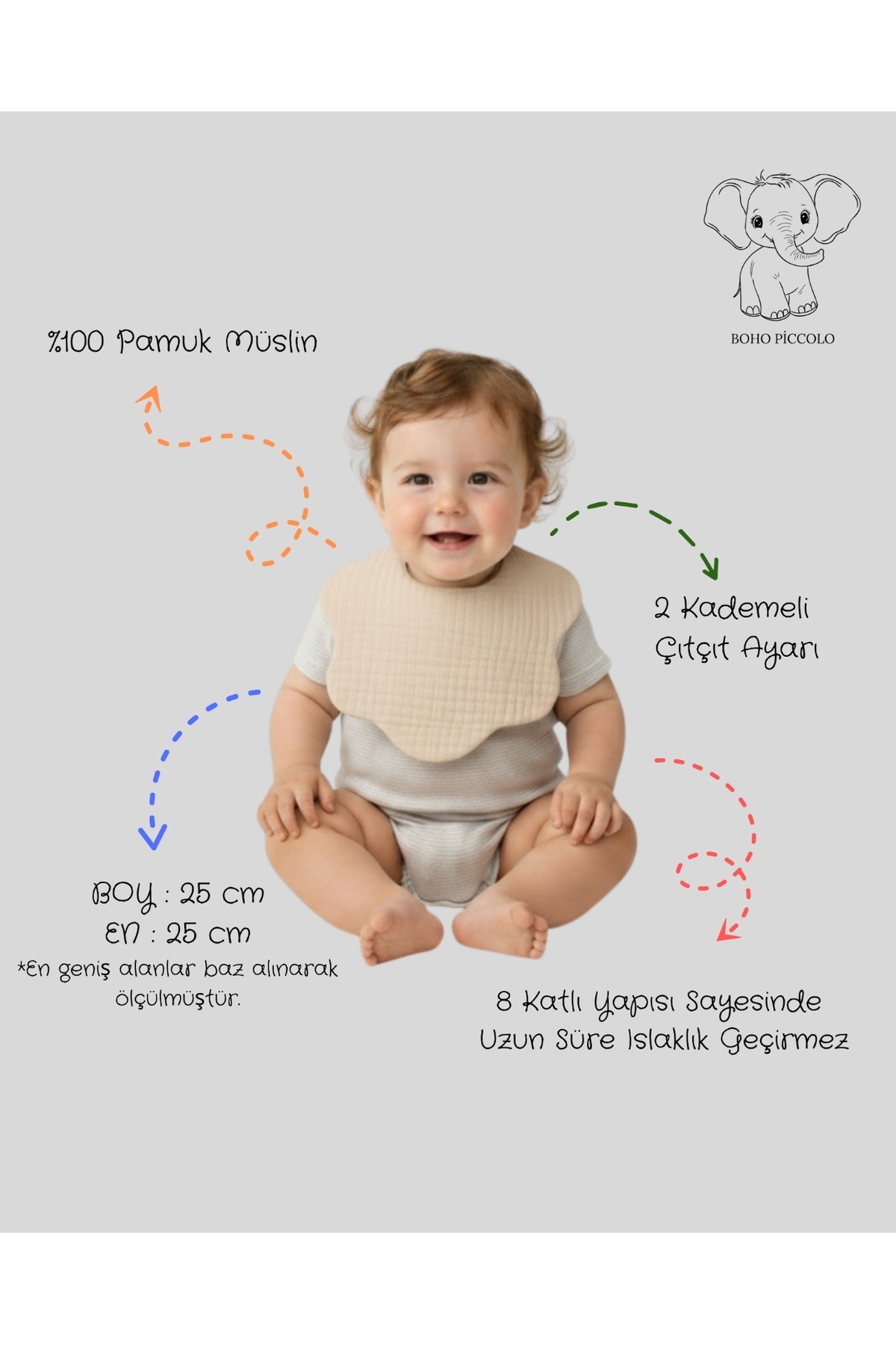 With 8-ply muslin aprons specially designed for babies, their saliva is easily controlled.