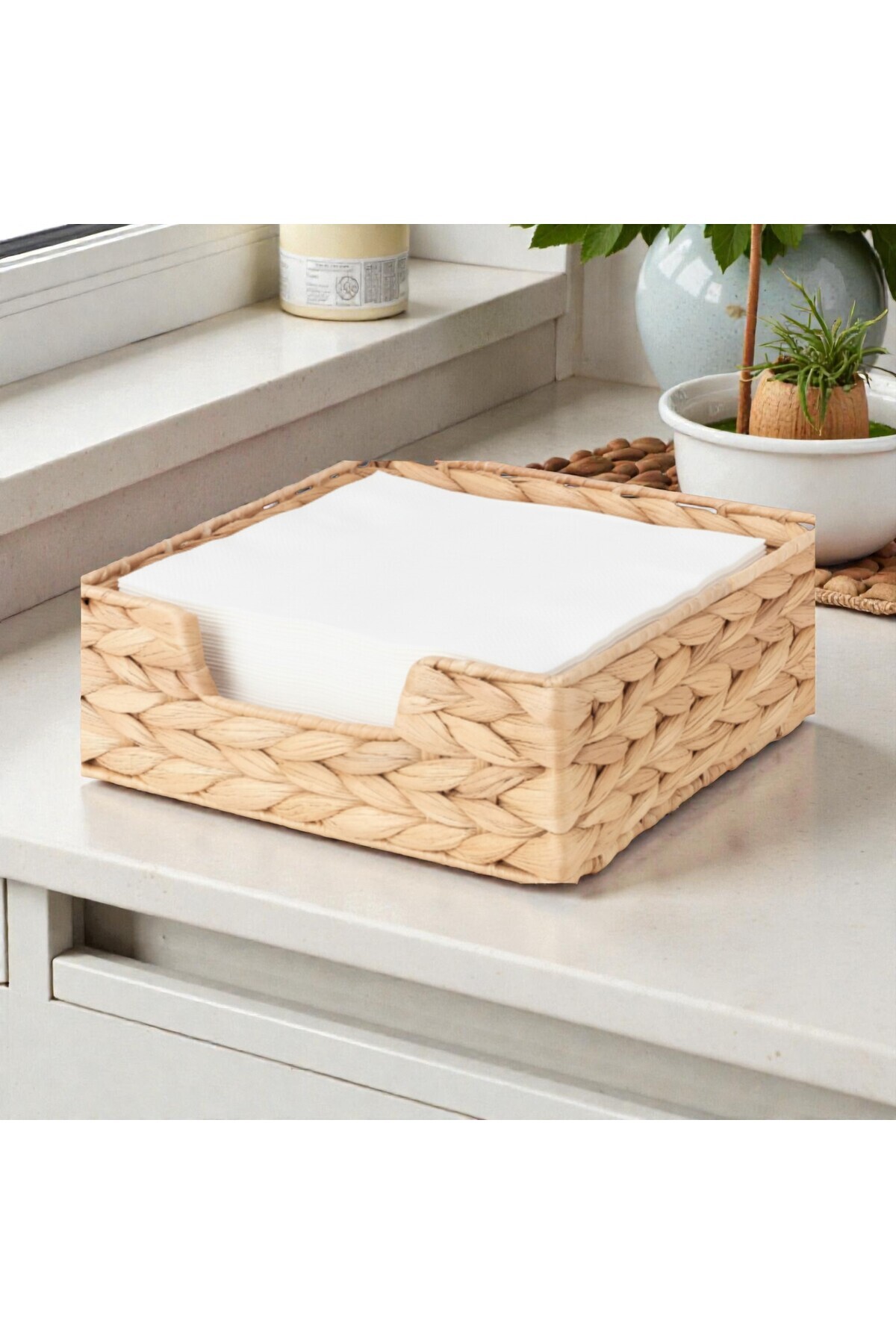 Natural and Handmade: This napkin box is made of water hyacinth and each one is handmade.