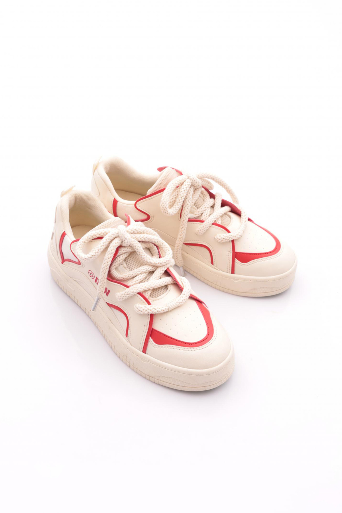 DGN Women's Thick Casual Sole Lace-Up Casual Sneakers Sneaker Red | ByTR