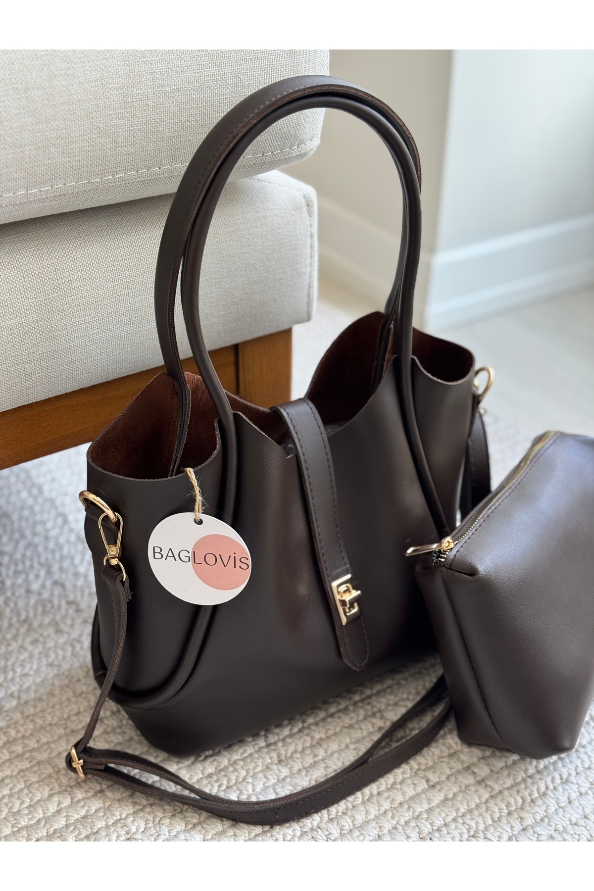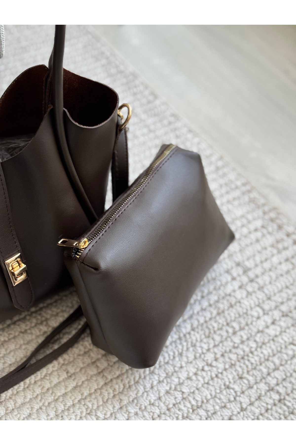 BAGLOVİS PUPPY BAG EXTRUDED FRONT LOCK DETAIL COFFEE WOMEN 'S SHOULDER BAG | ByTR