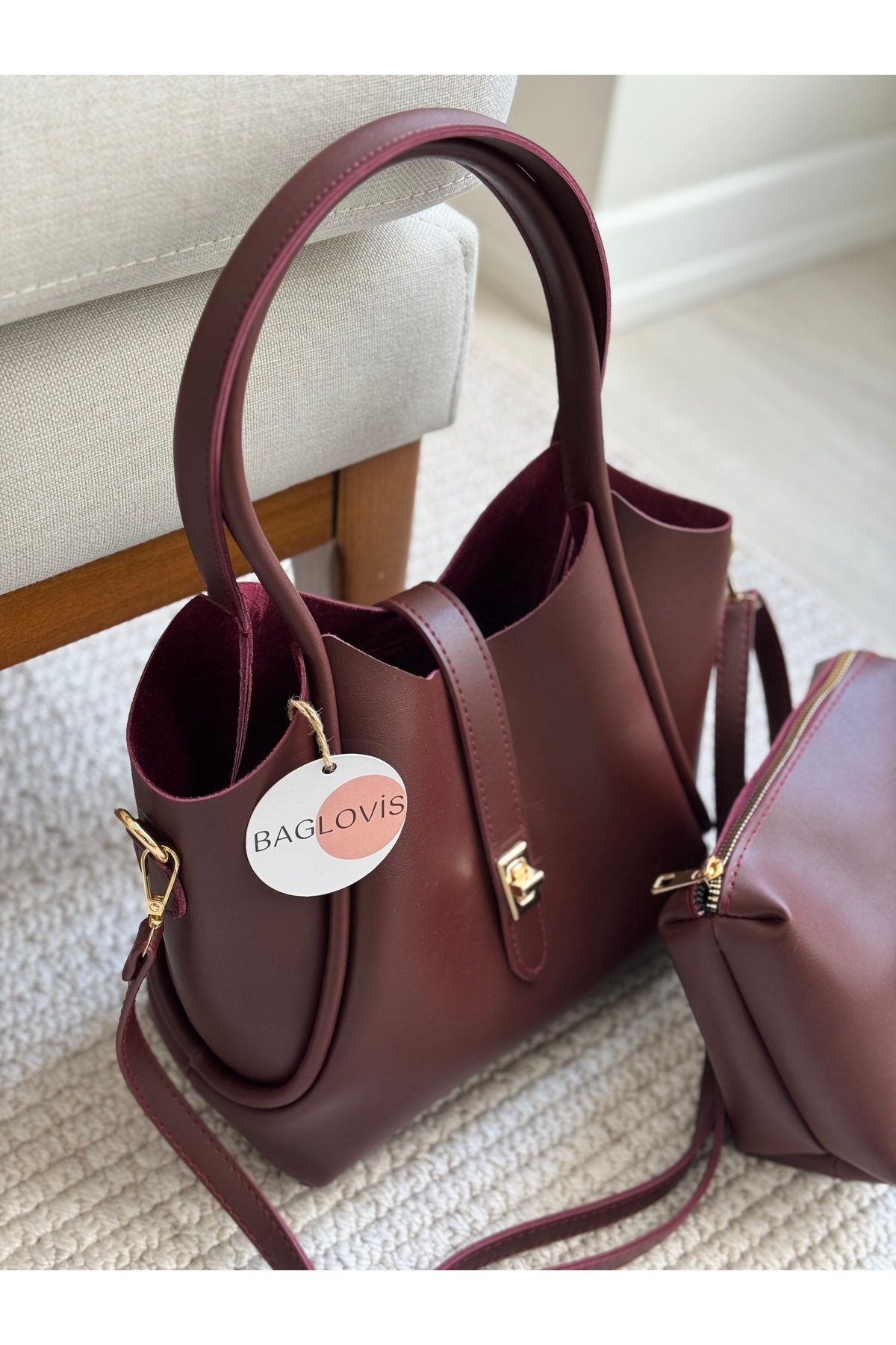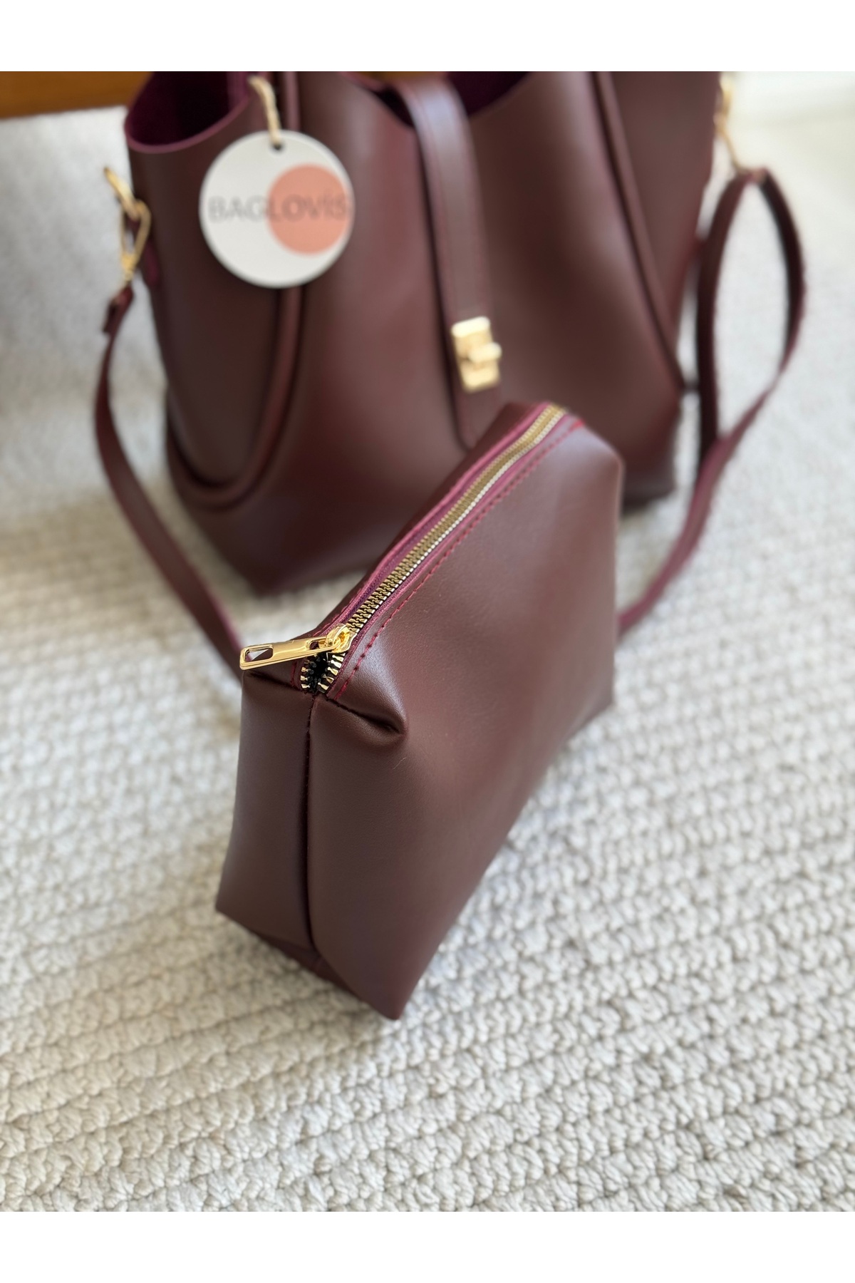 BAGLOVİS PUPPY BAG EXTRUDED FRONT LOCK DETAIL BURGUNDY WOMEN 'S SHOULDER BAG | ByTR