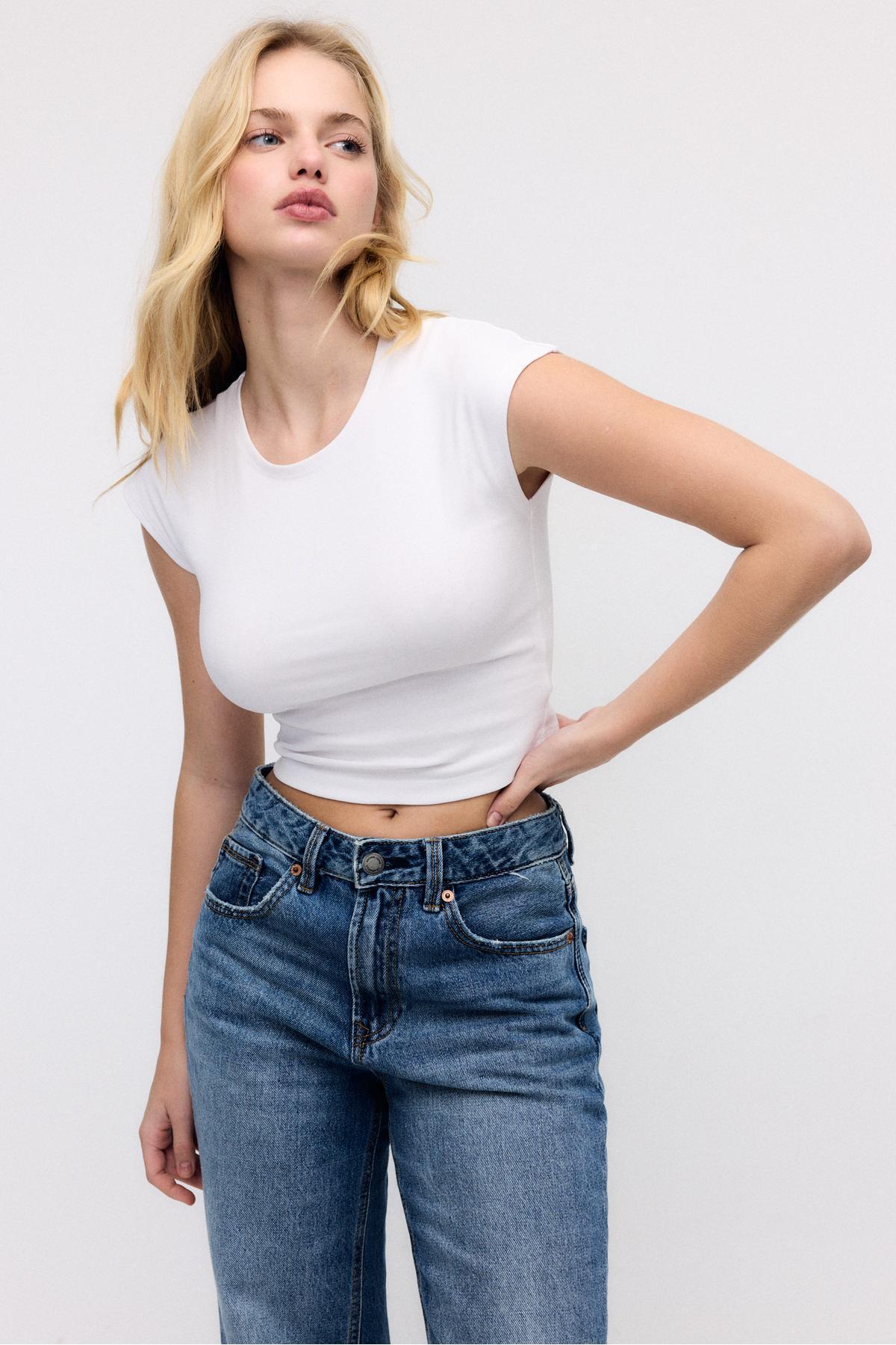 Stradivarius Basic narrow cut crop t-shirt | ByTR