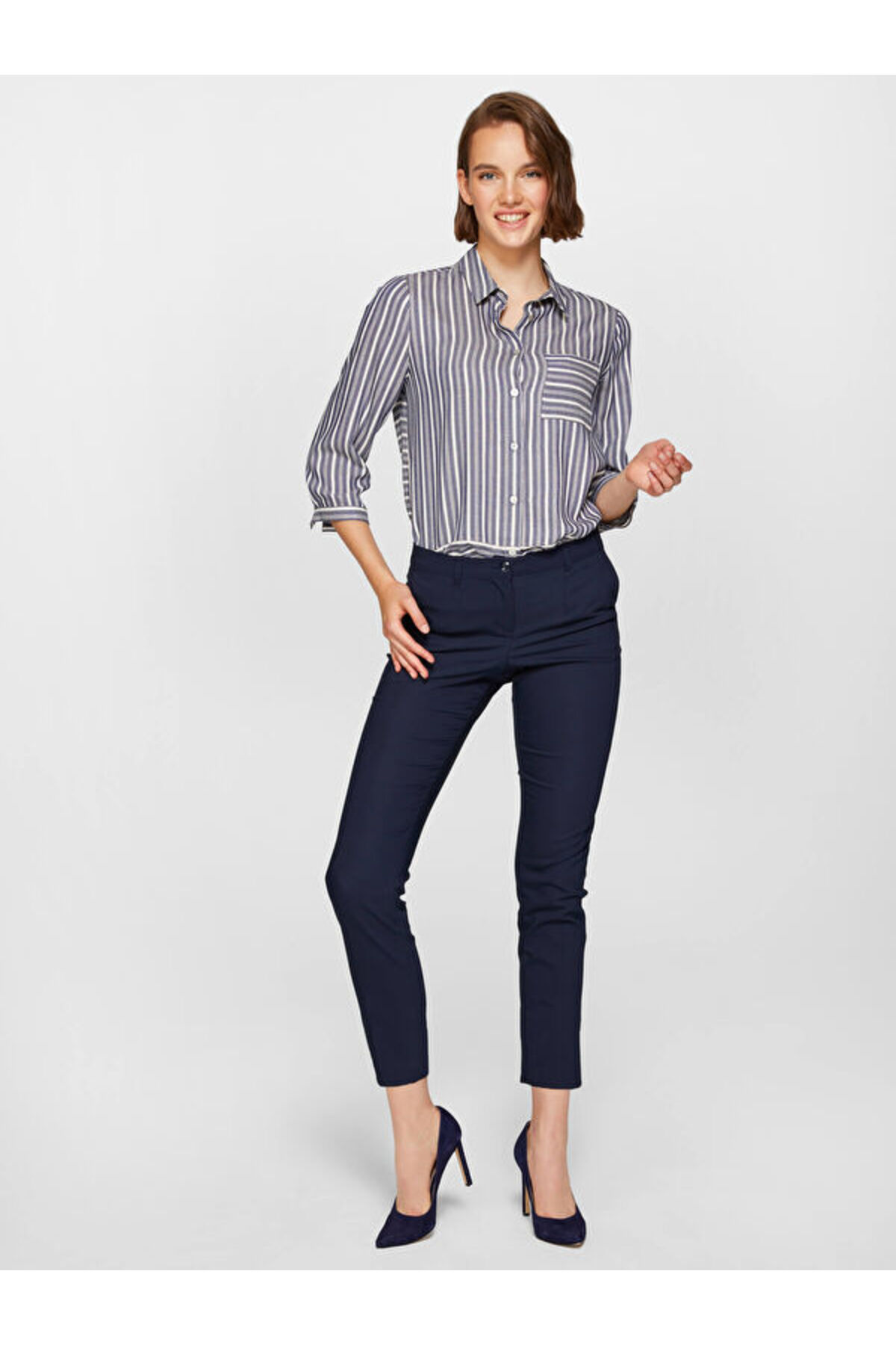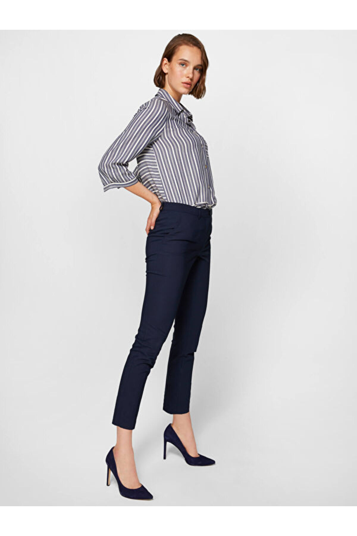 Faik Sönmez Women's Navy Blue Slim Fit Chino Pants 00075 | ByTR