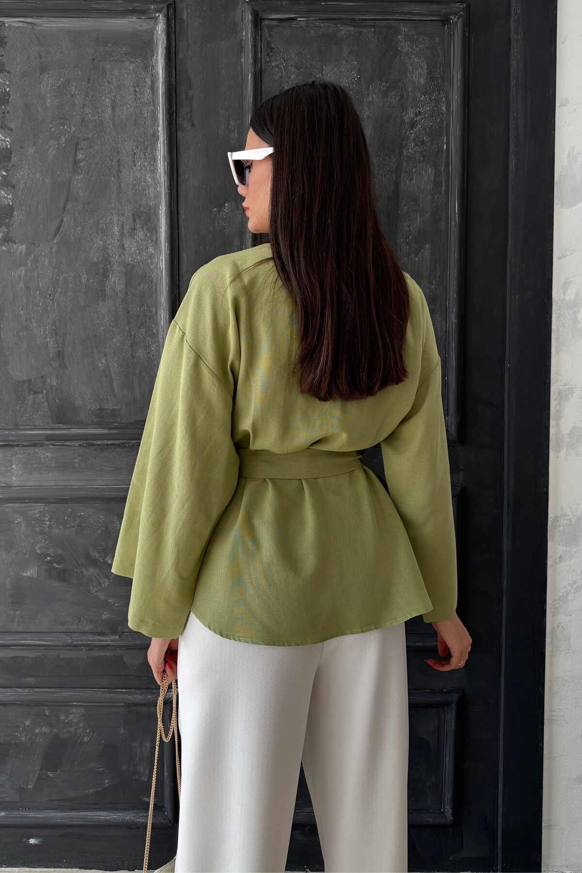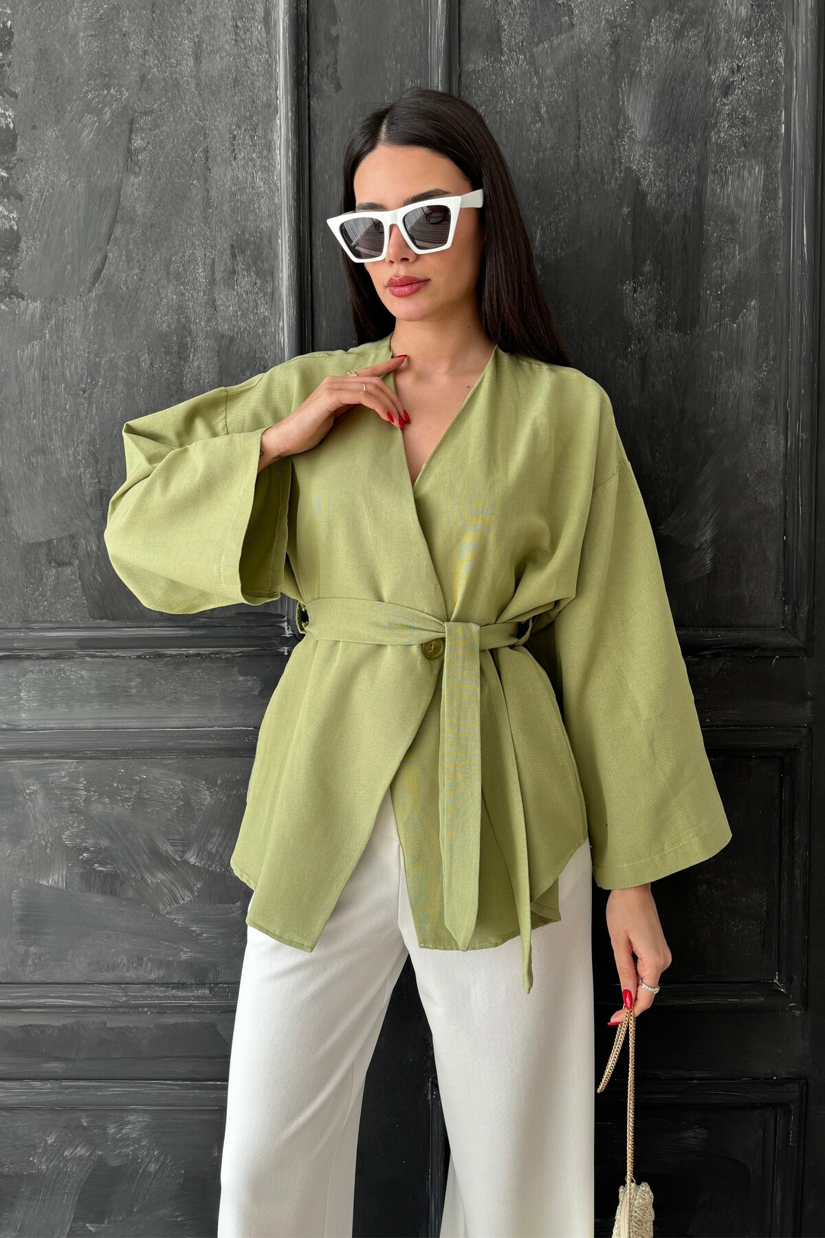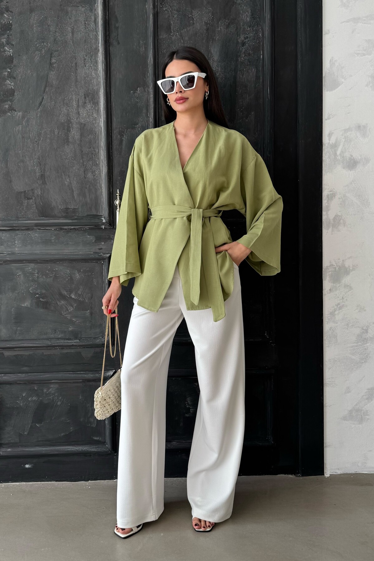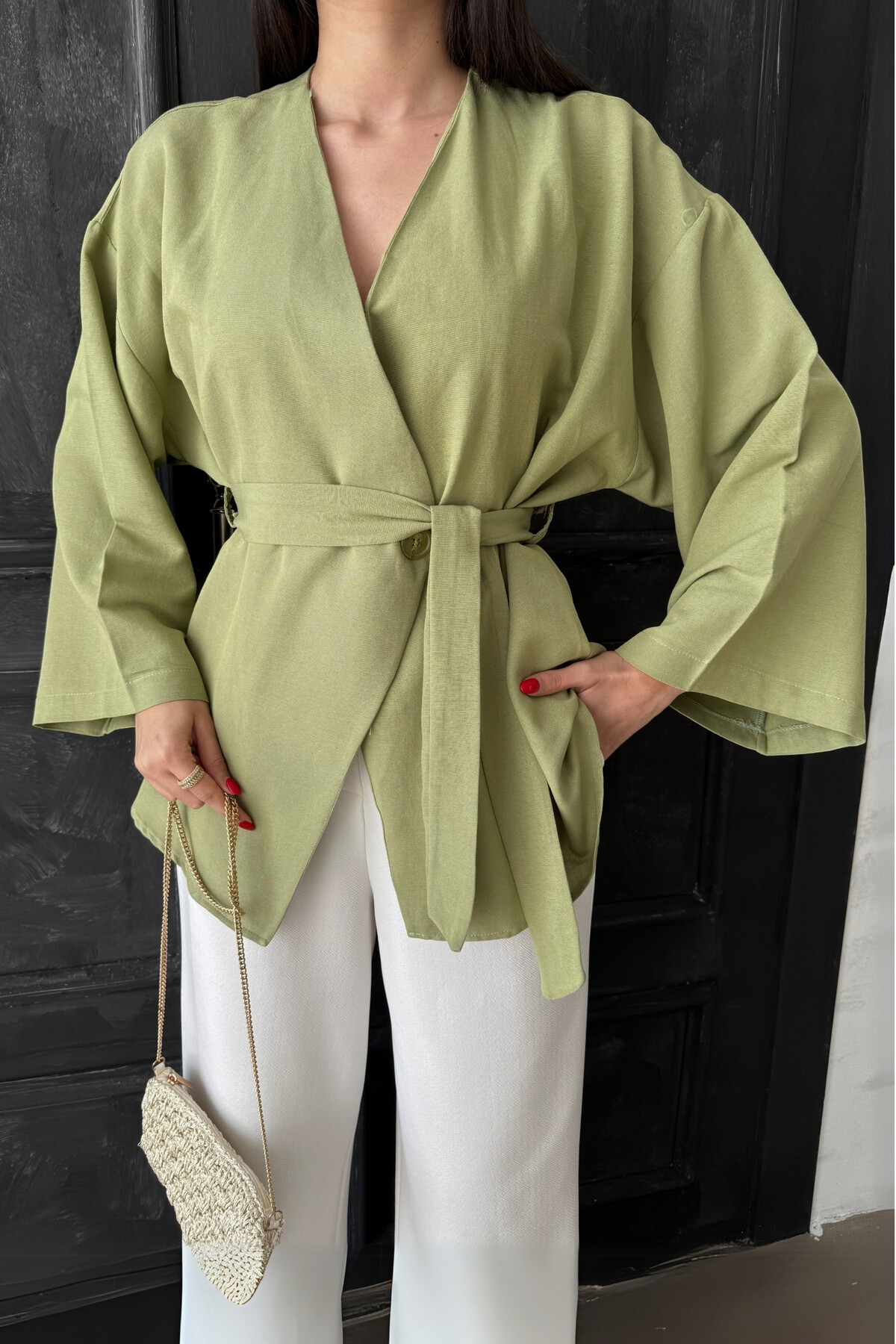 oshebu Green – Women's Belted Kimono | ByTR