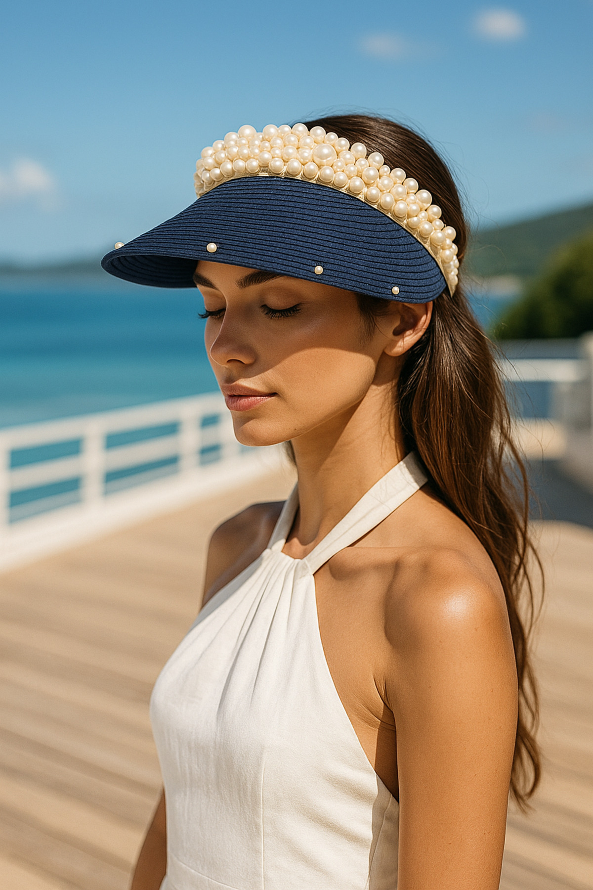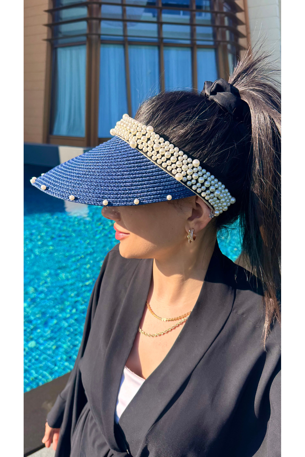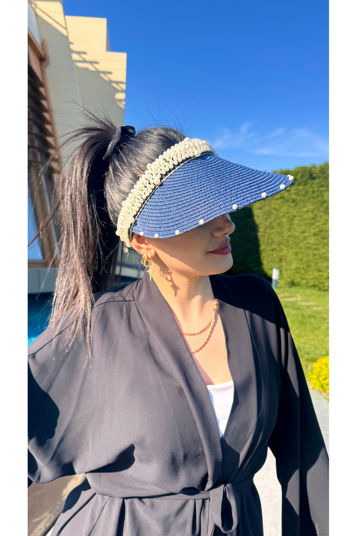 - Product Benefits: - Protection of the face from the harmful rays of the sun - Elegant and stylish design - Keeping cool in summer - A modern look with pearl details - Light and comfortable use Product Features: - General Structure: Large, oval - Detail: Decorated with white pearls - Place of use: Open behind the ear and on the forehead Materials: - Wicker structure - Thin white pearl ornaments