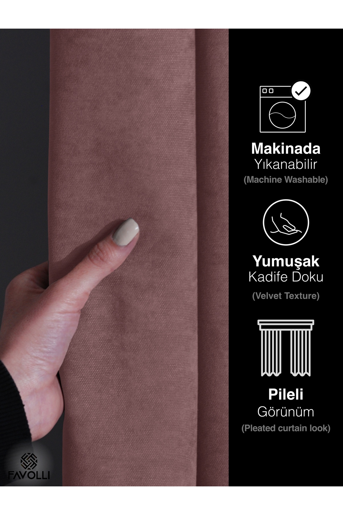 FAVOLLİ Velvet Textured Light Pink Pleated Island Background Curtain | ByTR