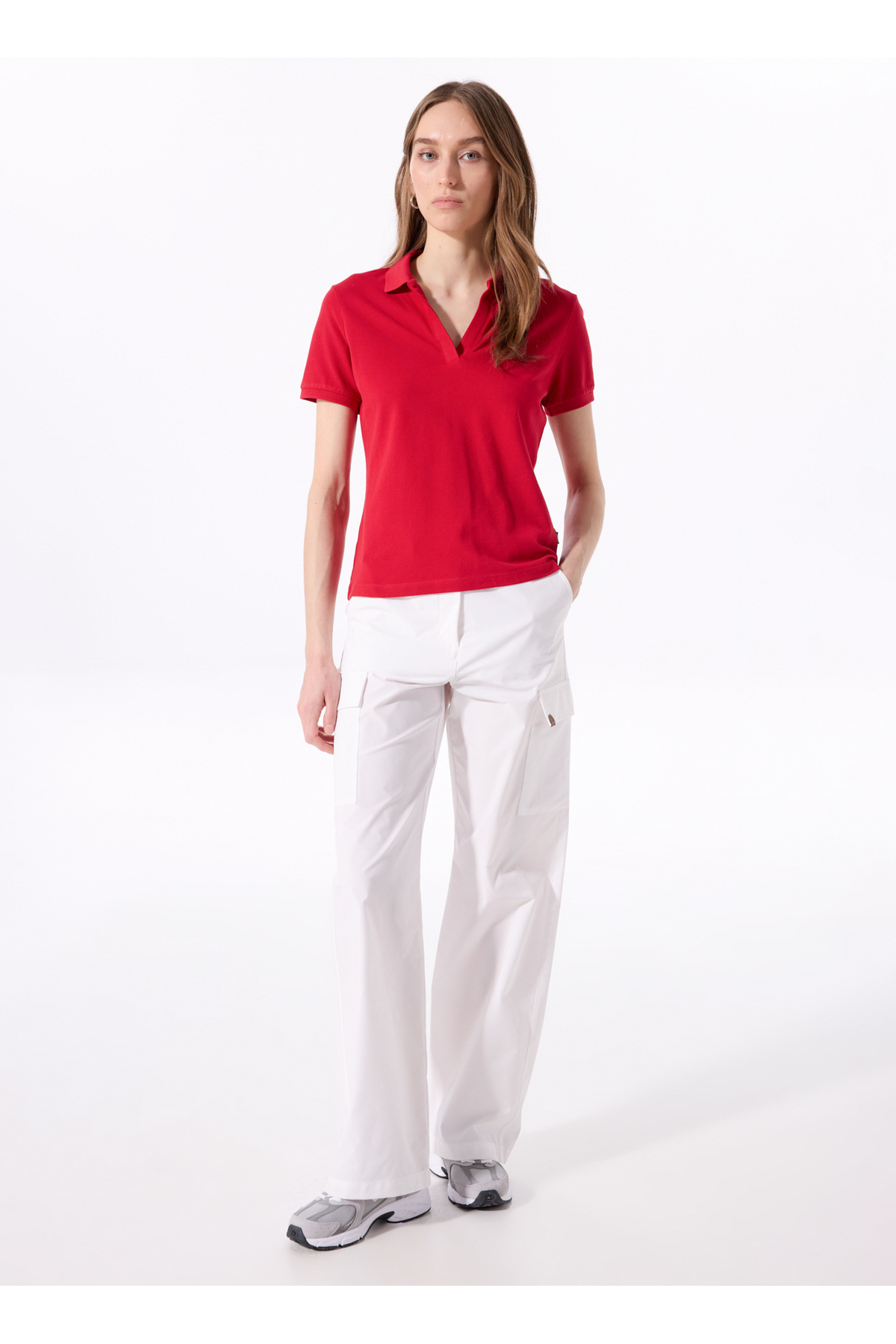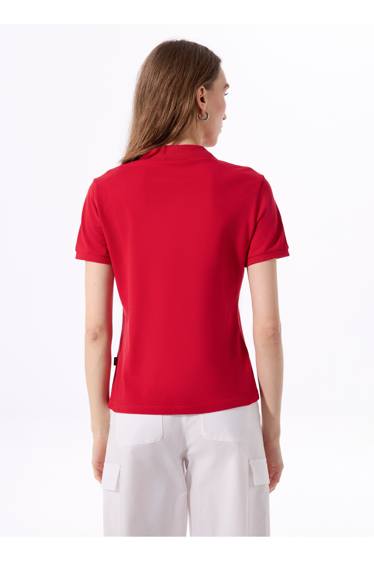 Red Women's Relaxed Plain Polo T-Shirt J5SL-TST7070 Pattern: Plain Model: J5SL-TST7070 Age Group: Female Gender: Female Pattern Information: Relaxed