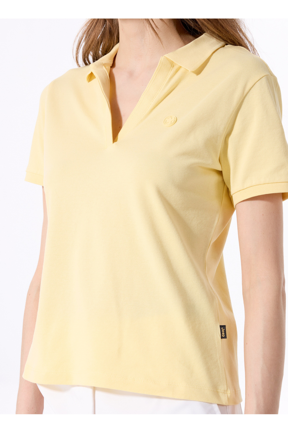 Yellow Women's Relaxed Plain Polo T-Shirt J5SL-TST7070 Pattern: Plain Model: J5SL-TST7070 Age Group: Female Gender: Female Pattern Information: Relaxed