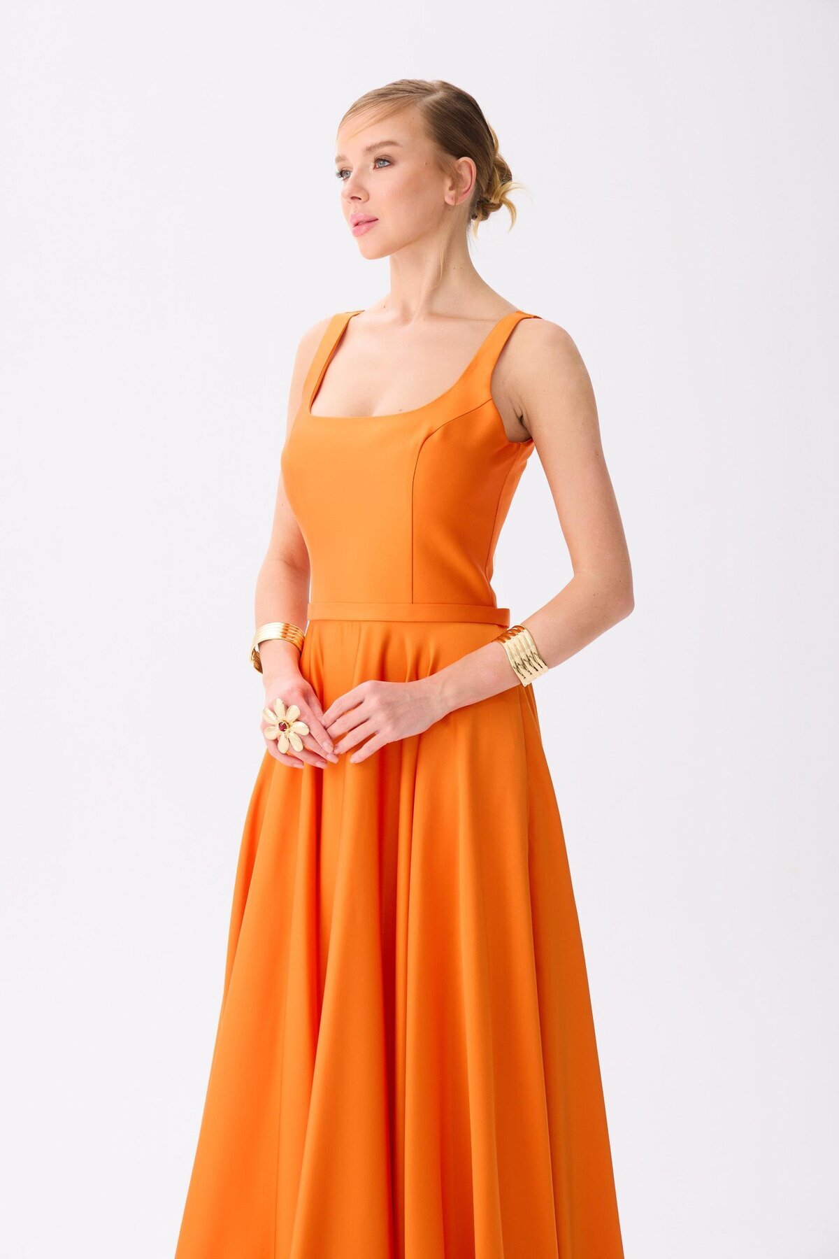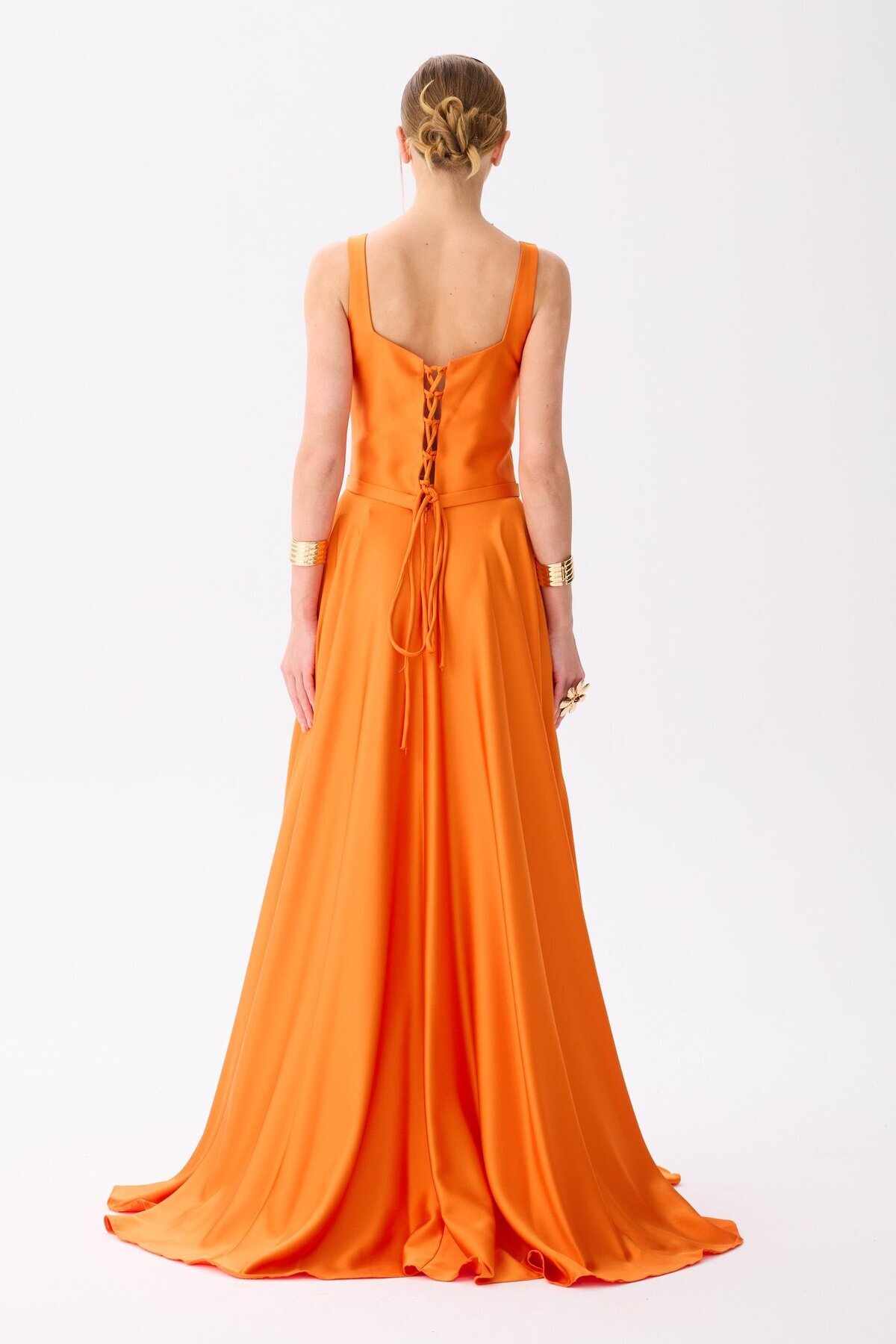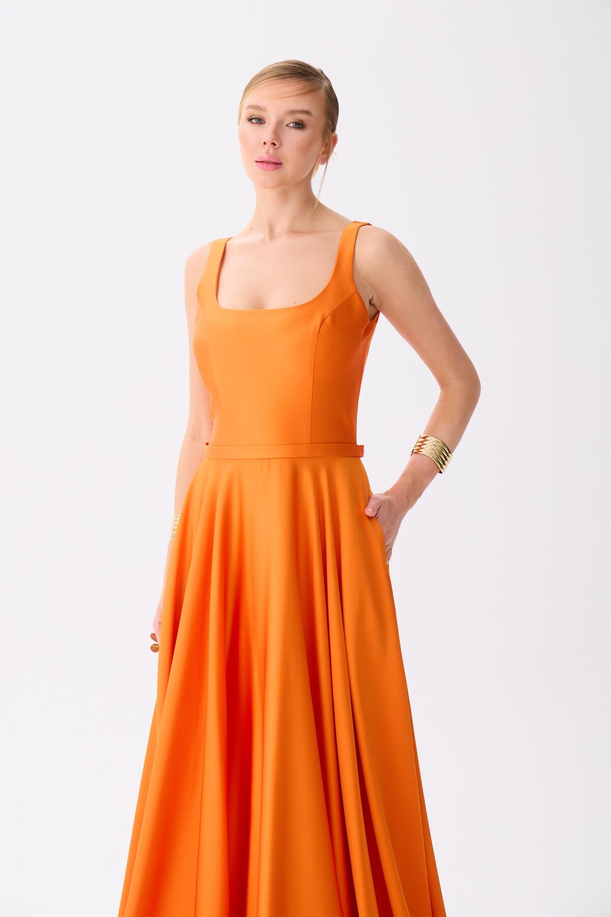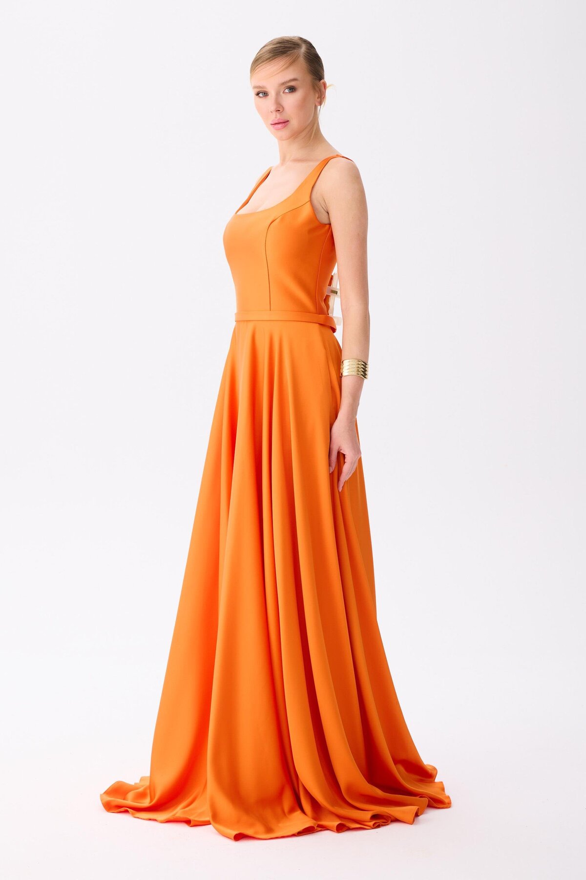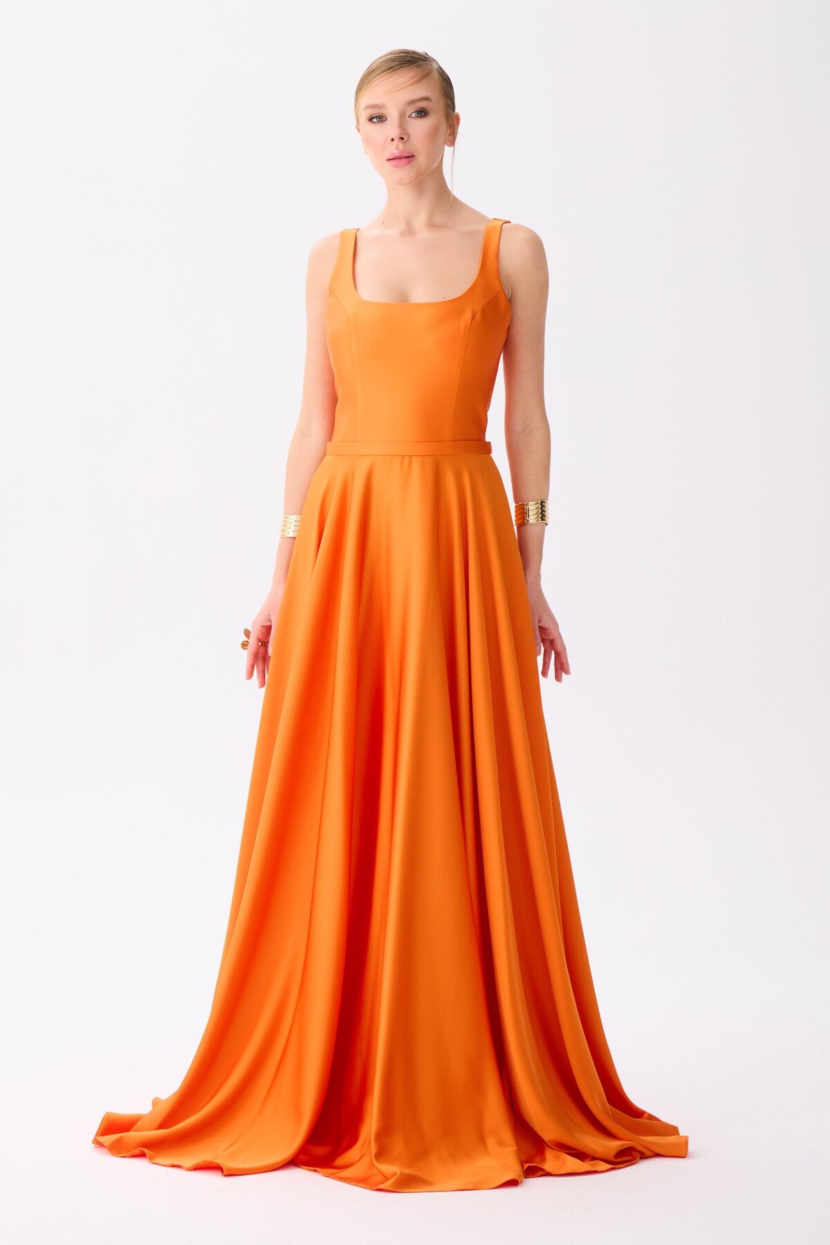 Carmen Orange Square Neck Satin Evening Dress | ByTR