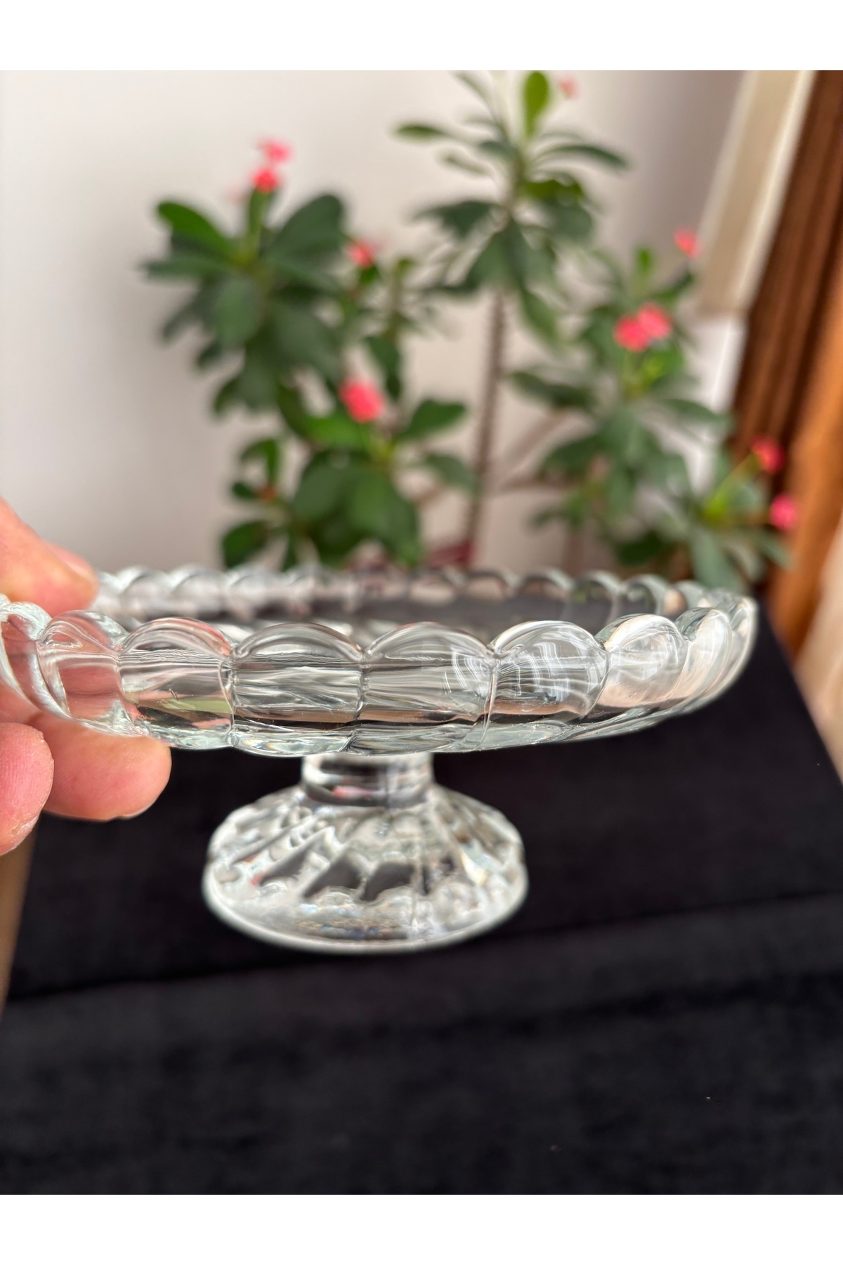 DİBA AVM Standing Glass Serving Dish and Sugar Bowl 14.5 x6Cm Palm Standing Glass Turkish Delight Dish Serving Dish 1 pc | ByTR