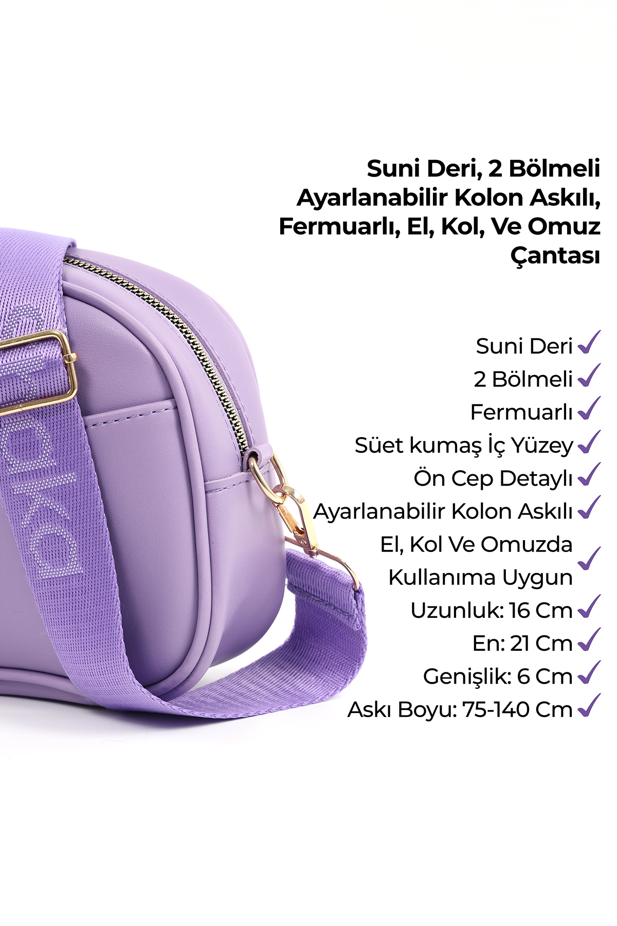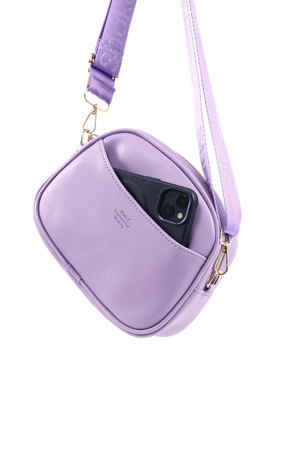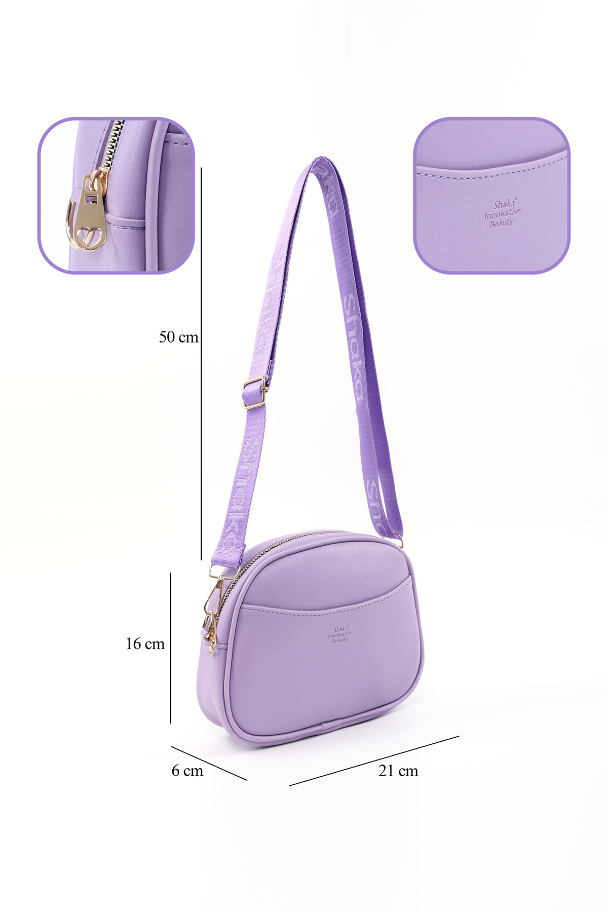 SHAKA Lilac SHK194 Faux Leather Zipper Shoulder Bag with Adjustable Column Strap with 2 Compartments | ByTR