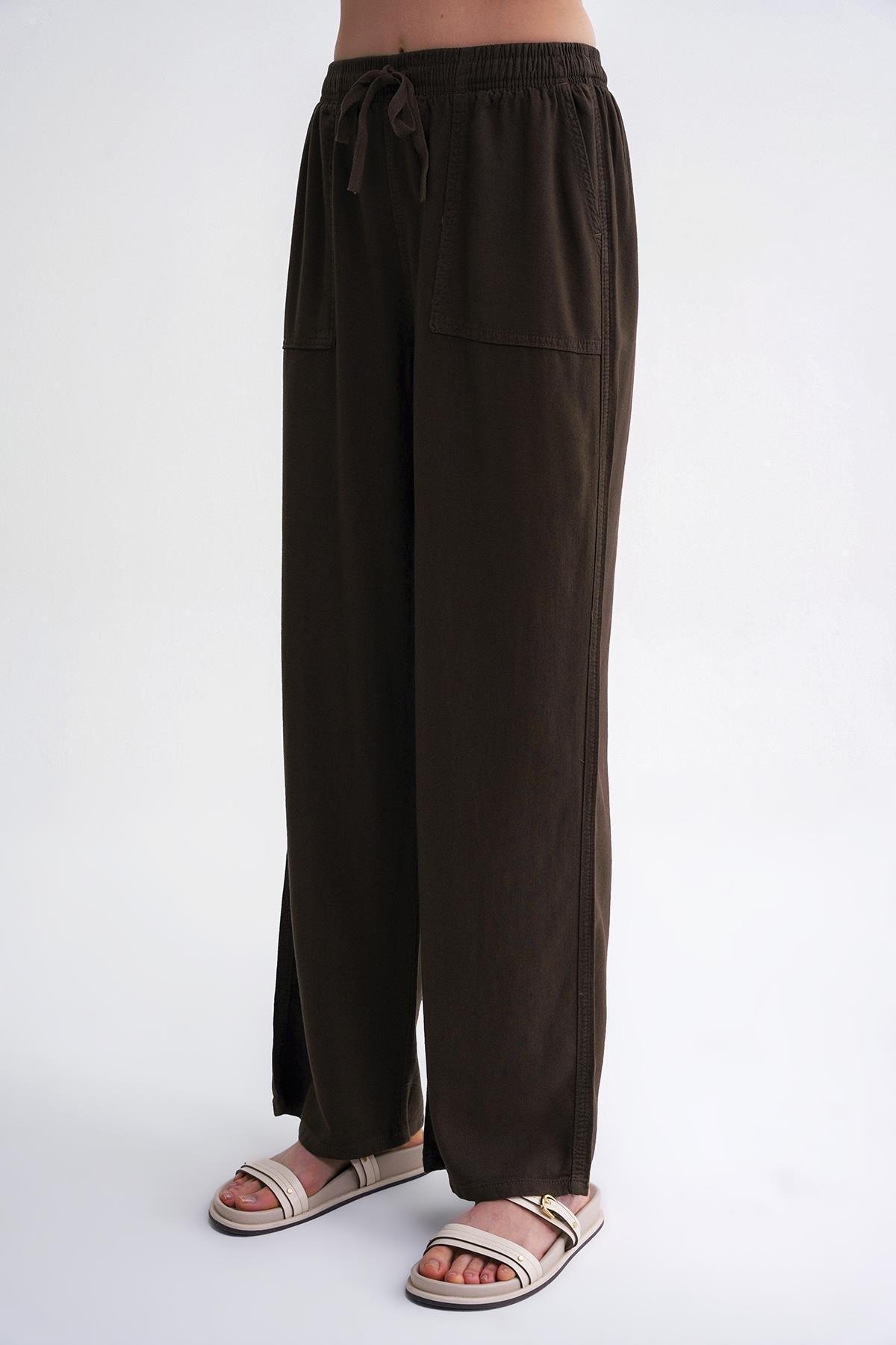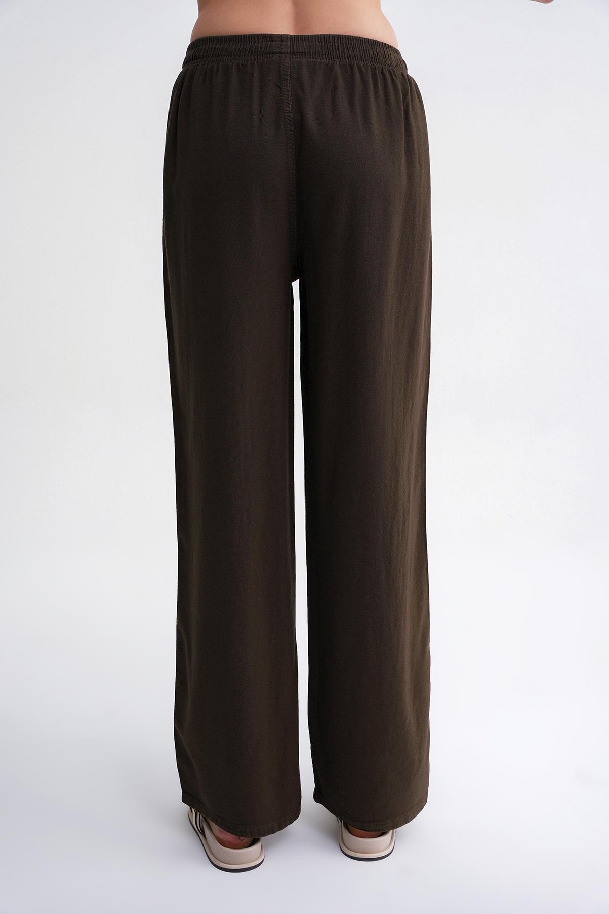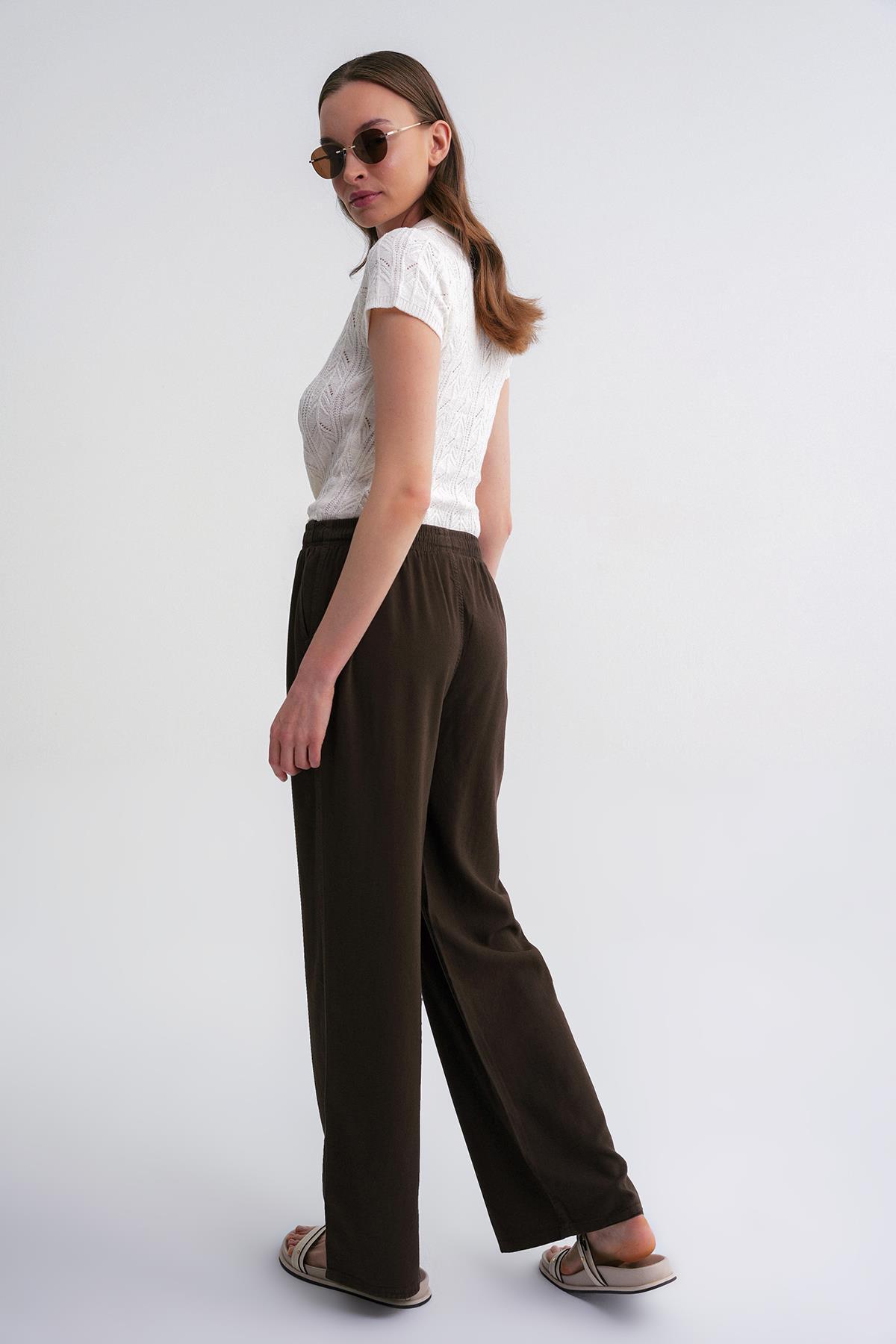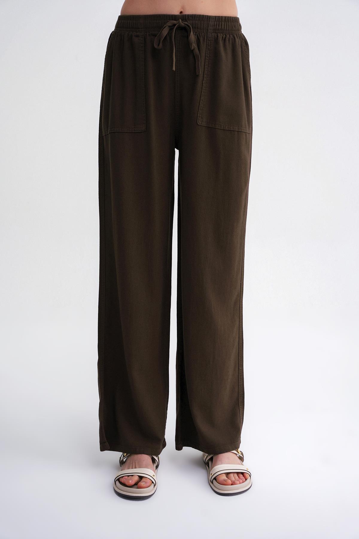 4629 Women's Wide Leg High Waist Viscose Palazzo Trousers Khaki