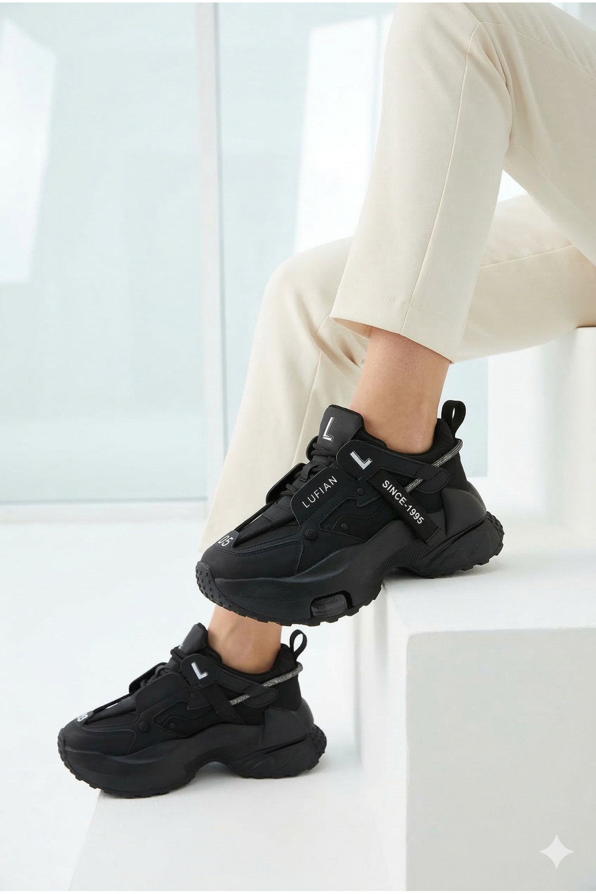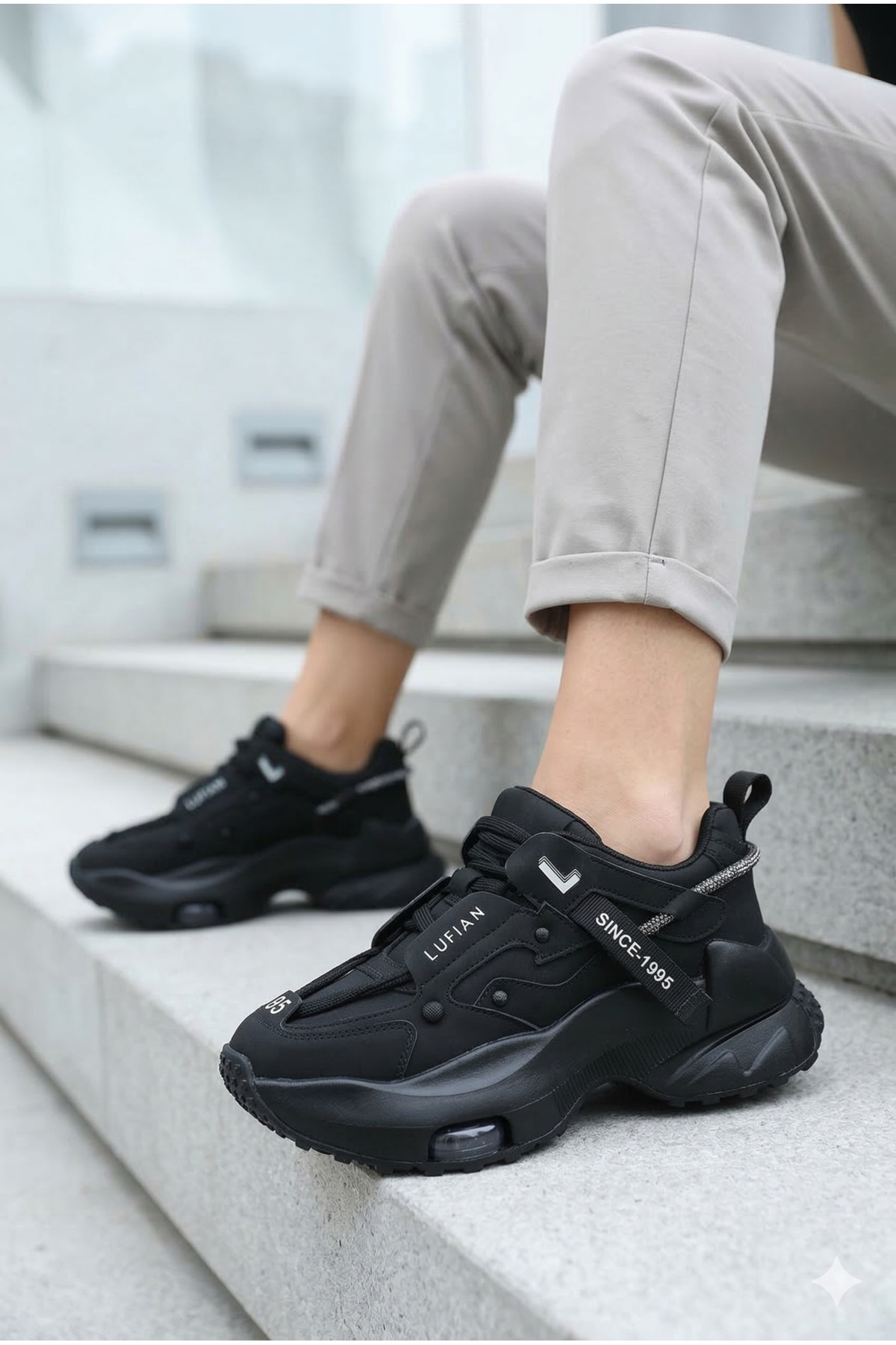 Lufian Stormy Women's Casual High Tannin Trend Style Sneaker Shoes Black | ByTR