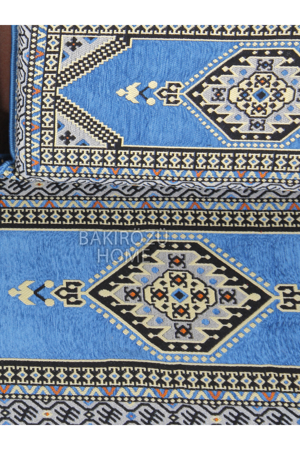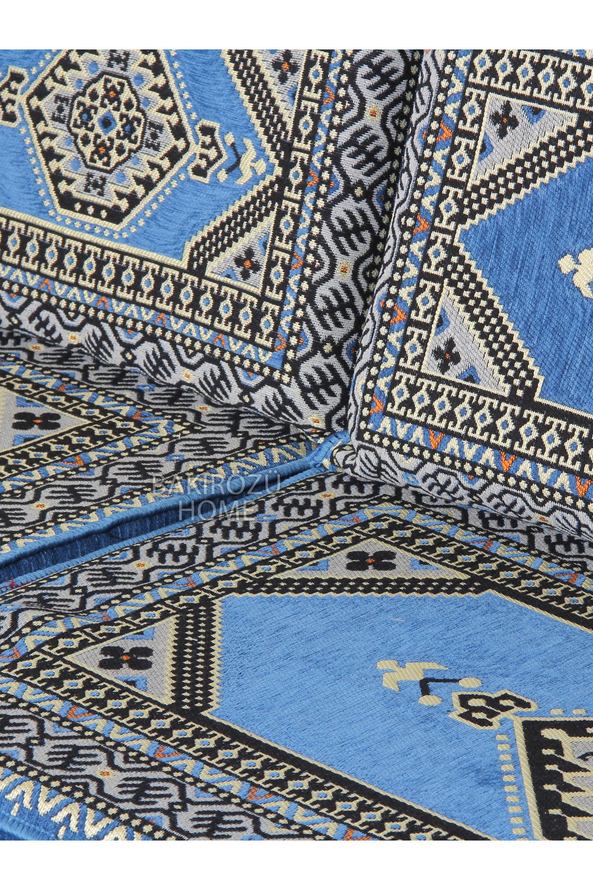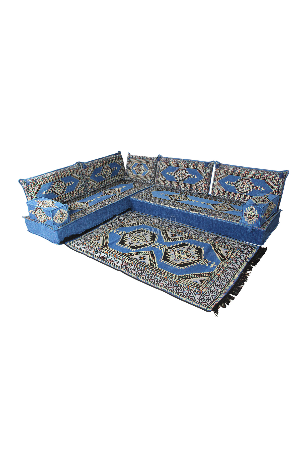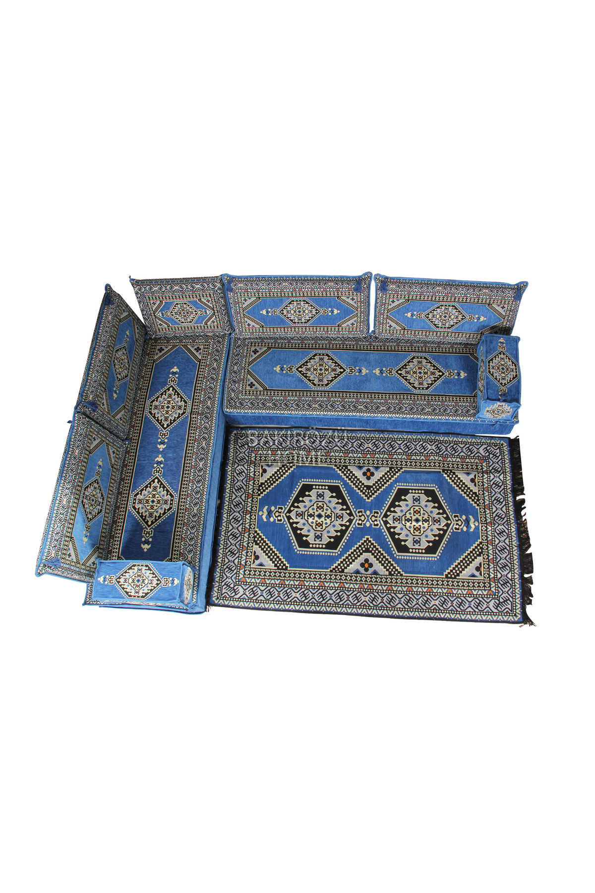 It consists of a total of 10 pieces, including 2 long sitting cushions (70 x 190 x 20 cm), 4 back cushions (42 x 92 x 10 cm), 1 intermediate back cushion (42 x 60 x 10 cm) , 2 armrest cushions (22 x 22 x 50 cm), 1 rug ( 120 cm x 180 cm ).