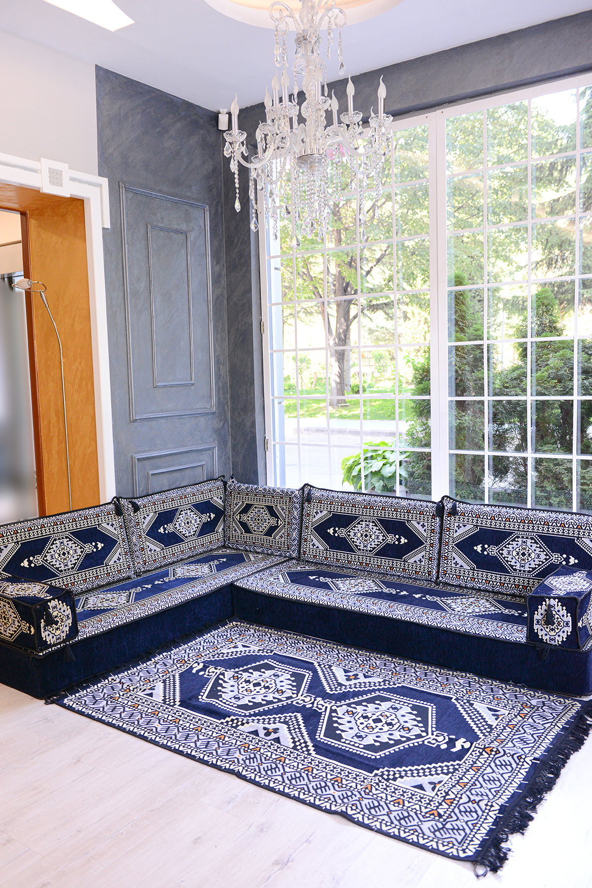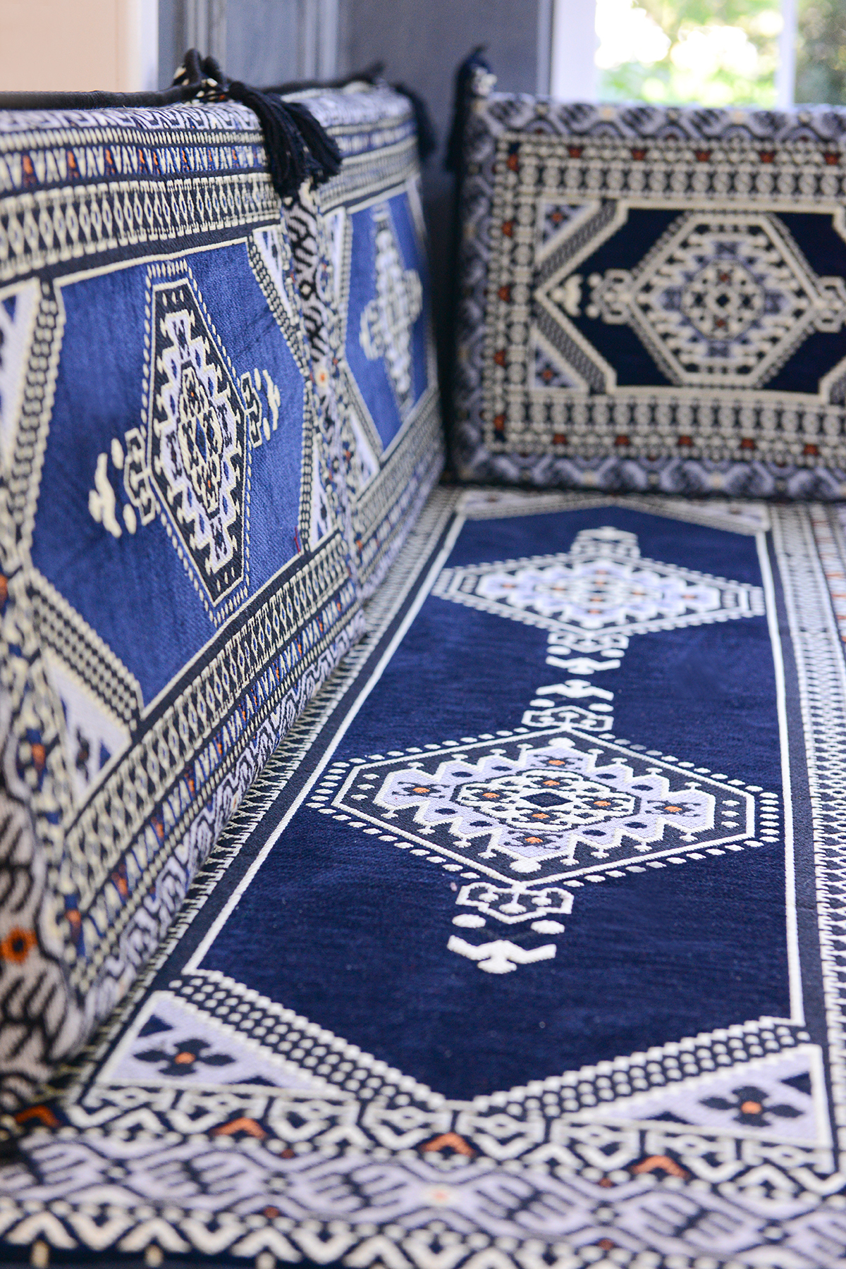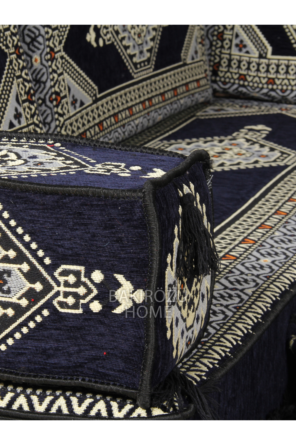 BAKIRÖZÜ HOME Oriental Corner Set (20 CM CUSHION THICKNESS) Navy Blue Yahyalı Model 10 Pieces | ByTR