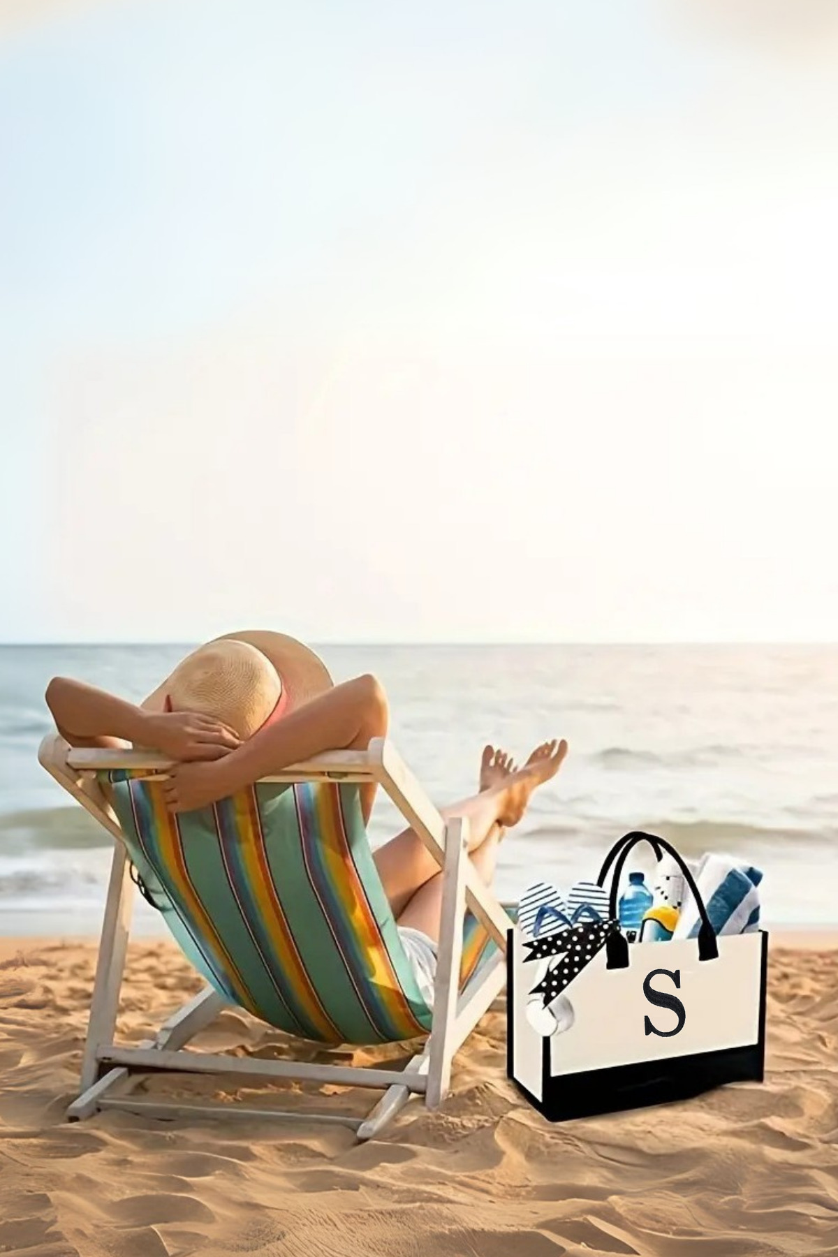 Printed Canvas Fabric Beach Bag with Initials of Your Name - Makeup Bag with Gift