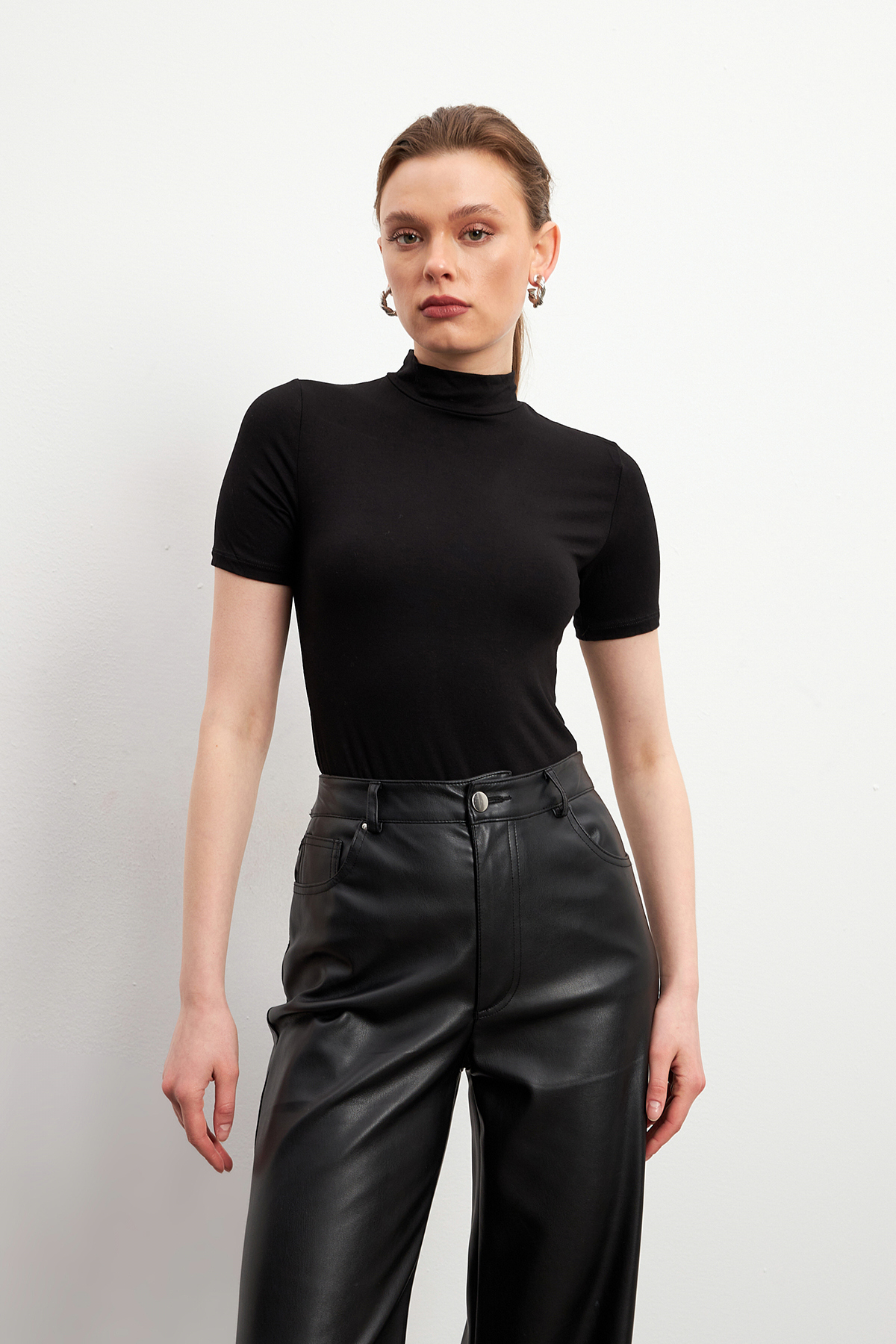 The half turtleneck is perfect for adding an elegant touch.