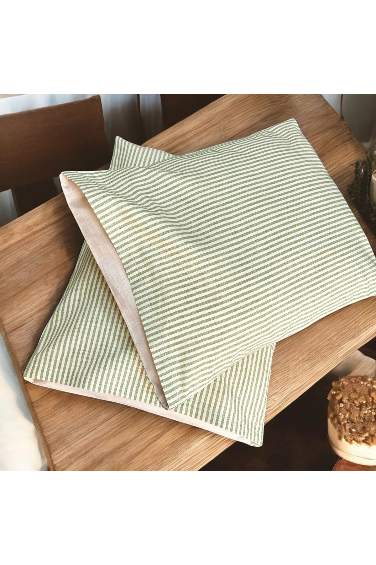 100% Cotton Yarn Dyed Striped Single Pillowcase 2-Piece Set - 50x70 cm Natural Pocket Detailed