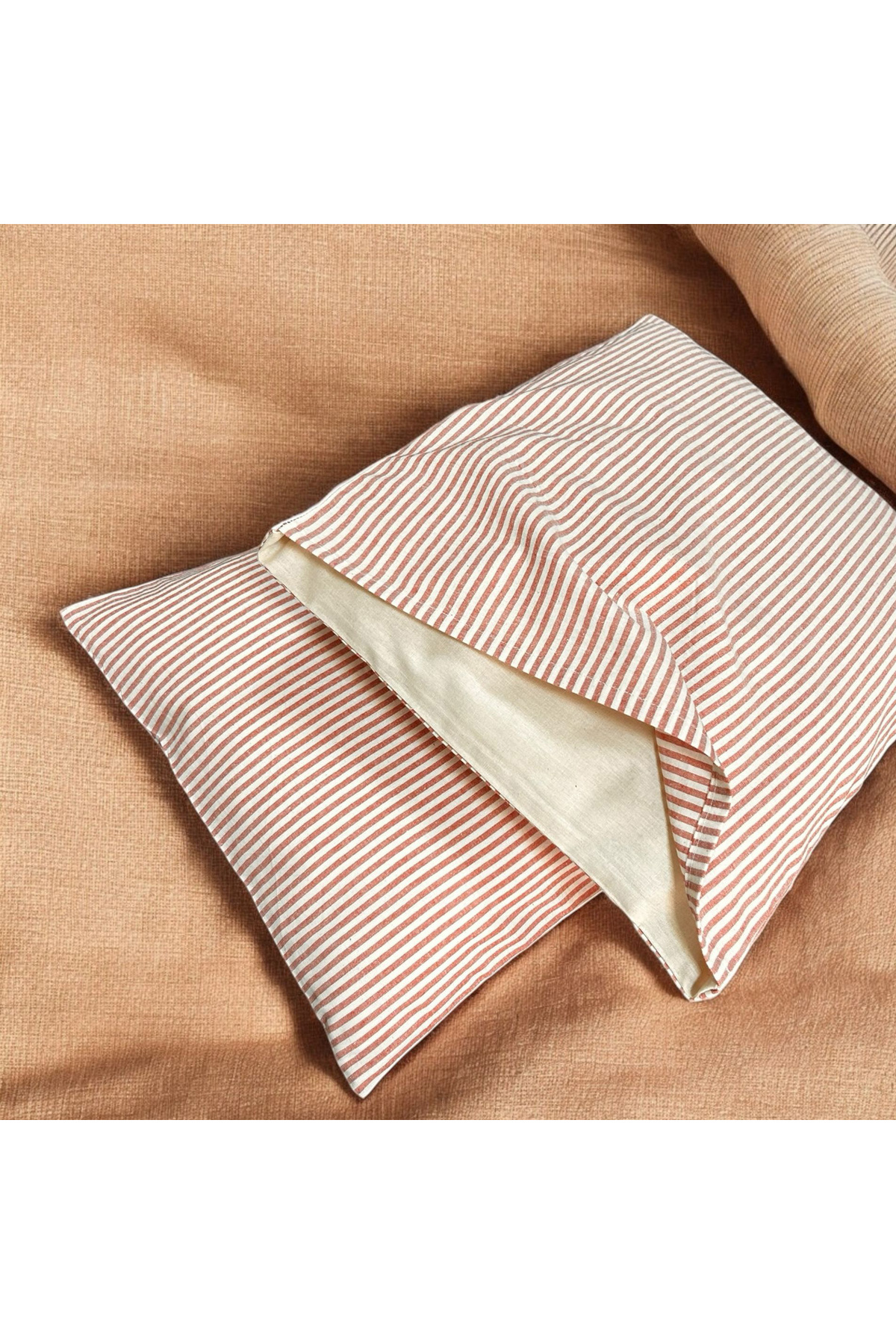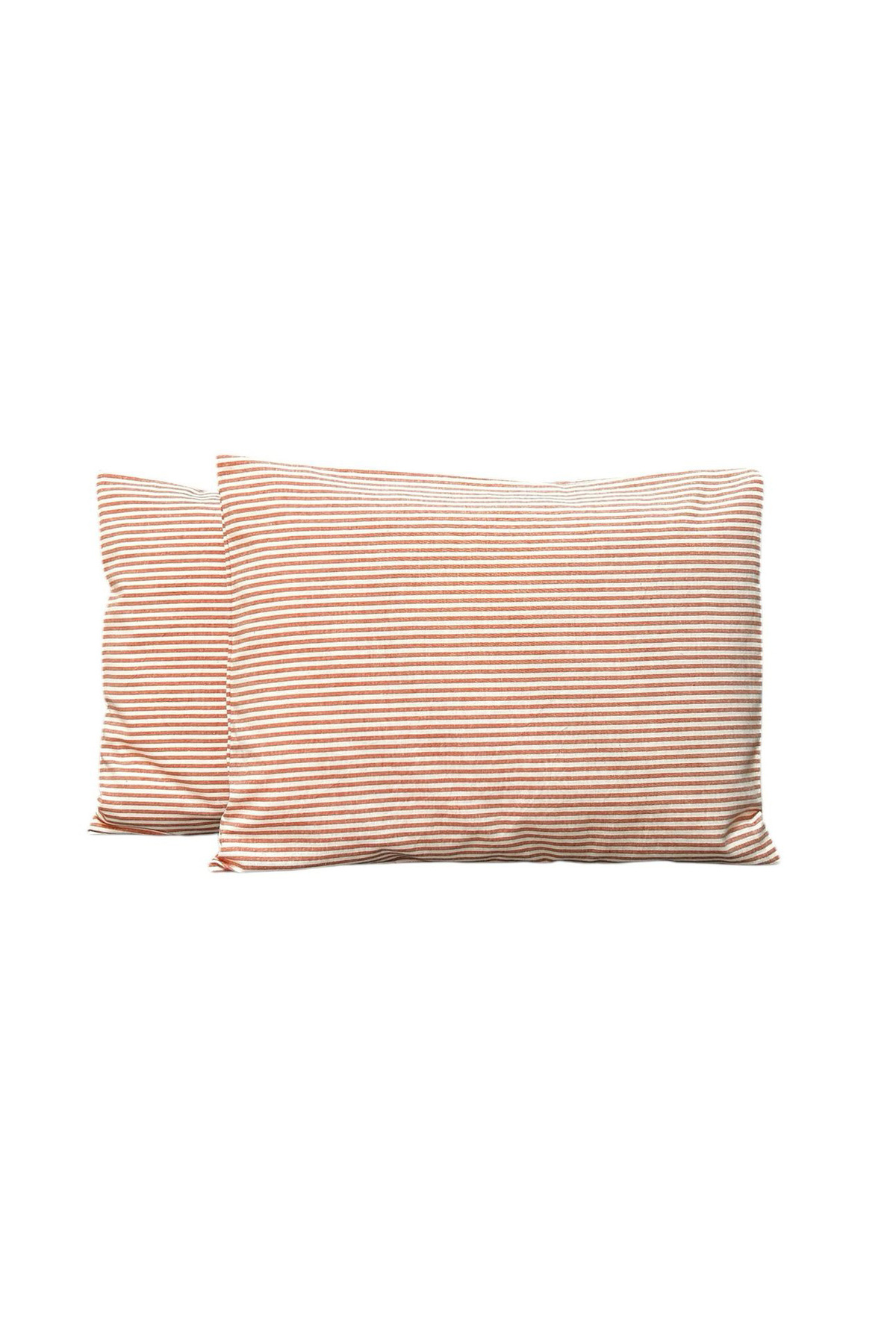 100% Cotton Yarn Dyed Striped Single Pillowcase 2-Piece Set - 50x70 cm Natural Pocket Detailed