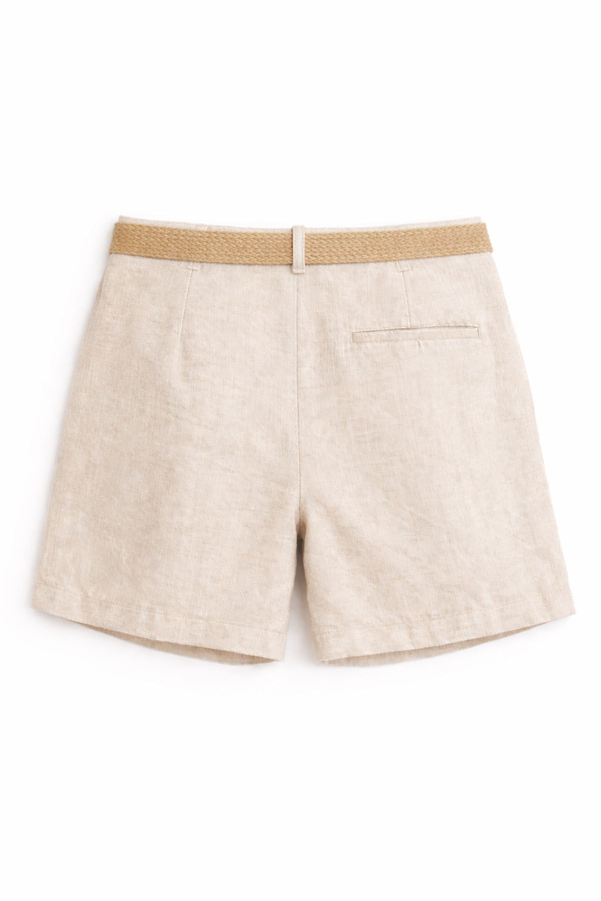 4051 Women's Wicker Belted Linen Bermuda Shorts Natural