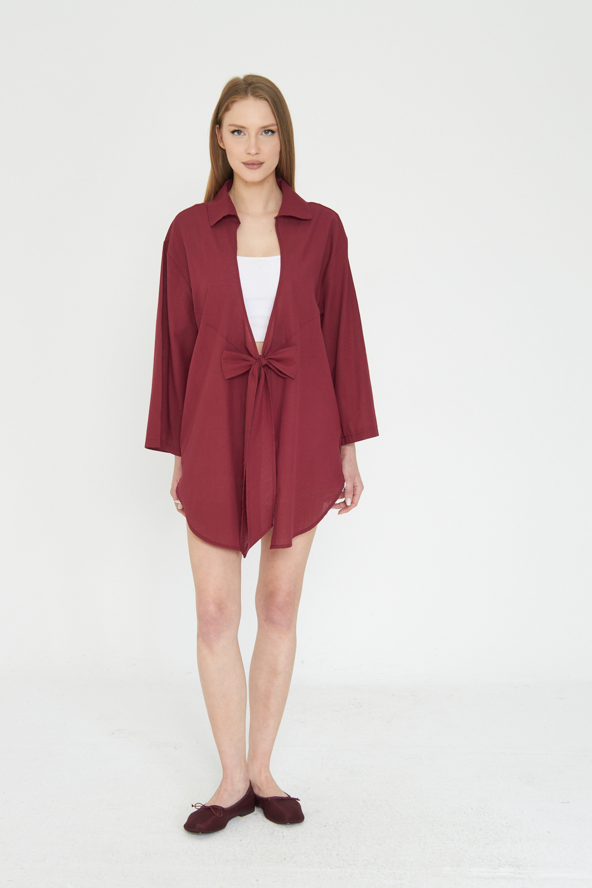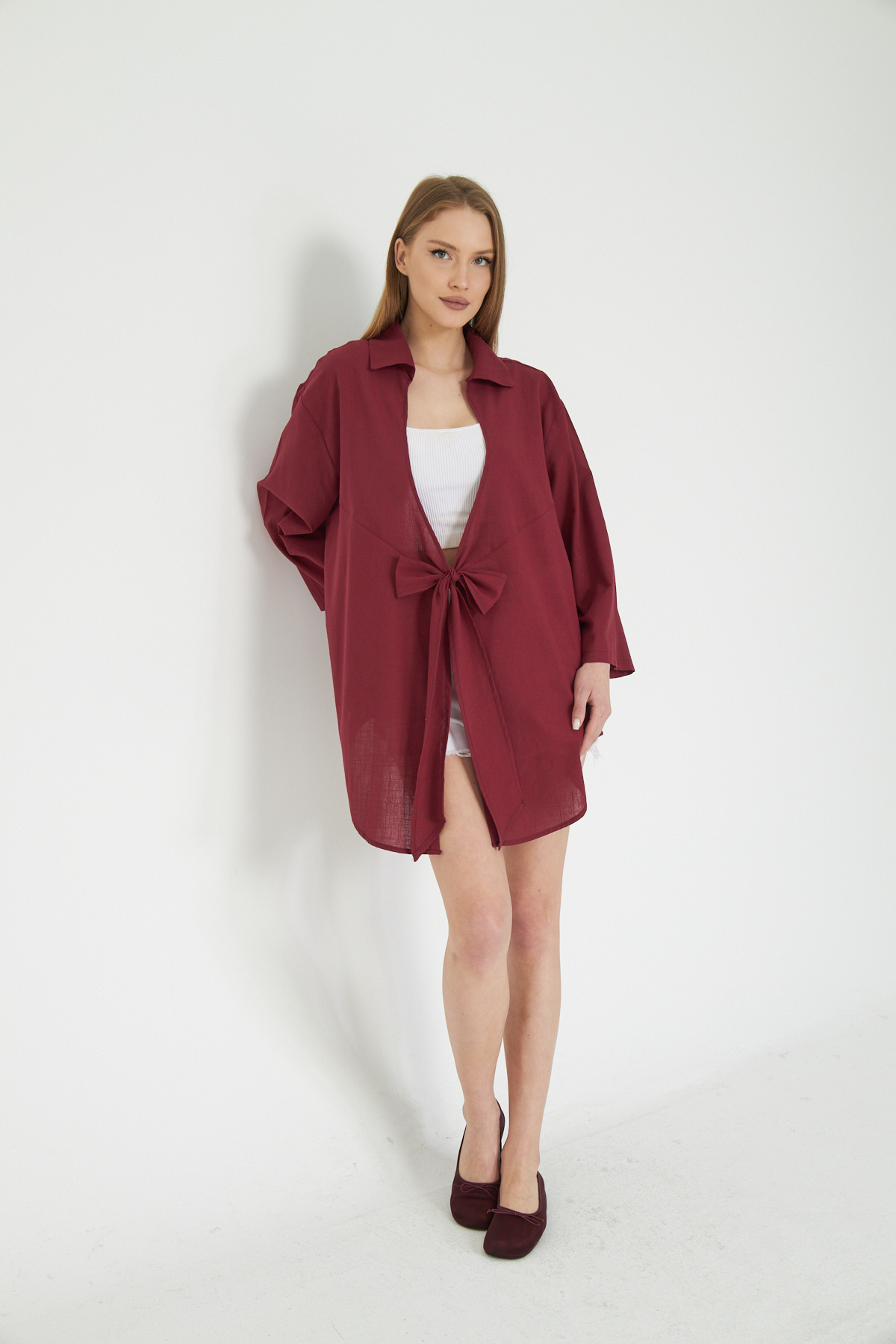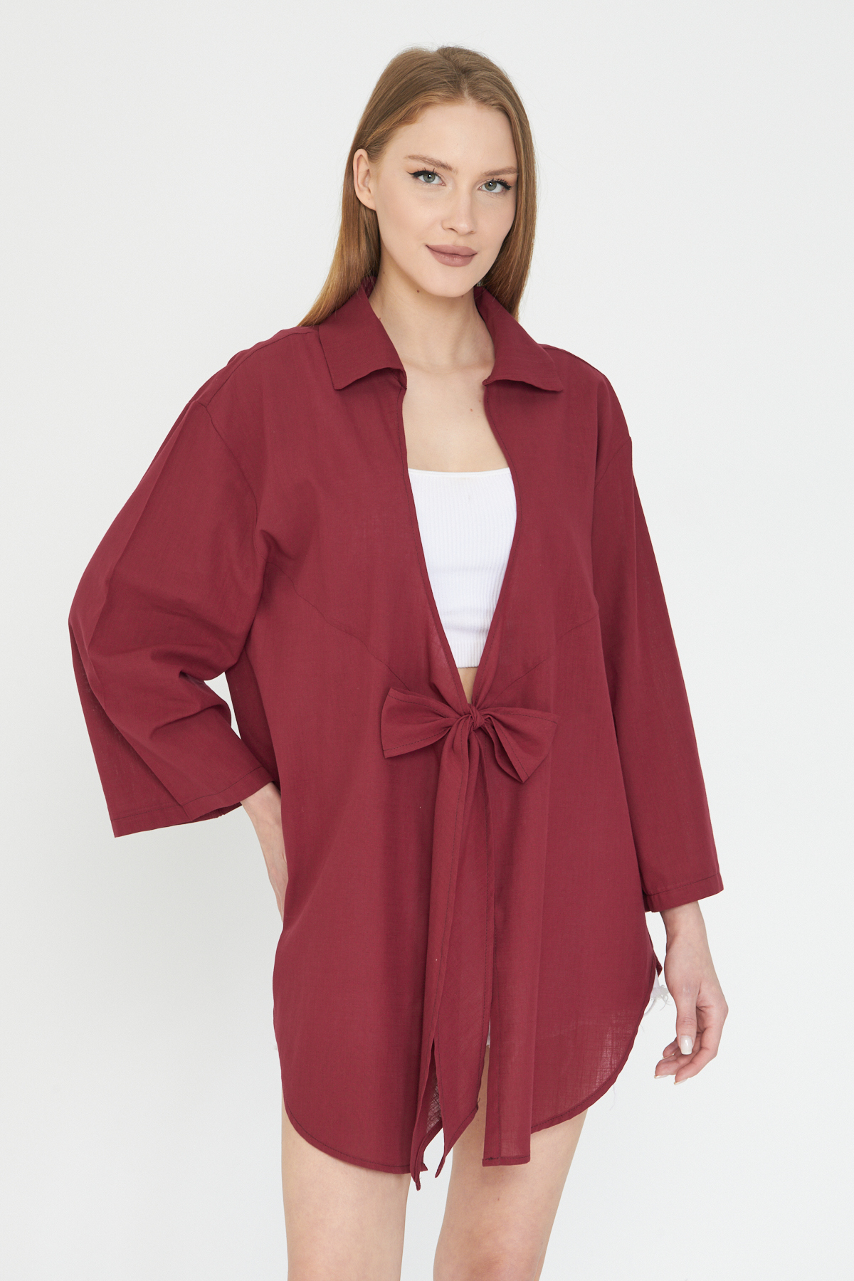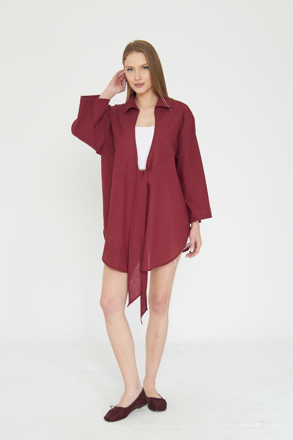 Black linen kimono shirt that is indispensable in the summer months, offering a light and comfortable use.
