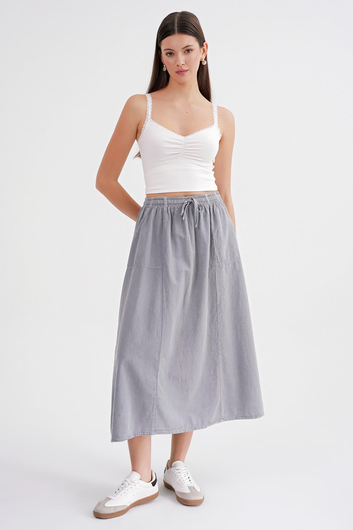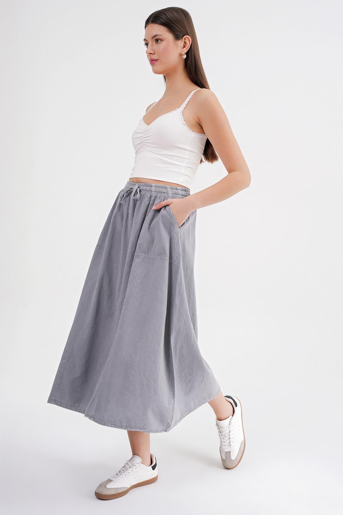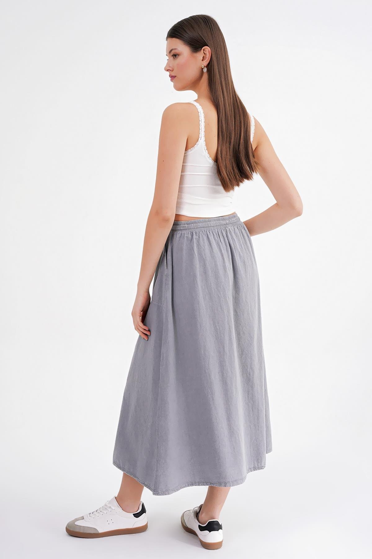 Mixray 4633 Women's Parted Skirt with Side Pockets Gray | ByTR