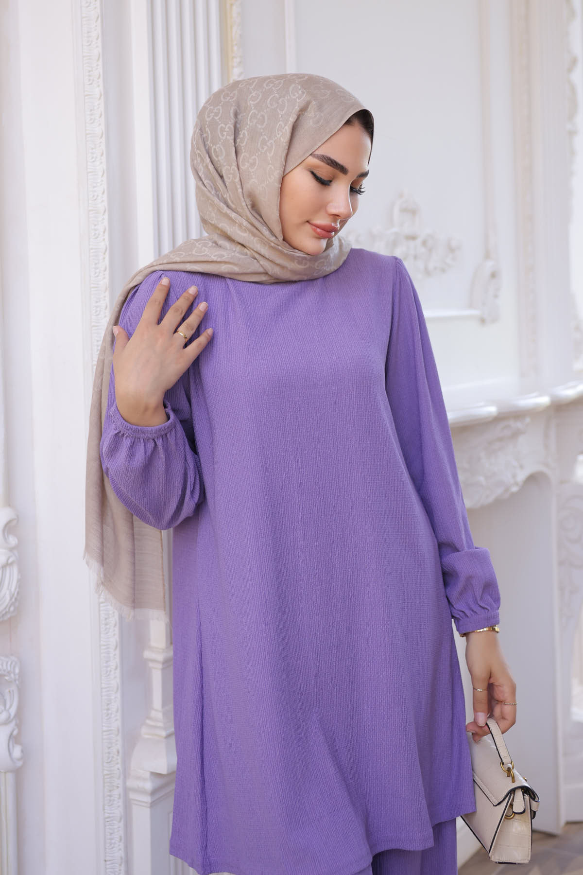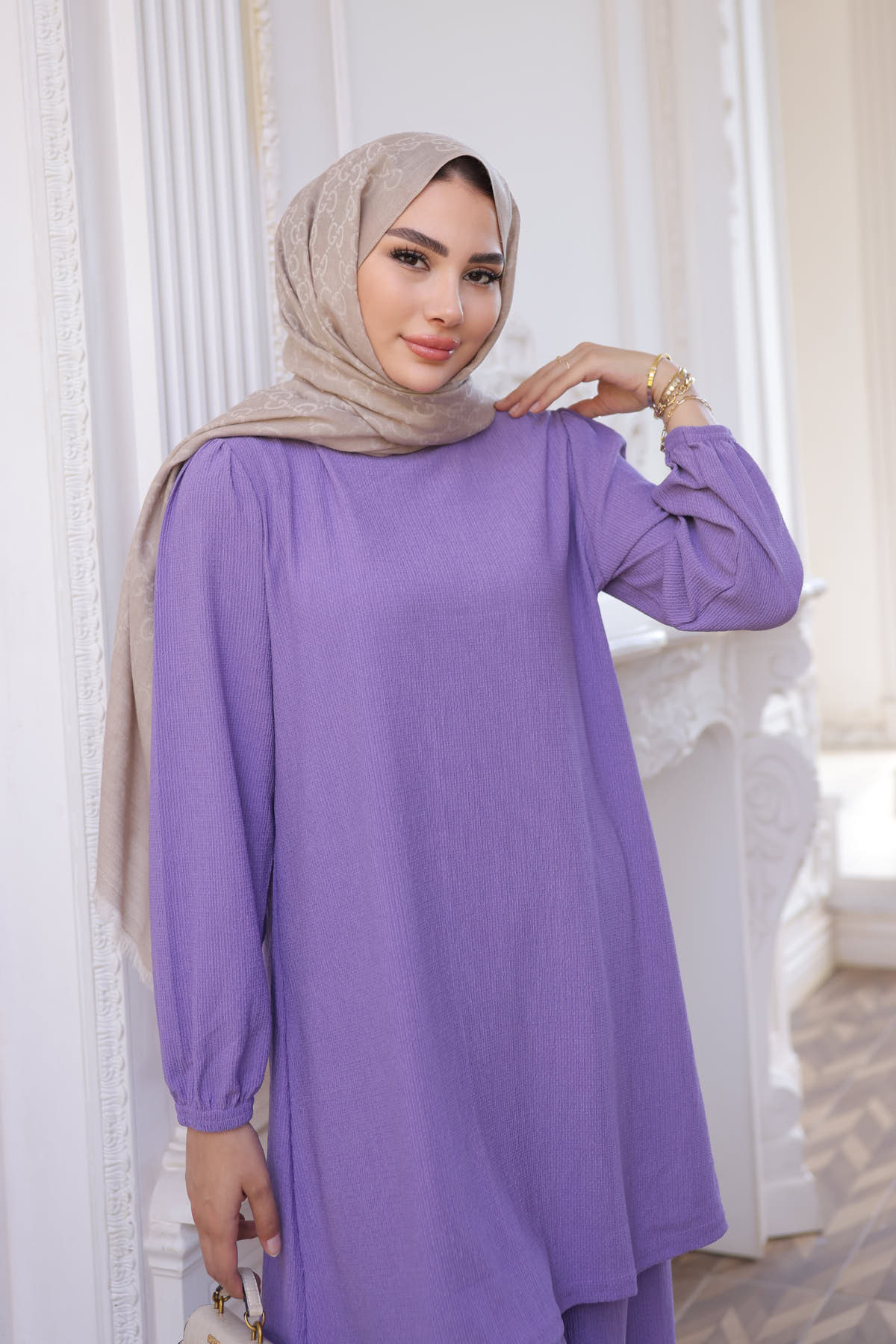 This set belonging to the hijab clothing collection is suitable for both day and night use
