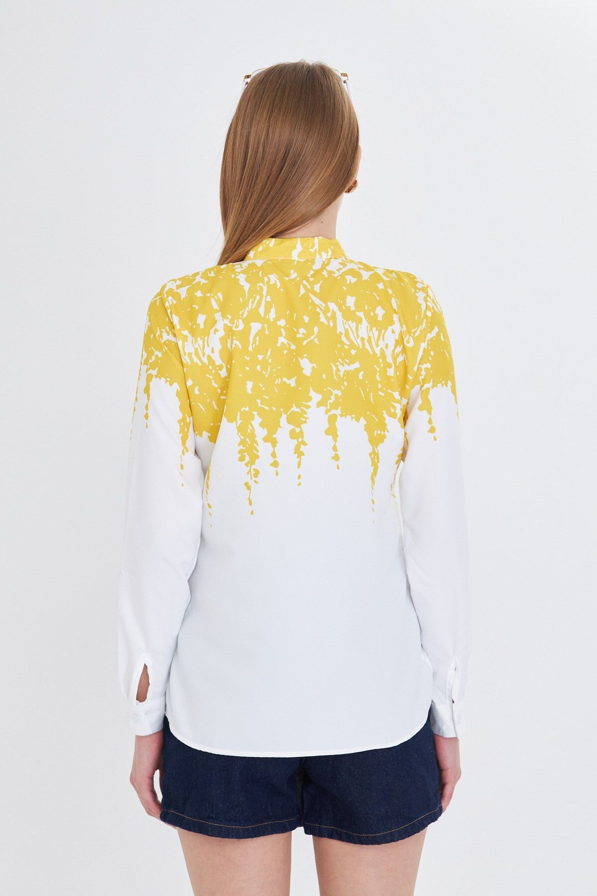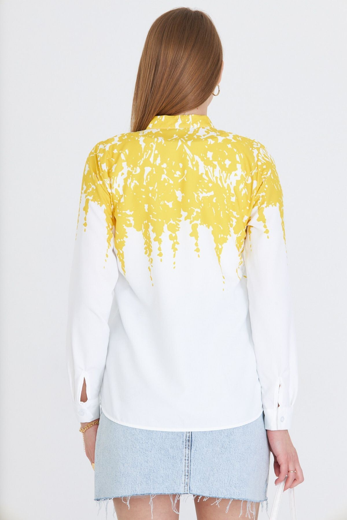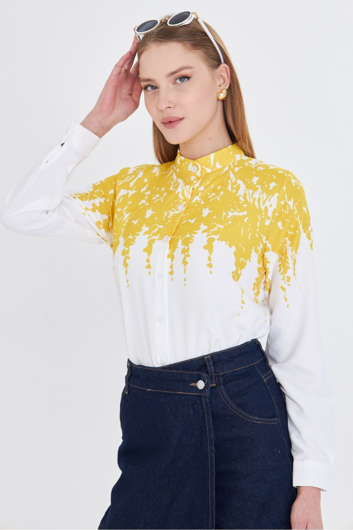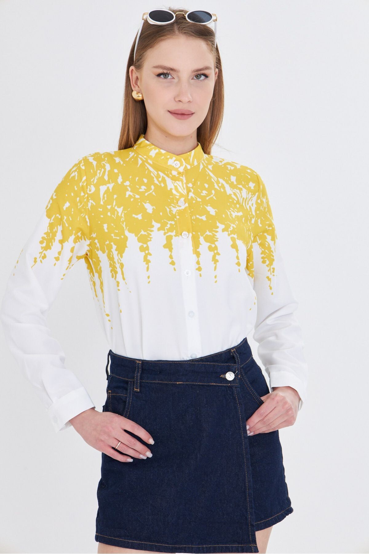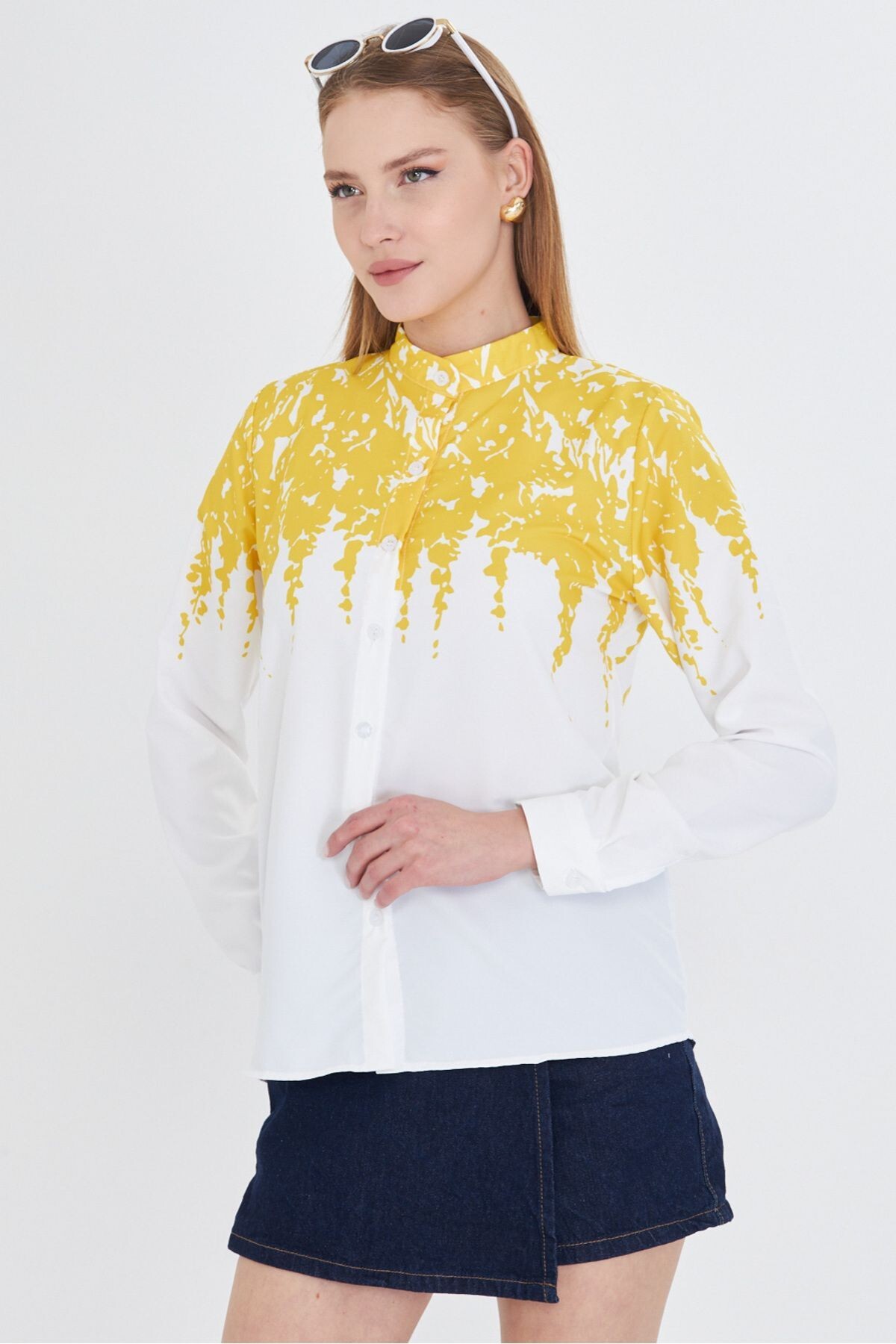 armonika Women's Mustard Judge Collar Patterned Shirt ARM-25Y001013 | ByTR