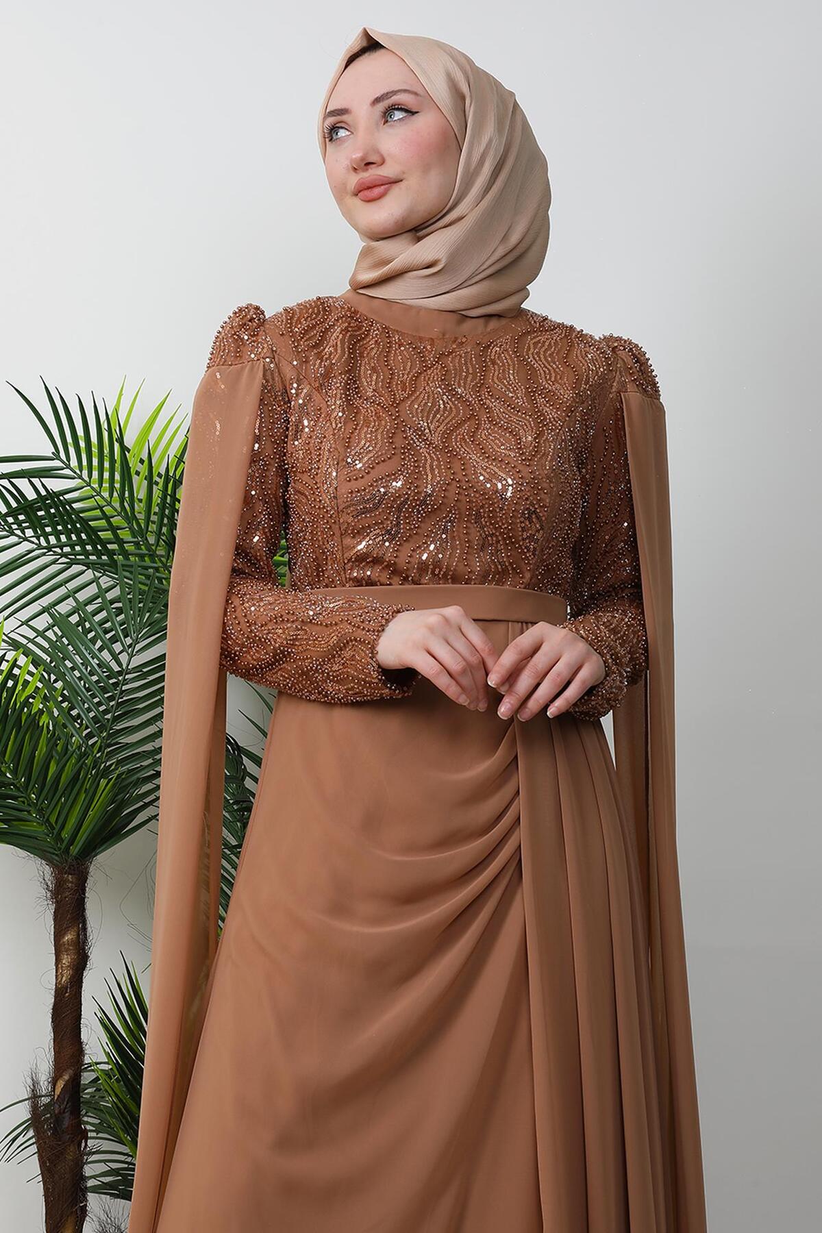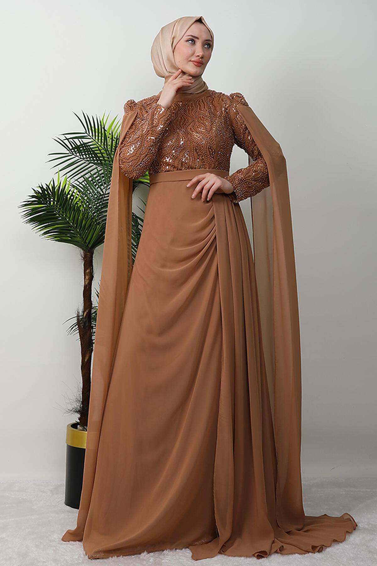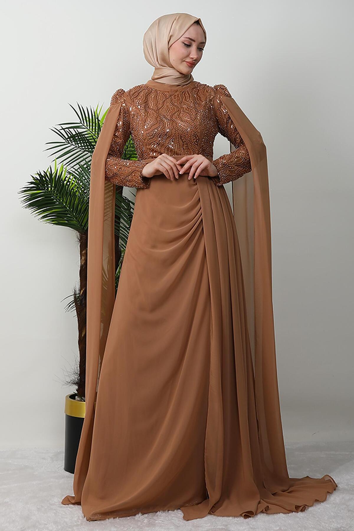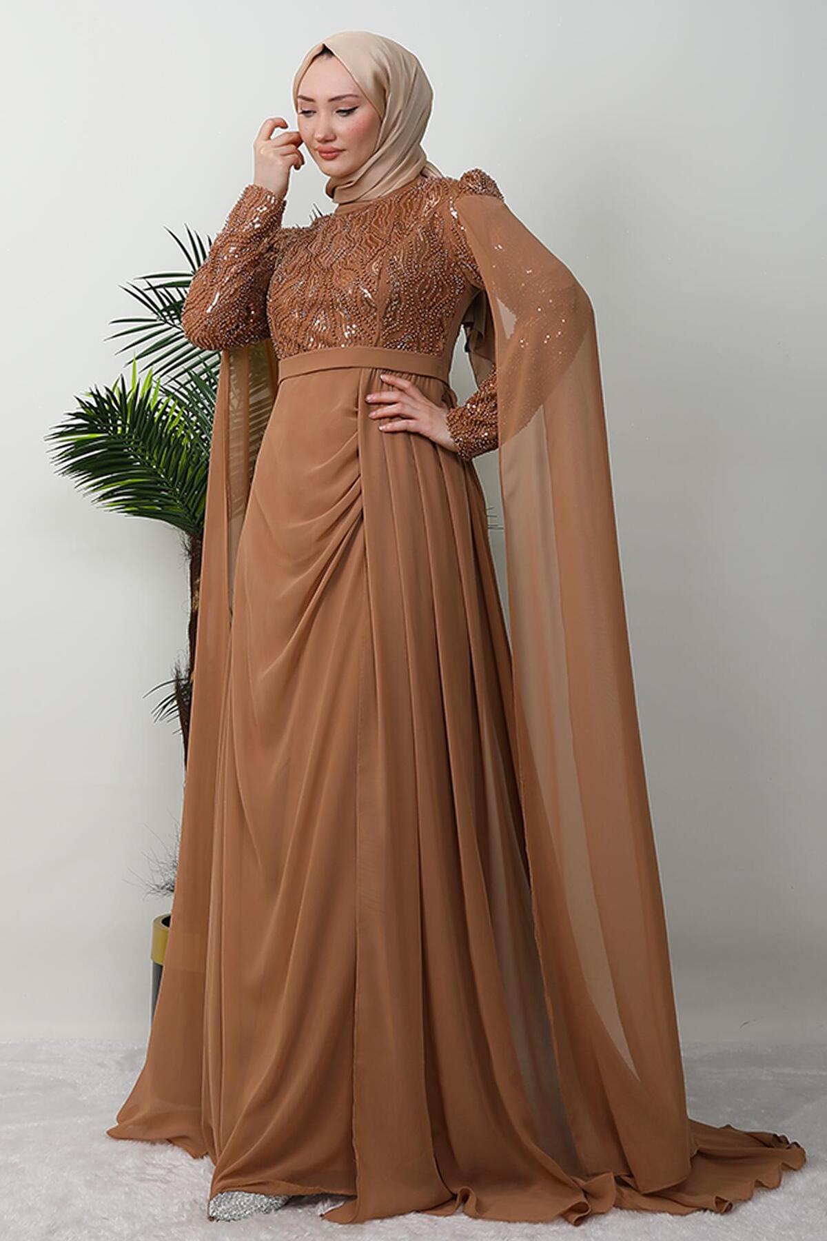 GİYZAMİLA Dressed in Modest Evening Dresses - Tan | ByTR