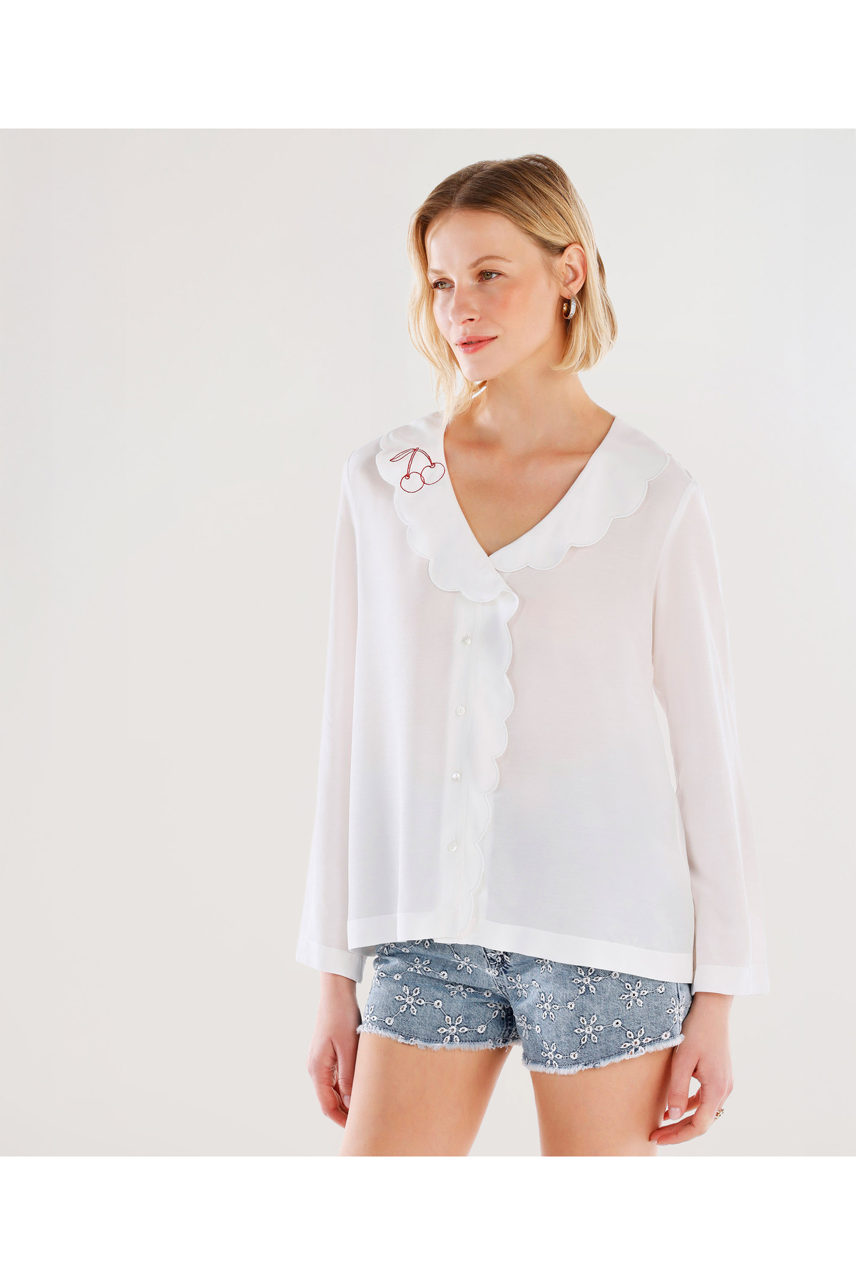 This shirt, which stands out with its moving design and elegant texture, adds a different atmosphere to the combinations with its detailed collar cut.