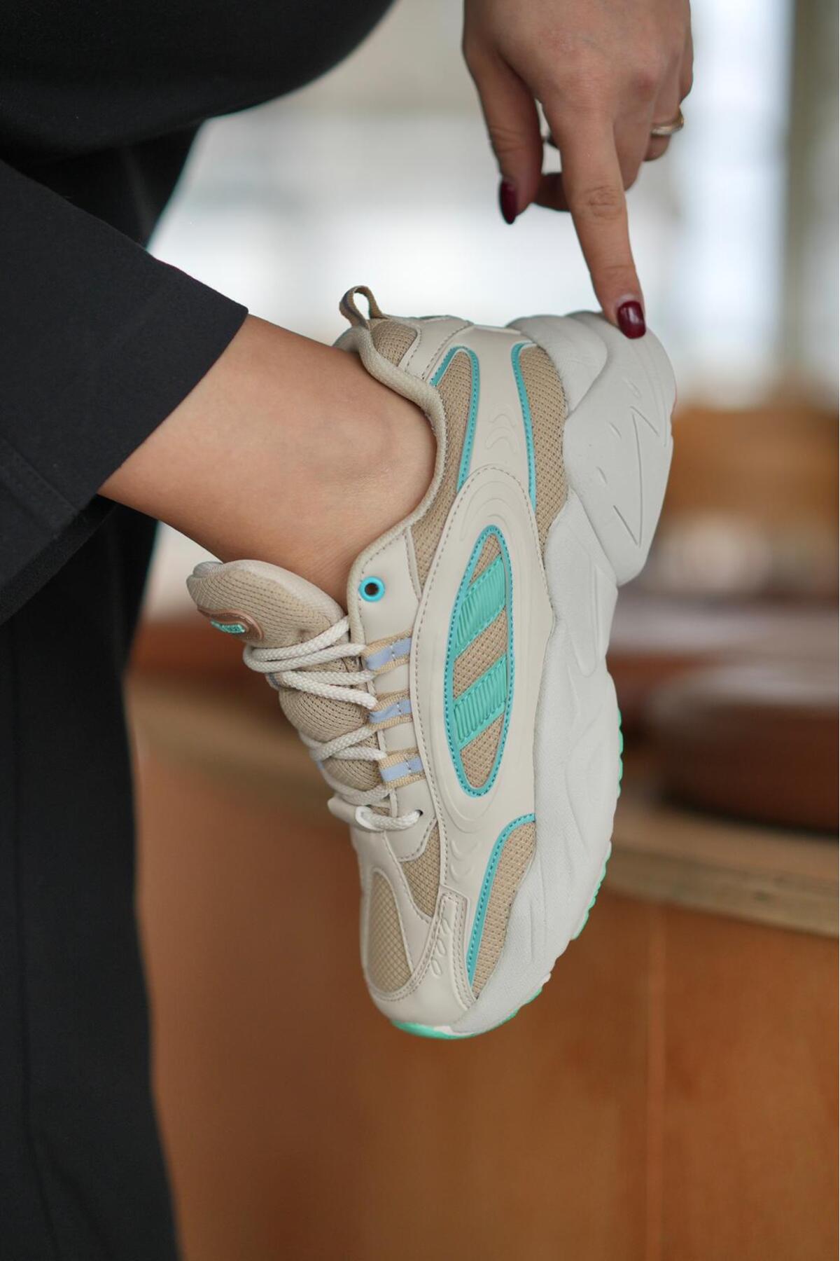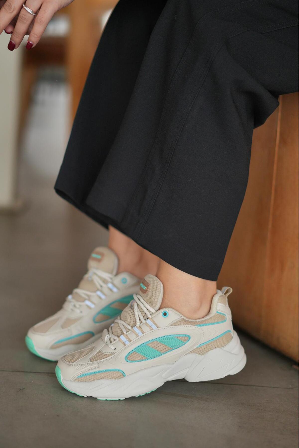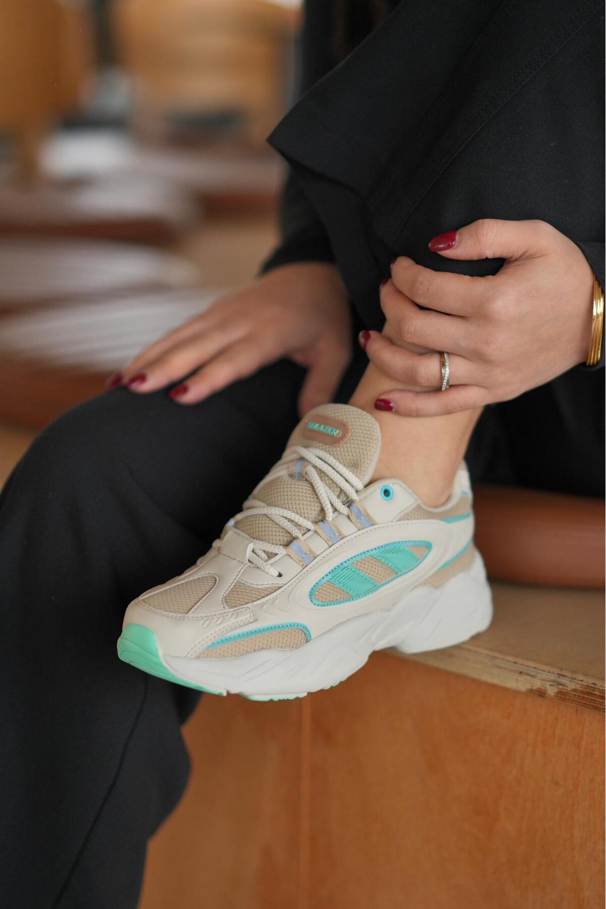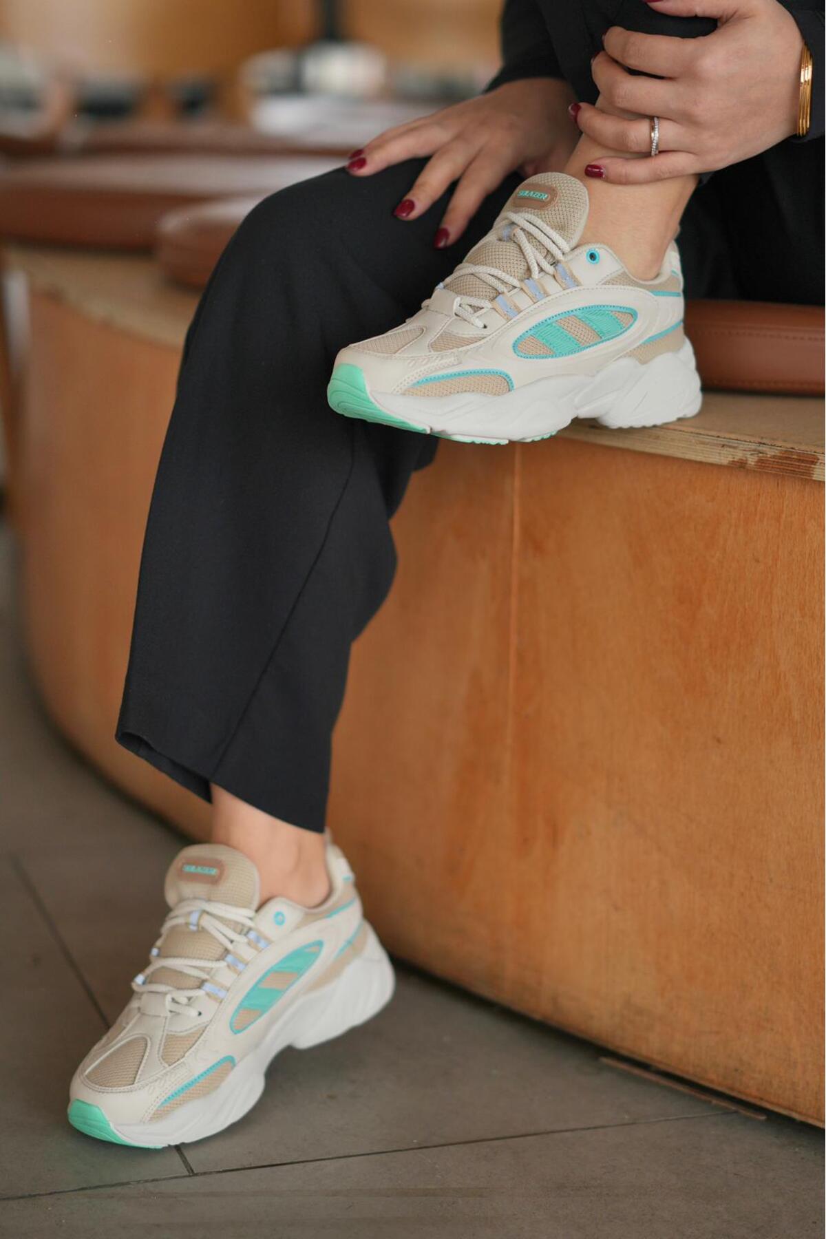 SOLAZER Women's Beige Green Sneaker Casual Sports Shoes 047 | ByTR