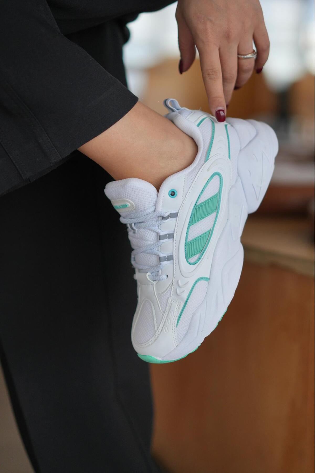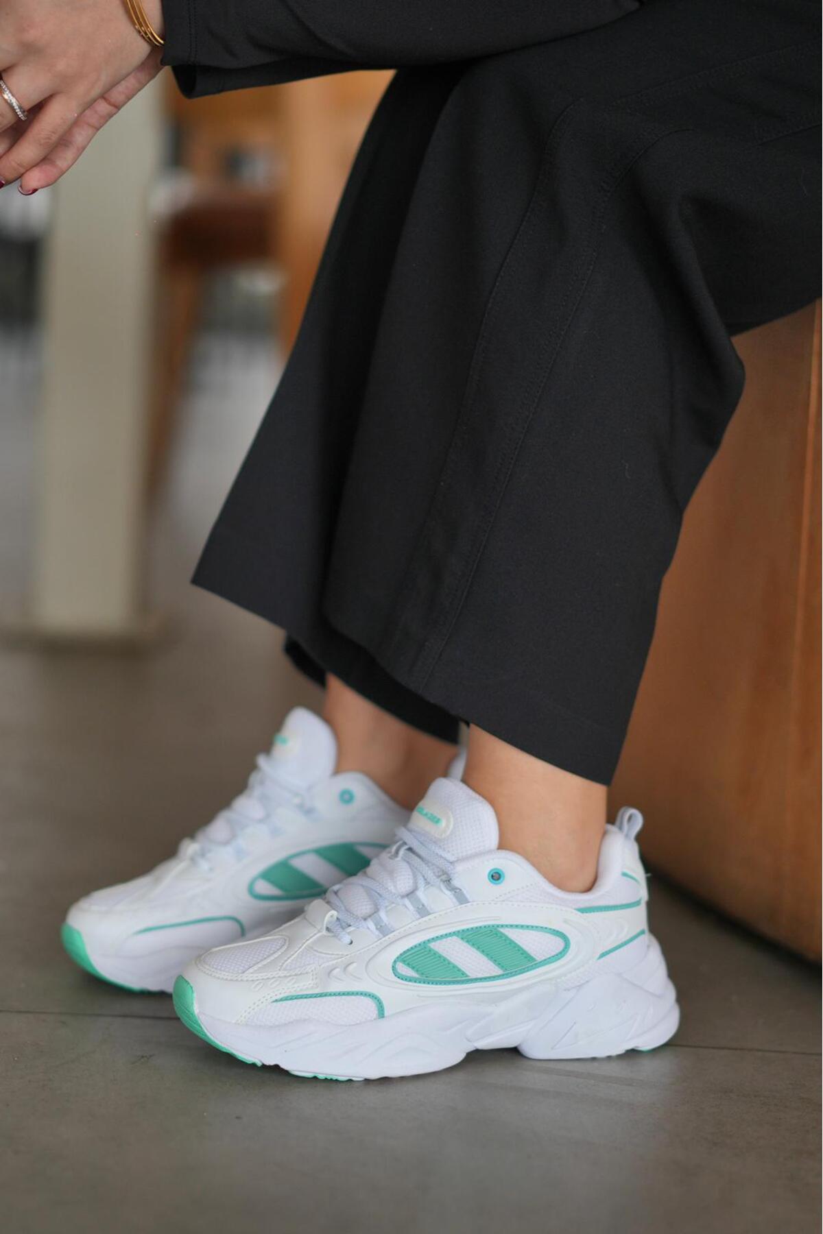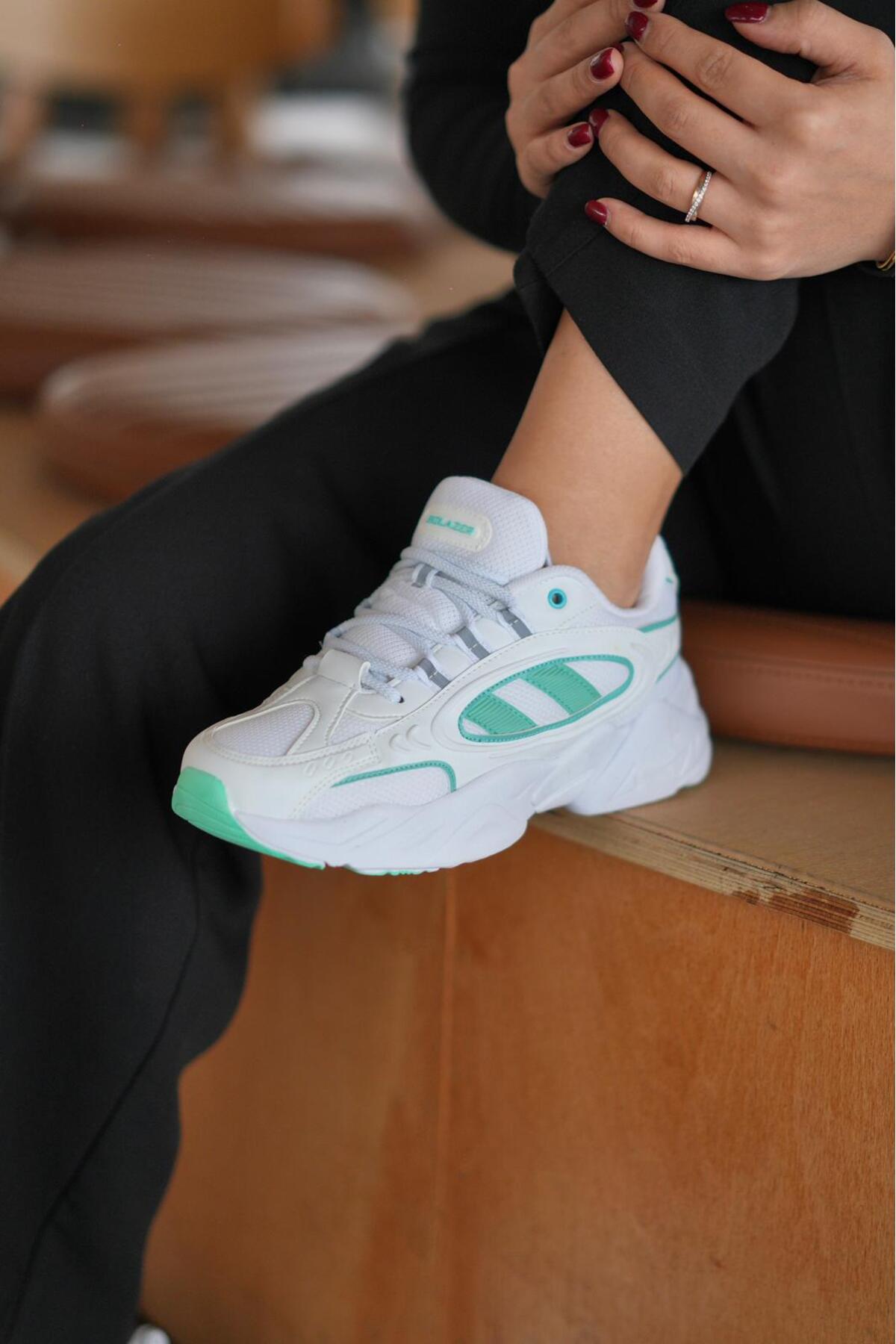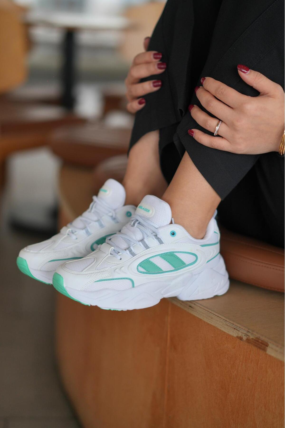 SOLAZER Women's White Green Sneaker Casual Sports Shoes 047 | ByTR