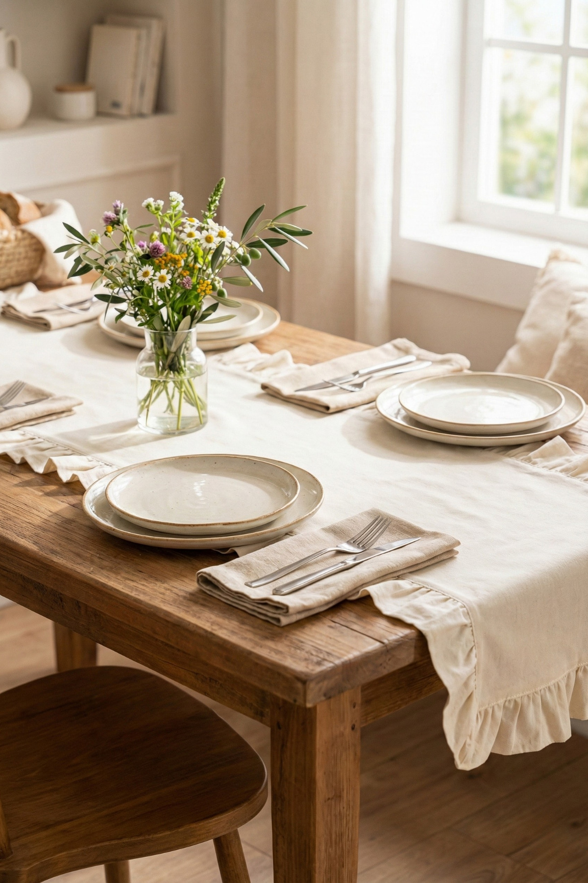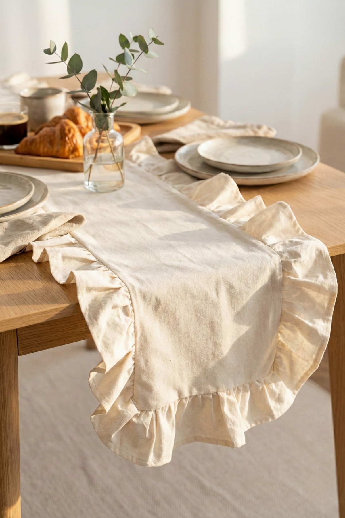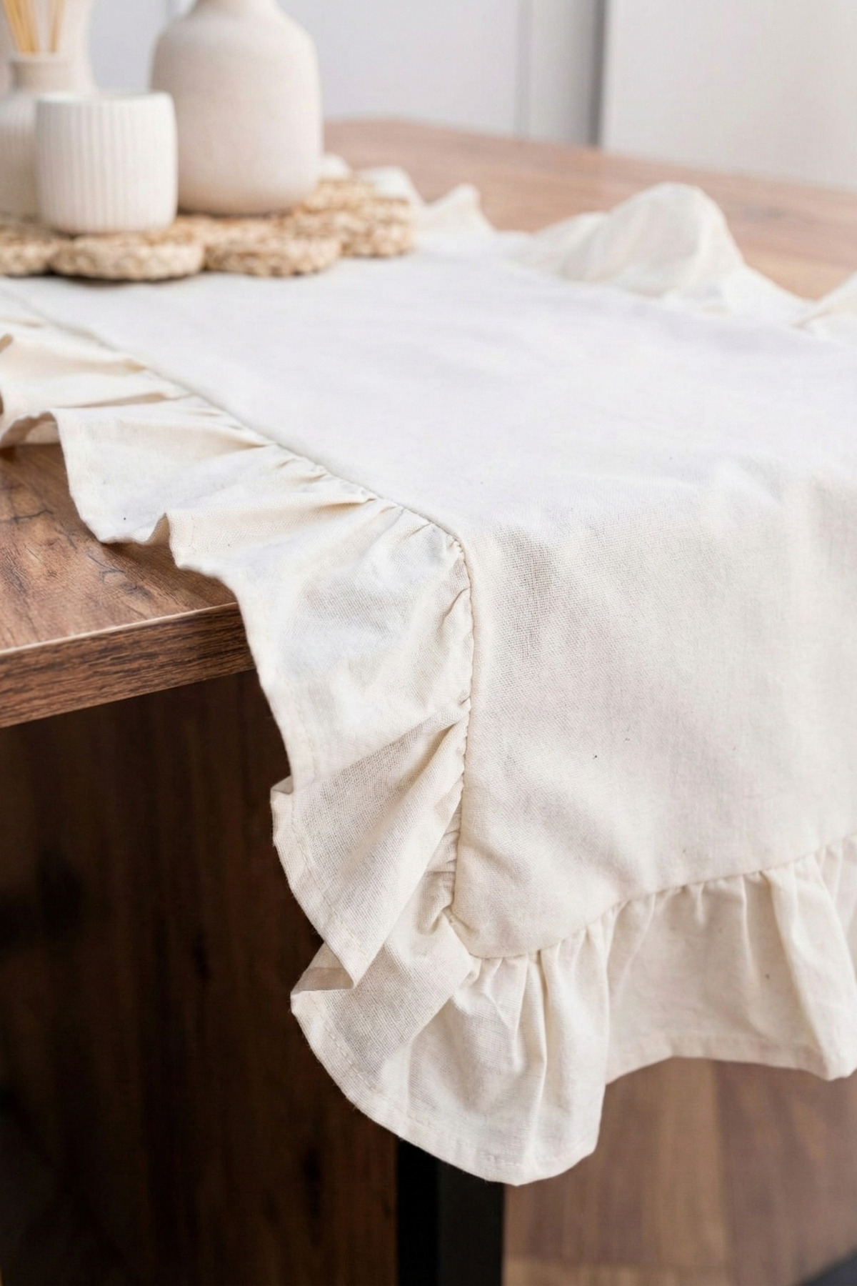 Raw Natural Ruffle Linen Runner - 40x150 cm