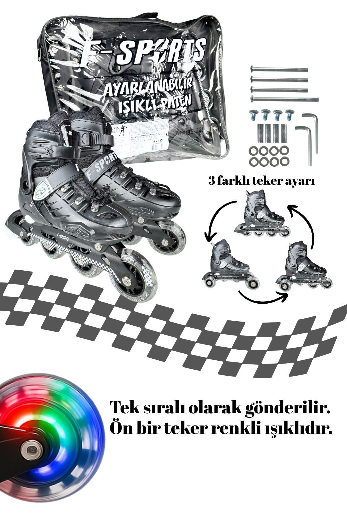 Toyaş Black Series One Wheel Lighted Skate Knee Brace with Elbow Bracket Set Kids Skate Carrying Bag 3 in 1 | ByTR