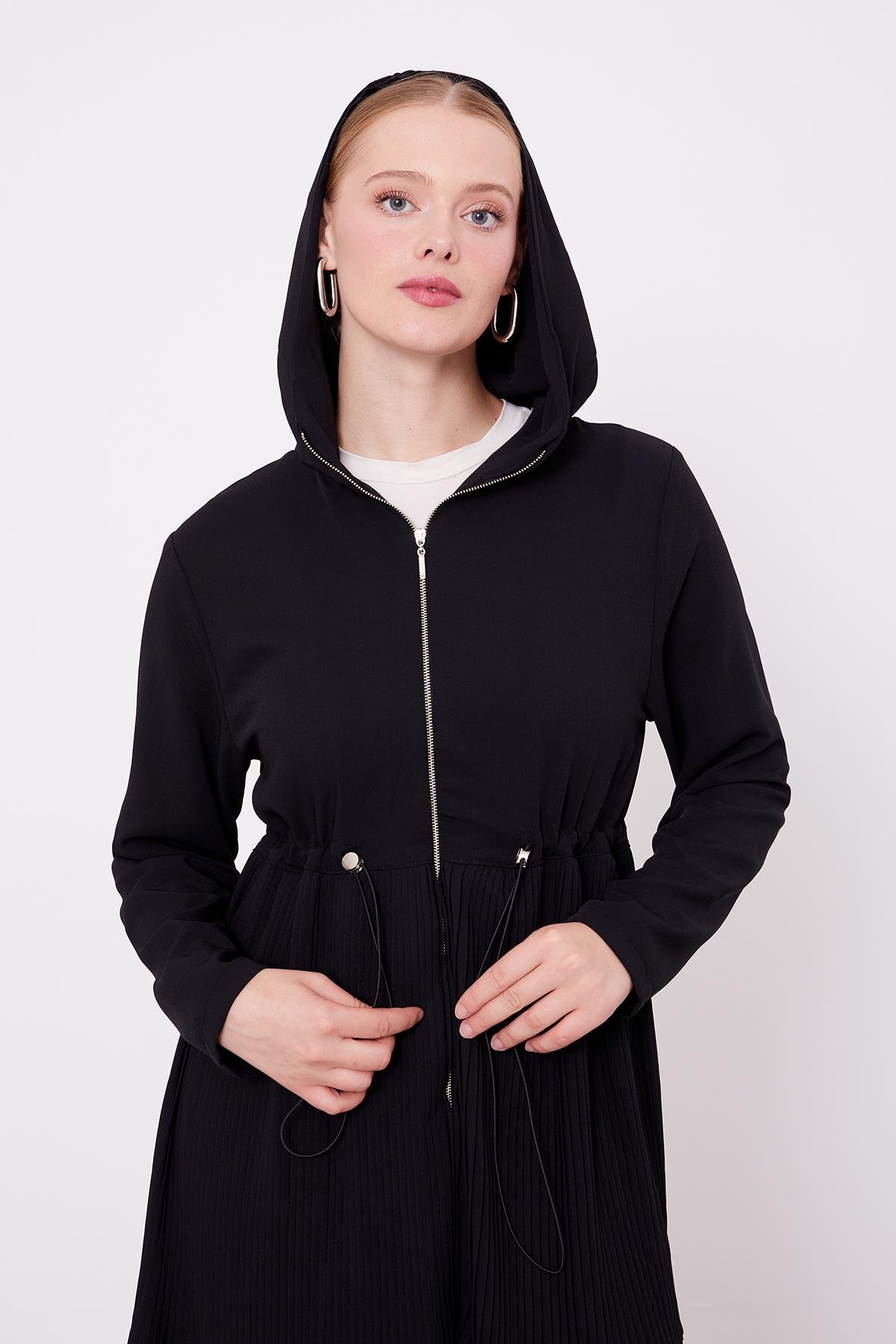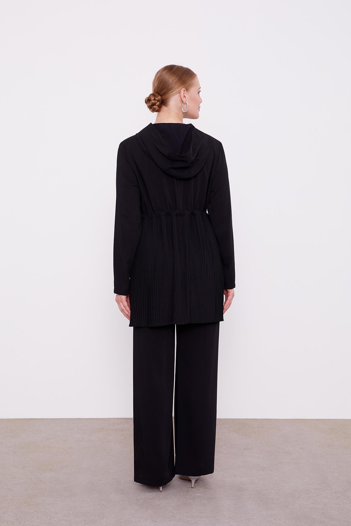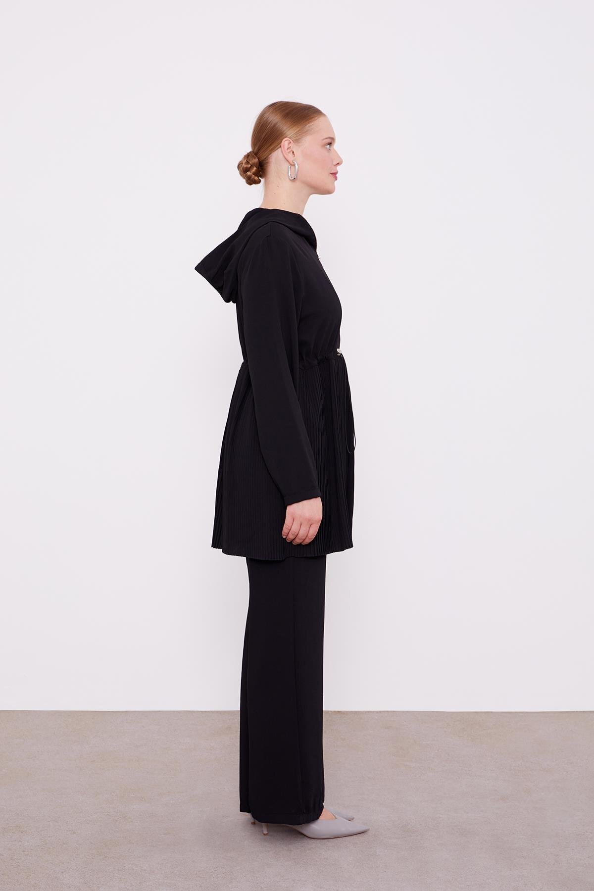 Detailed hooded two-piece set with rope shirring and pleat on the waist