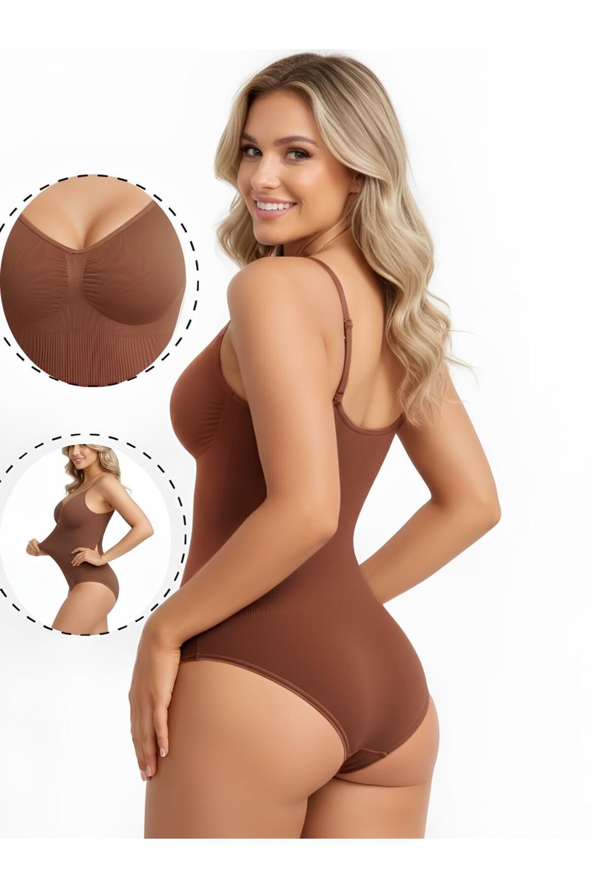 MİSTİRİK Mamey Model Knitted Fabric Wrapper Snap Fastener Body Brown Color (SNAPSUIT)4 | ByTR