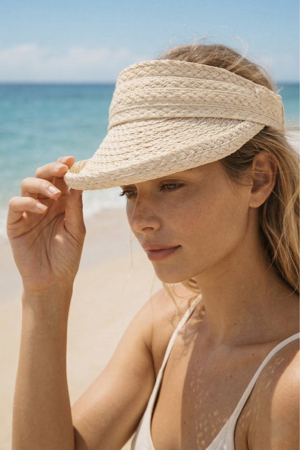 Luminos Butik Beige Curved Original Straw Visor Hat Suitable for Daily Use and Beach Use HSR2113 | ByTR