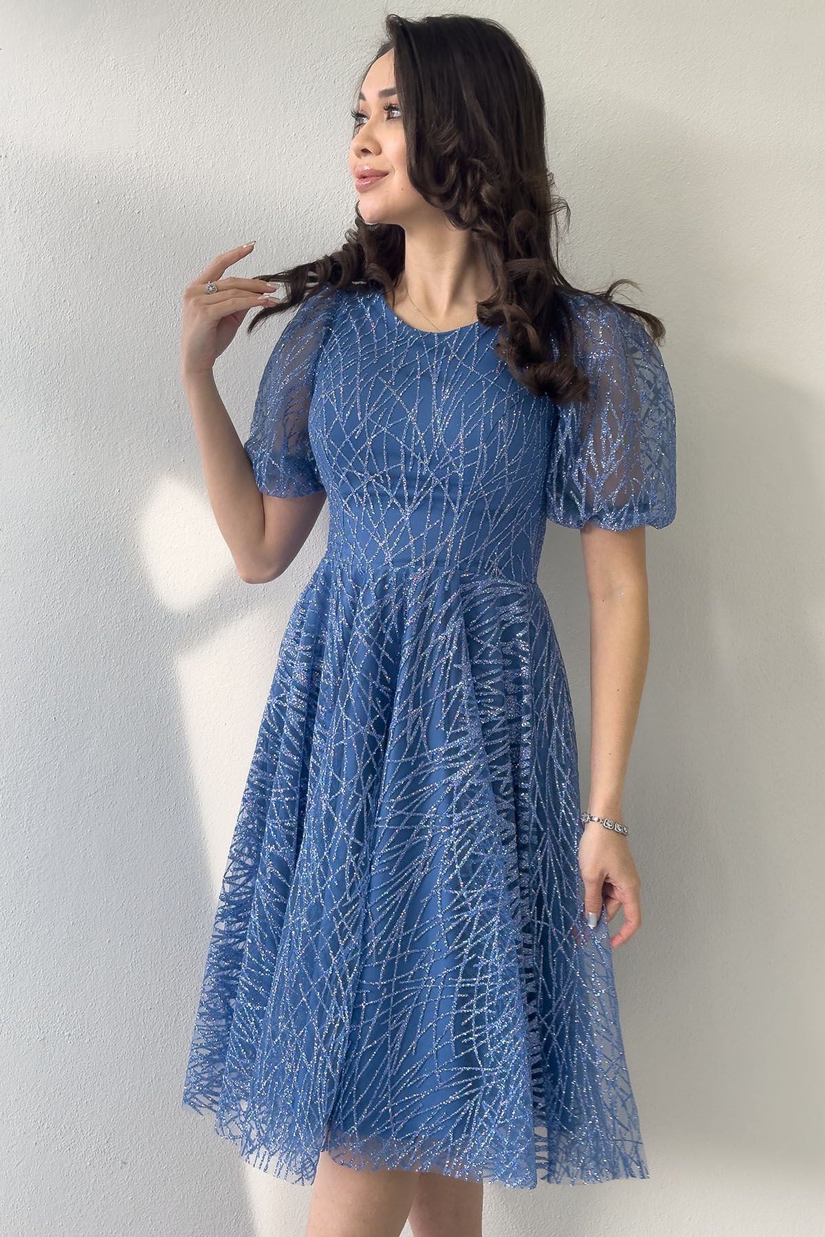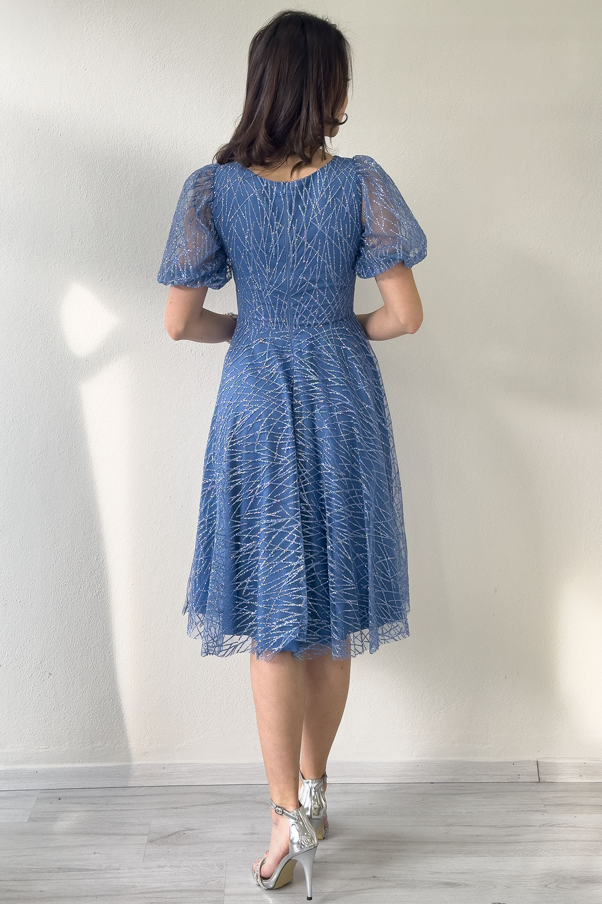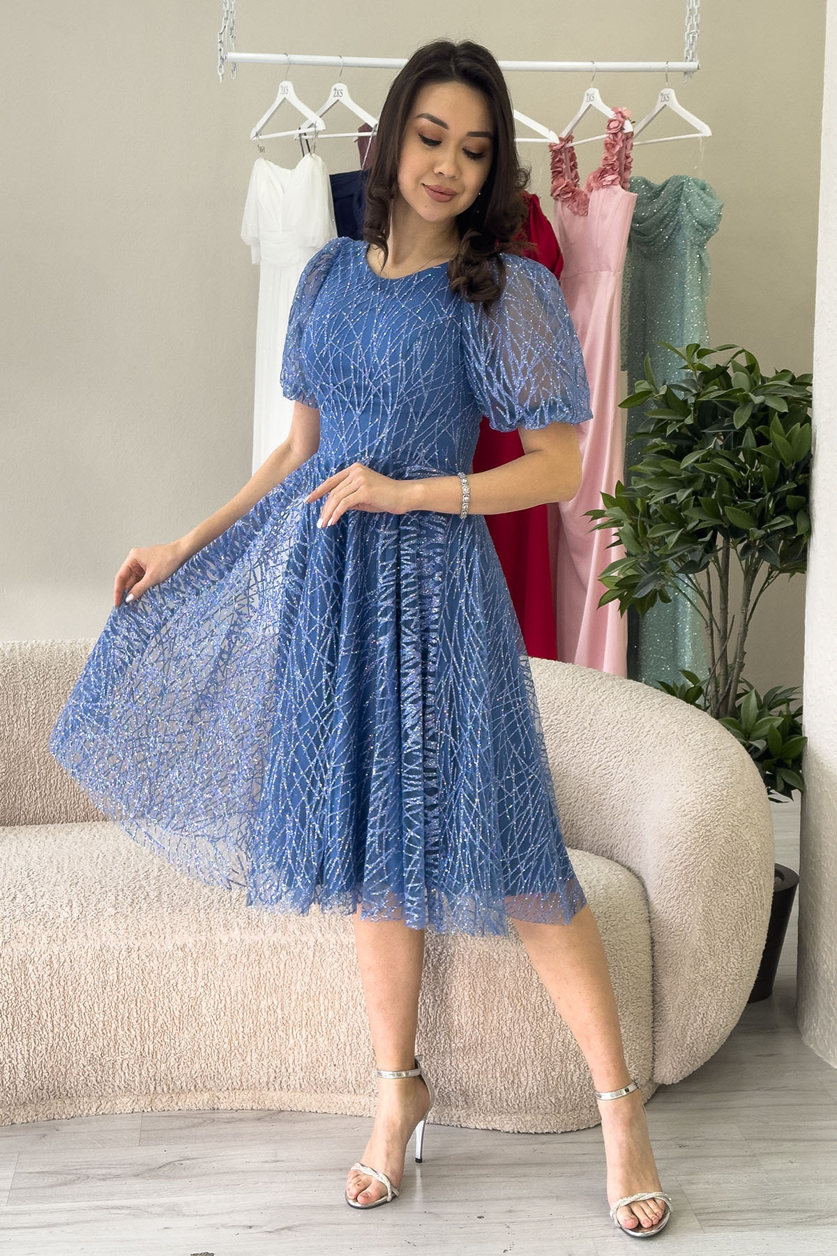 Glamorous Shine, Flawless Elegance: Be the Star of the Night with the Balloon Sleeve Silvery Flared Midi Evening Dress Meet a design that reflects your elegance every step of the way and shines in every light: Women's Balloon Sleeve Silvery Flared Midi Size Evening Dress.
