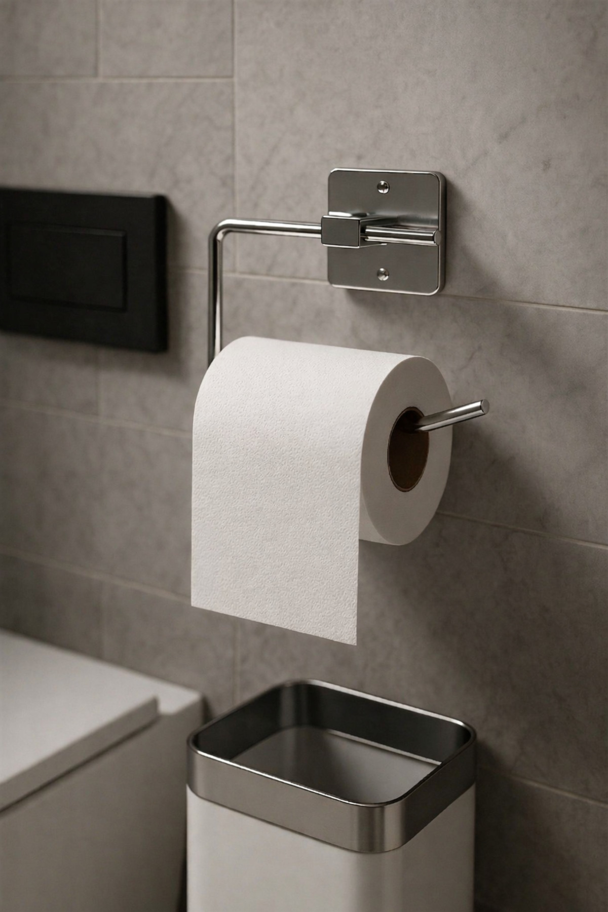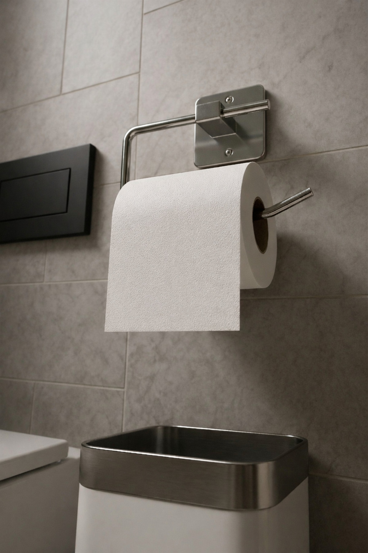 Adhesive Chrome Toilet Paper Holder / Toilet Paper Holder – Mounting without Holes, Ergonomic Design
