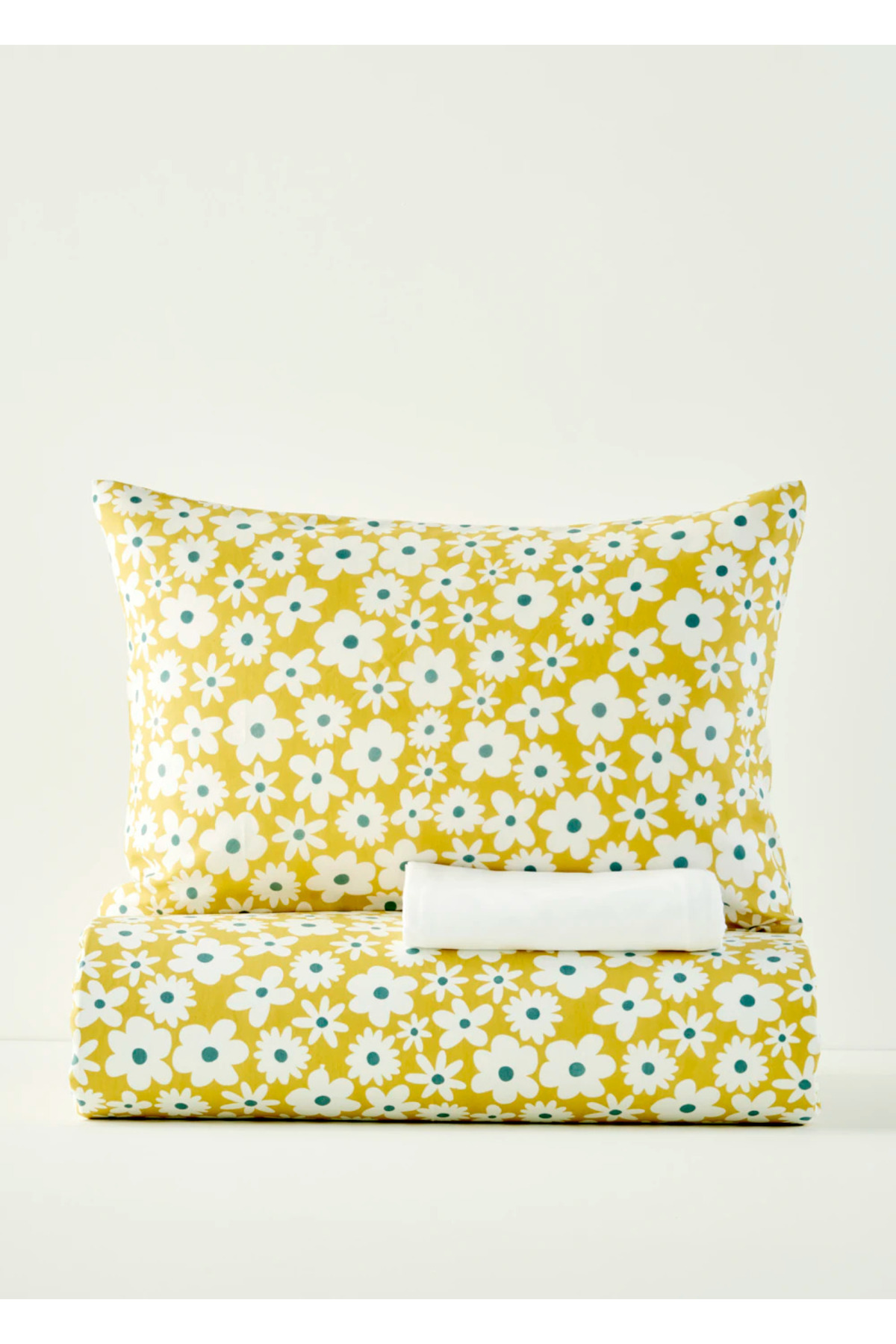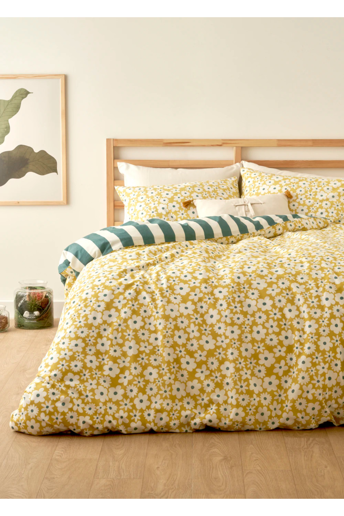 160x220 cm yellow printed 65% cotton 35% polyester Naomi Single Duvet Cover Set.