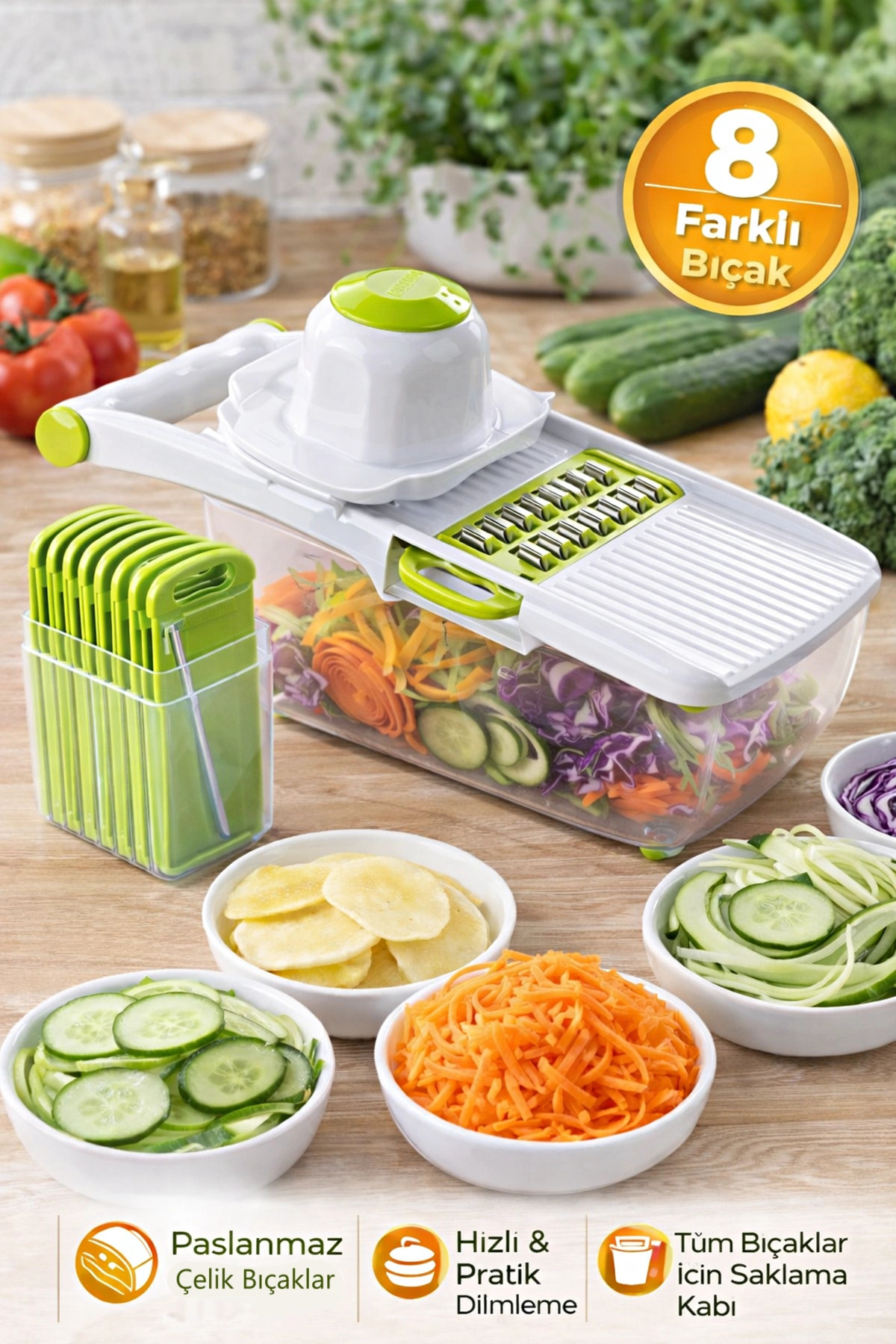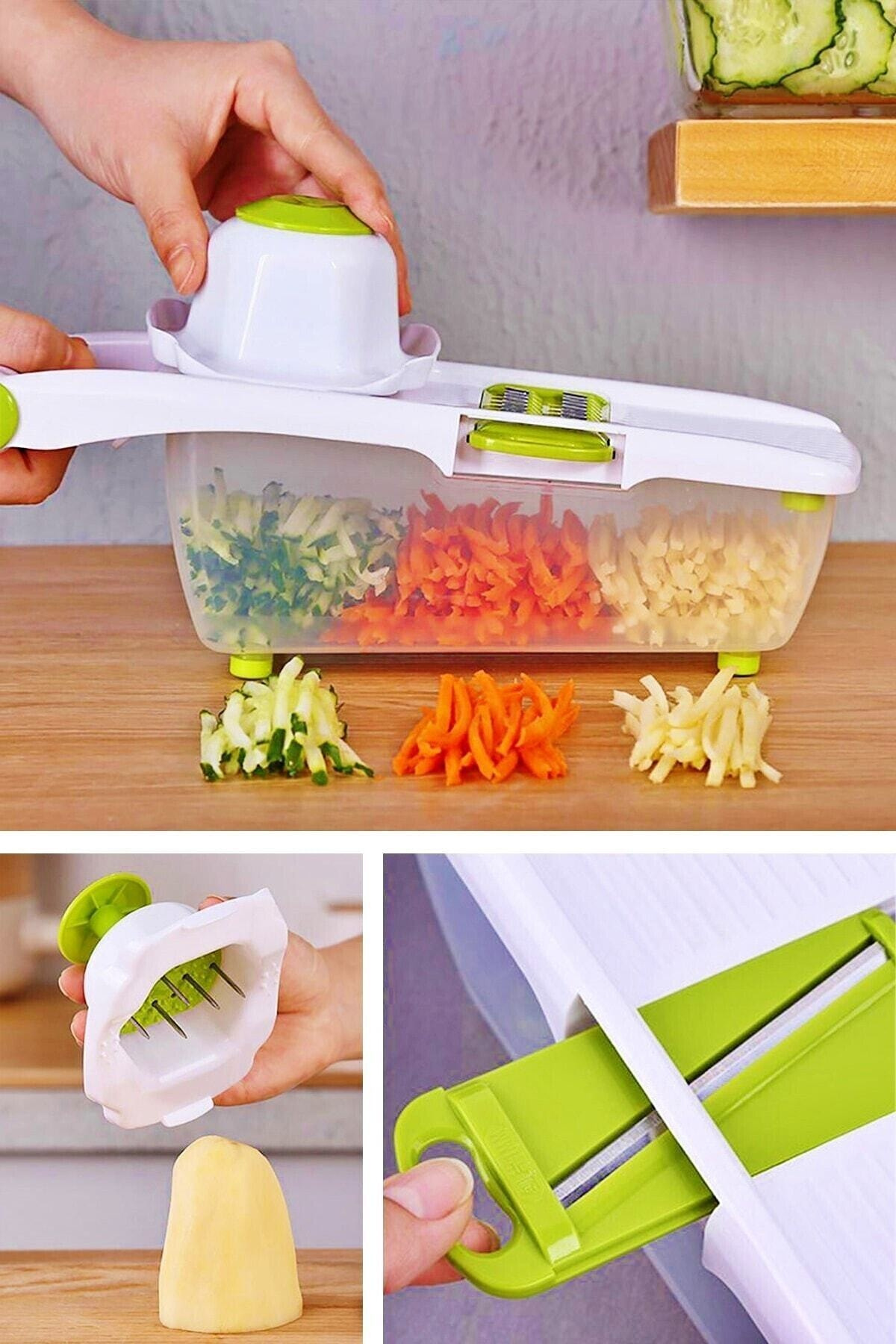 Tilbe Home Hopper Vegetable Potato Slicer Chopper Grater Cutter Mandolin White Green Luxury Grater Set | ByTR