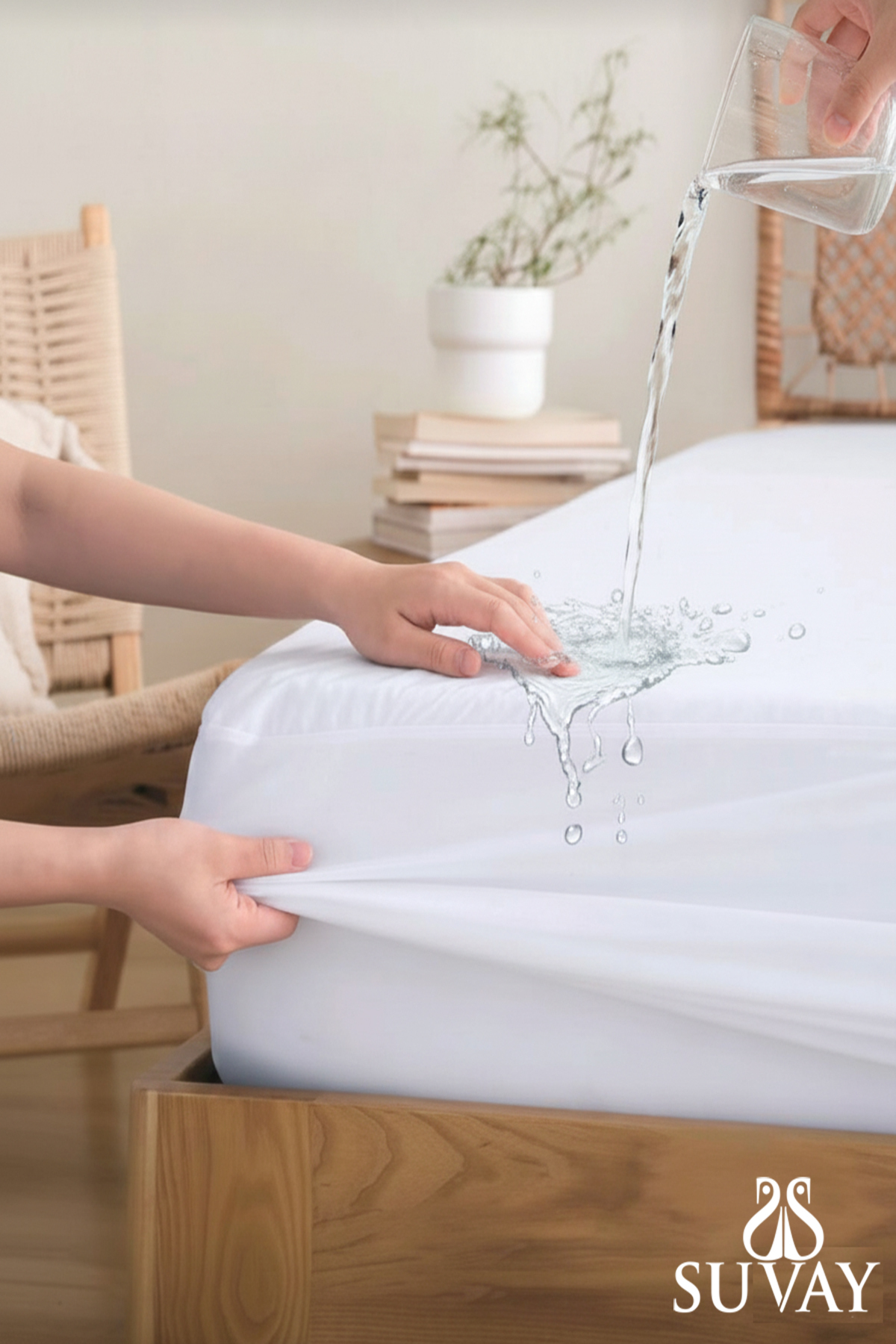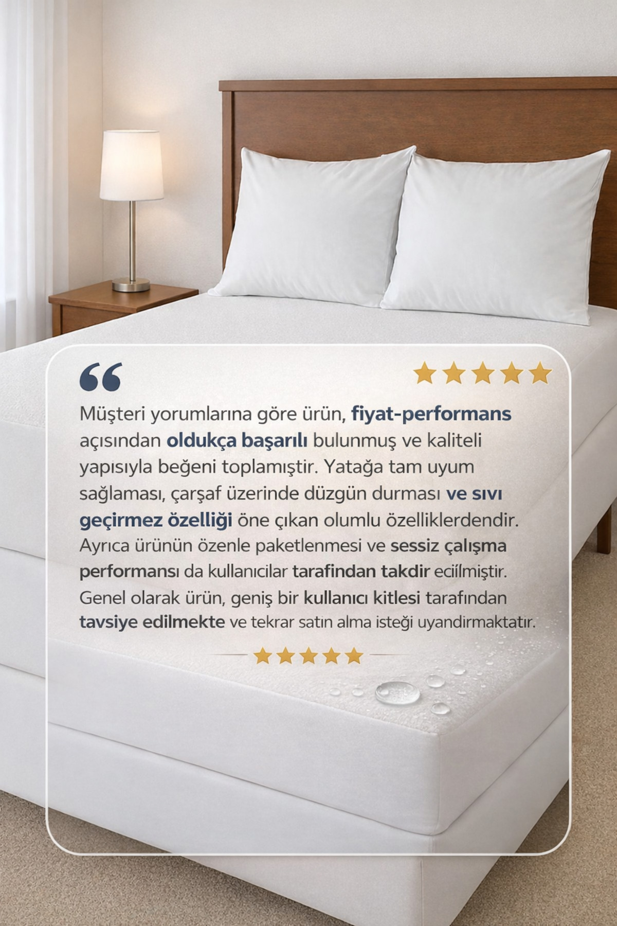 TOP SURFACE :Micro (Polyester) Fabric BOTTOM SURFACE: 100% Liquid-Proof 1st Quality Membrane Coating EDGE : Microfiber Fabric Our fully permeable mittens with elastic edges do not slip under the duvet cover, offering excellent protection without interrupting your comfort.