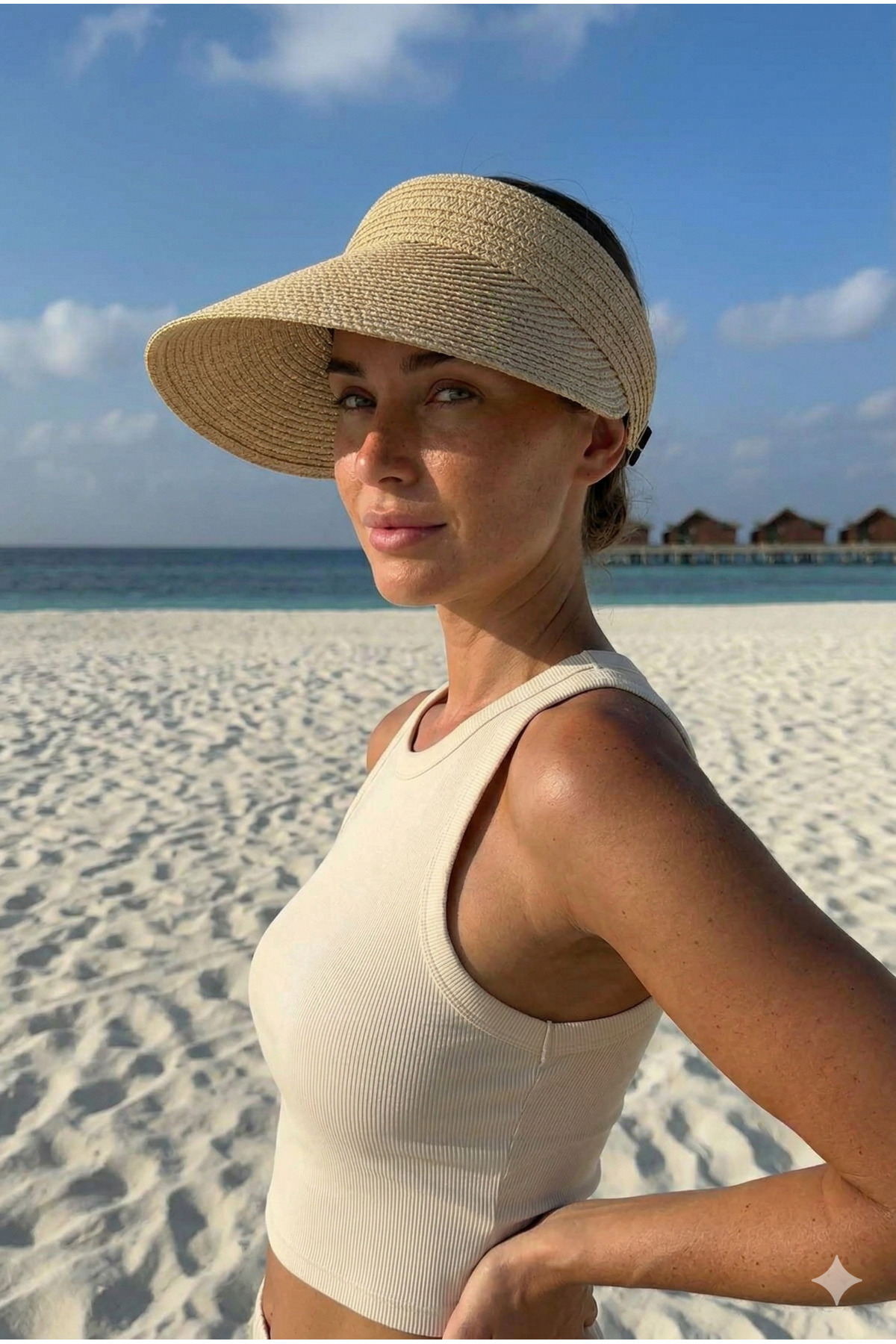 - Stylish Wicker Sun Hat Featured Features: - Sophisticated appearance with elegant pearl details - Compatible with every outfit with light brown tone - Light and comfortable clothing with thin knit design Benefits: - Effective protection against harmful UV rays of the sun - Elegance and practicality suitable for daily use - Breathable material that provides a spacious feeling in summer months Product Material: - Durable and high quality wicker material- Pearl decorations made of quality and permanent Features: - Maximum sun protection with wide edge design - Personalized fit with adjustable strap or buckle detail - Provides comfort in long-term use thanks to its light structure This wicker sun hat, which attracts attention with its style and functionality, will take its place in your wardrobe as an indispensable accessory of summer months.