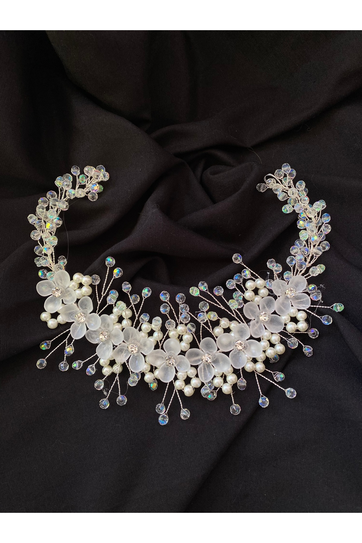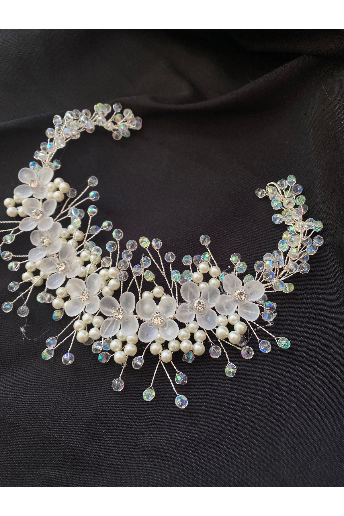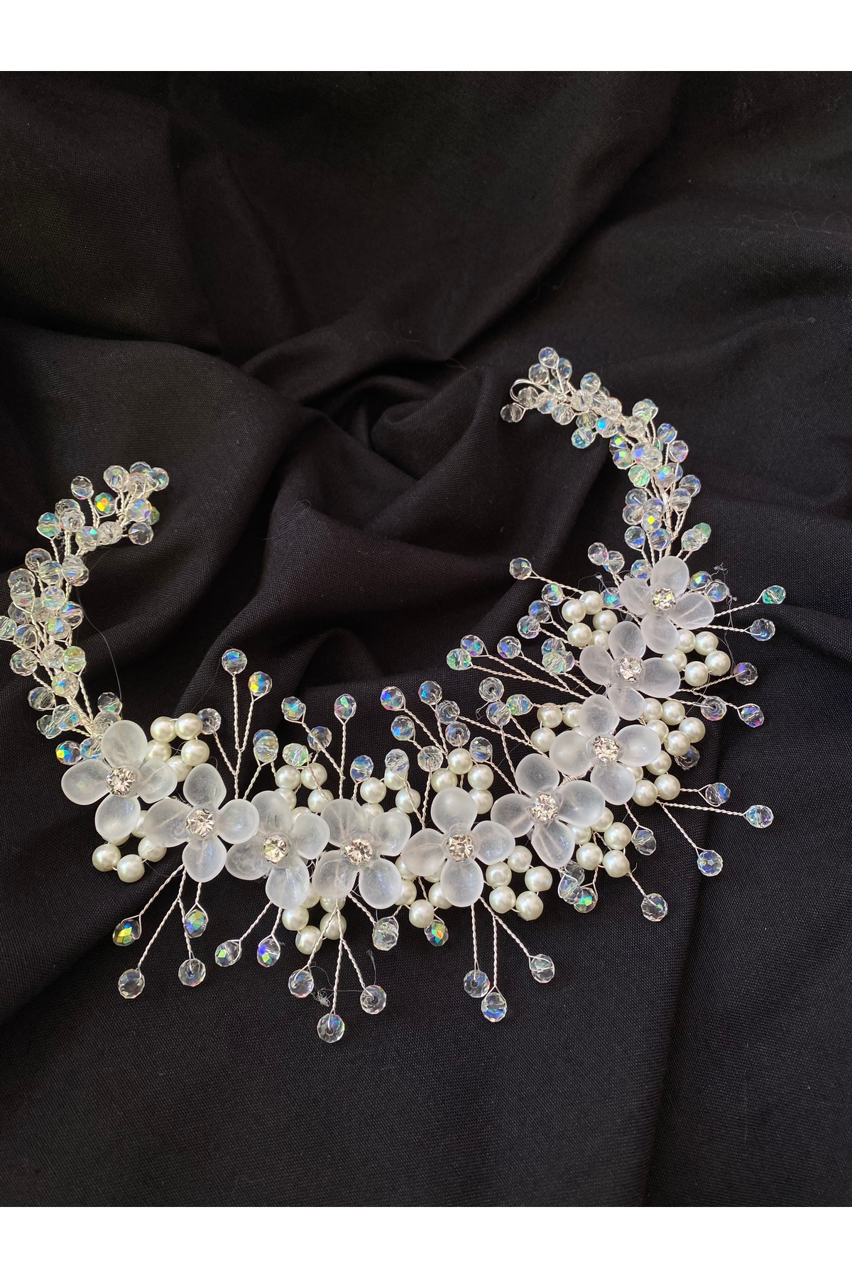 ERYA aksesuar Crystal ,Pearl and Flower Detailed Promise Engagement Henna Special Day Bridal Crown | ByTR
