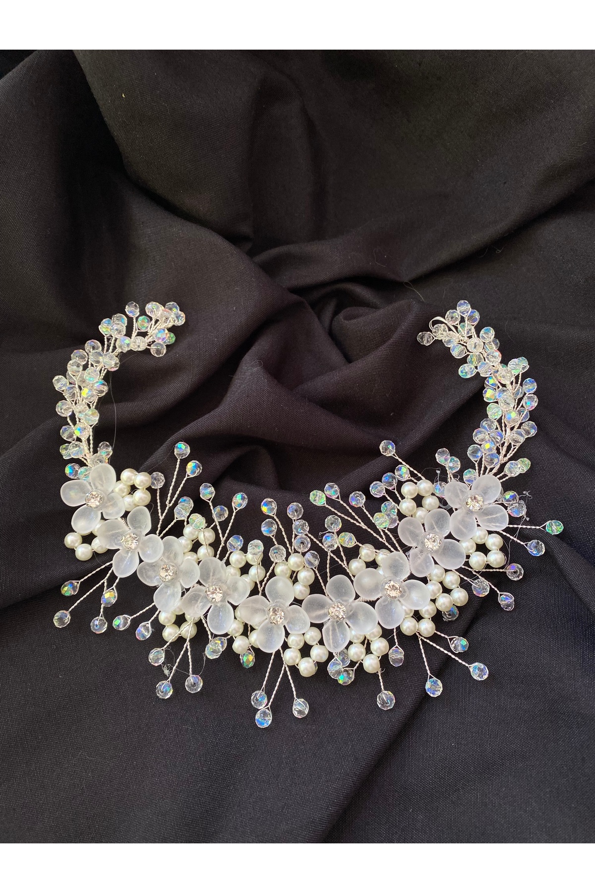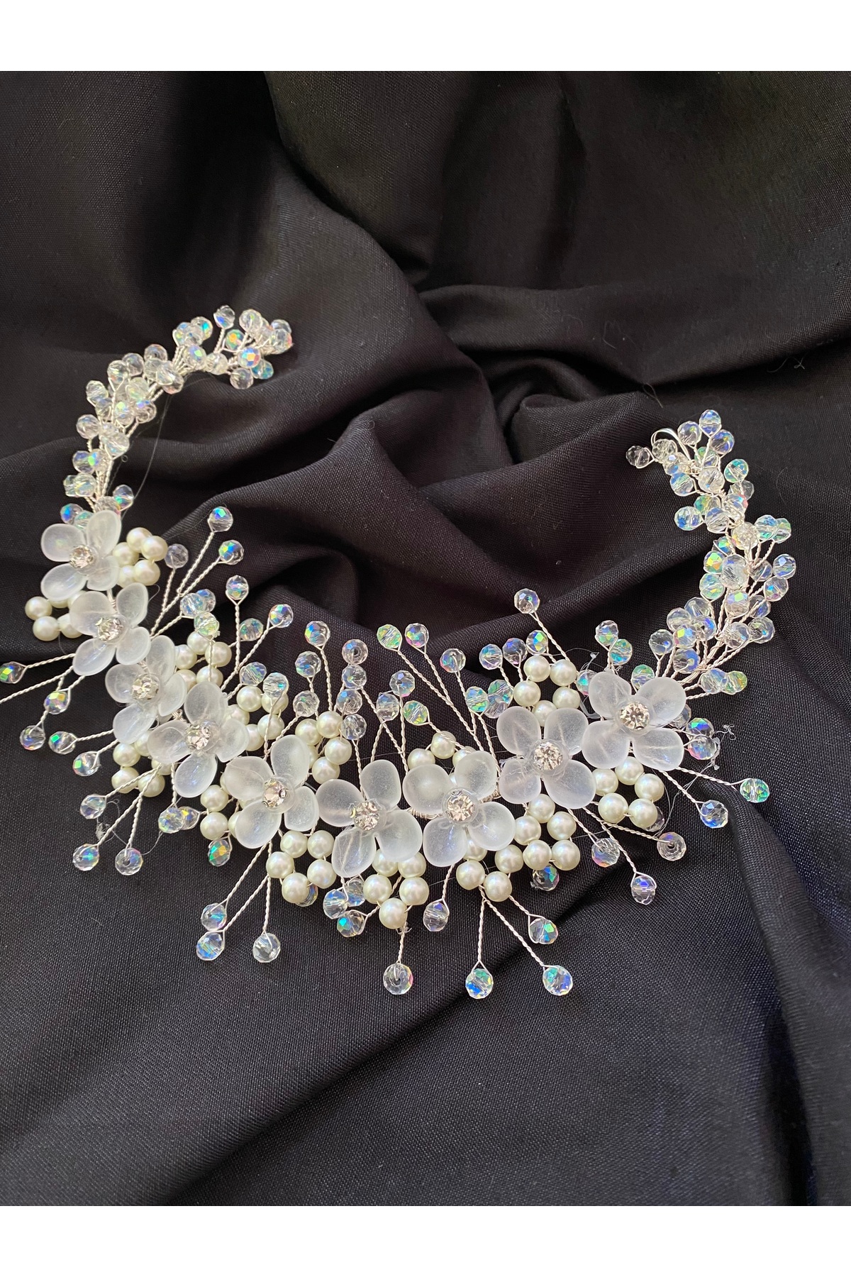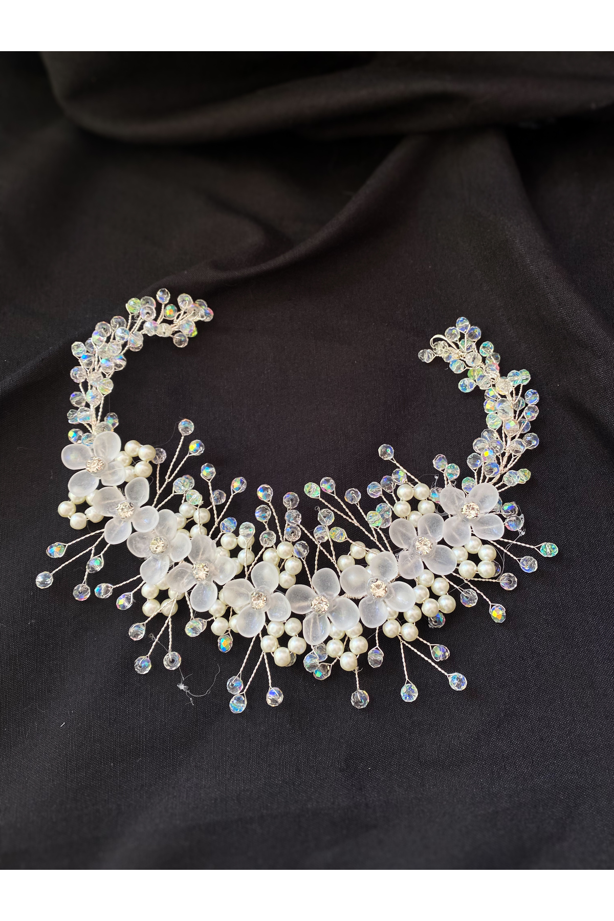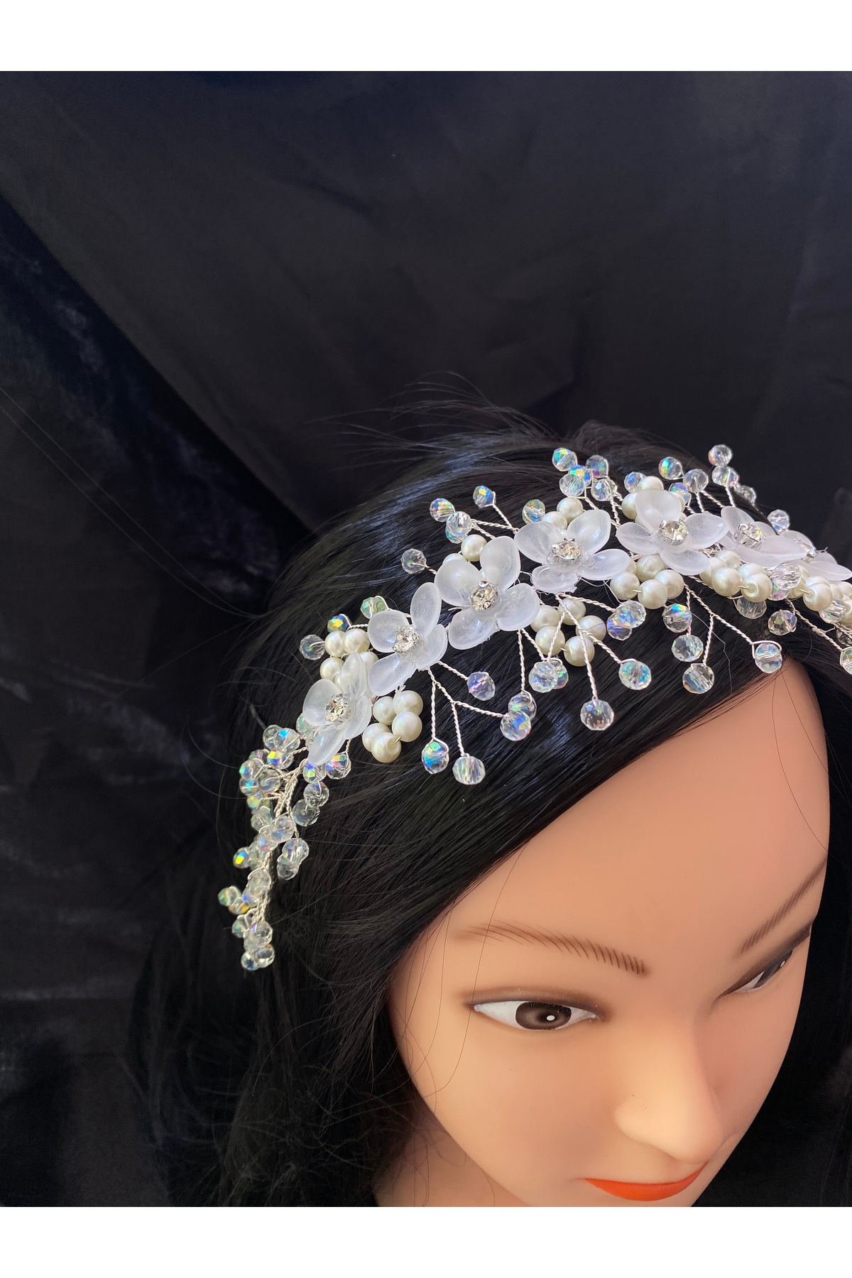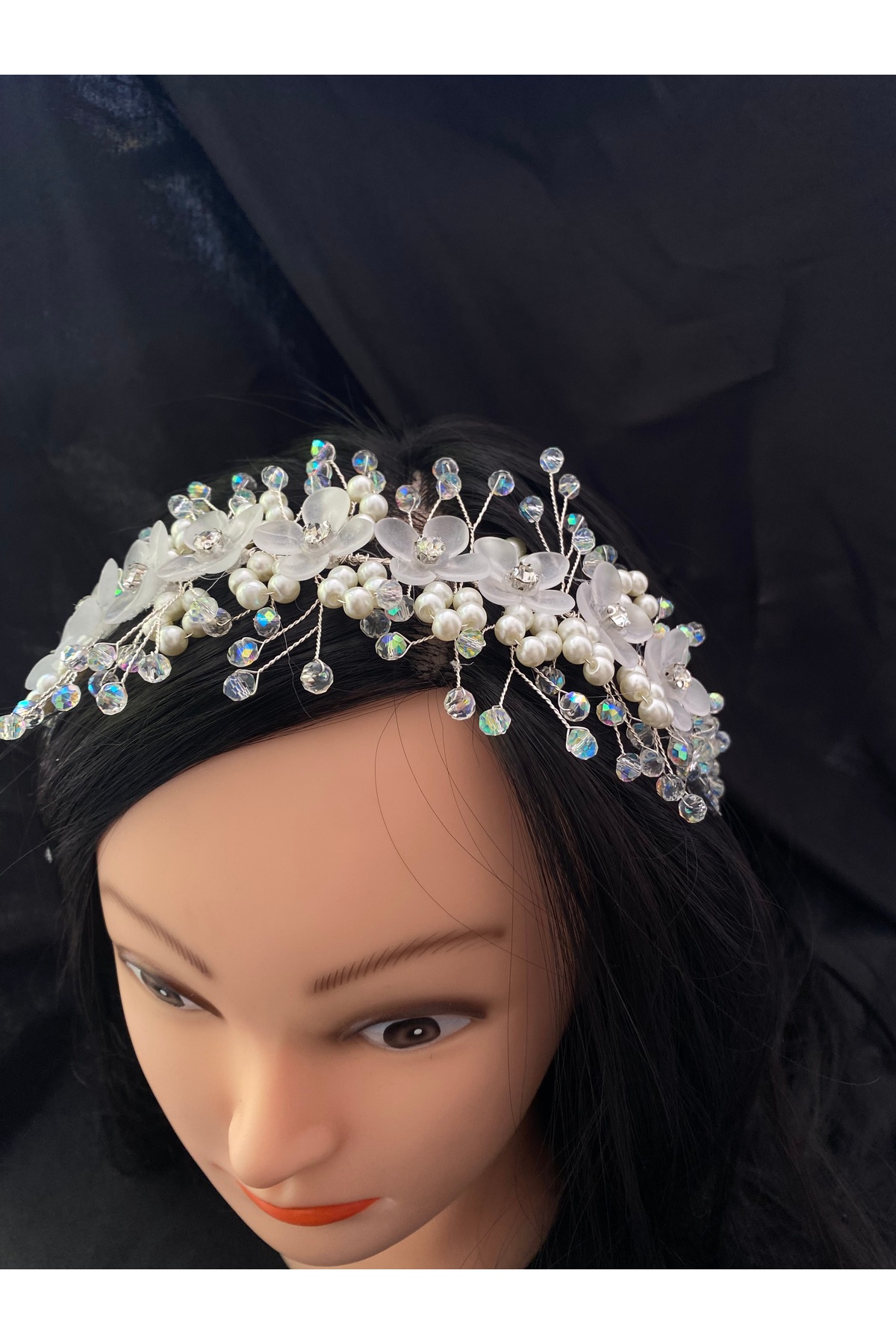 Crystal ,Pearl and Flower Detailed Promise Engagement Henna Special Day Bridal Crown